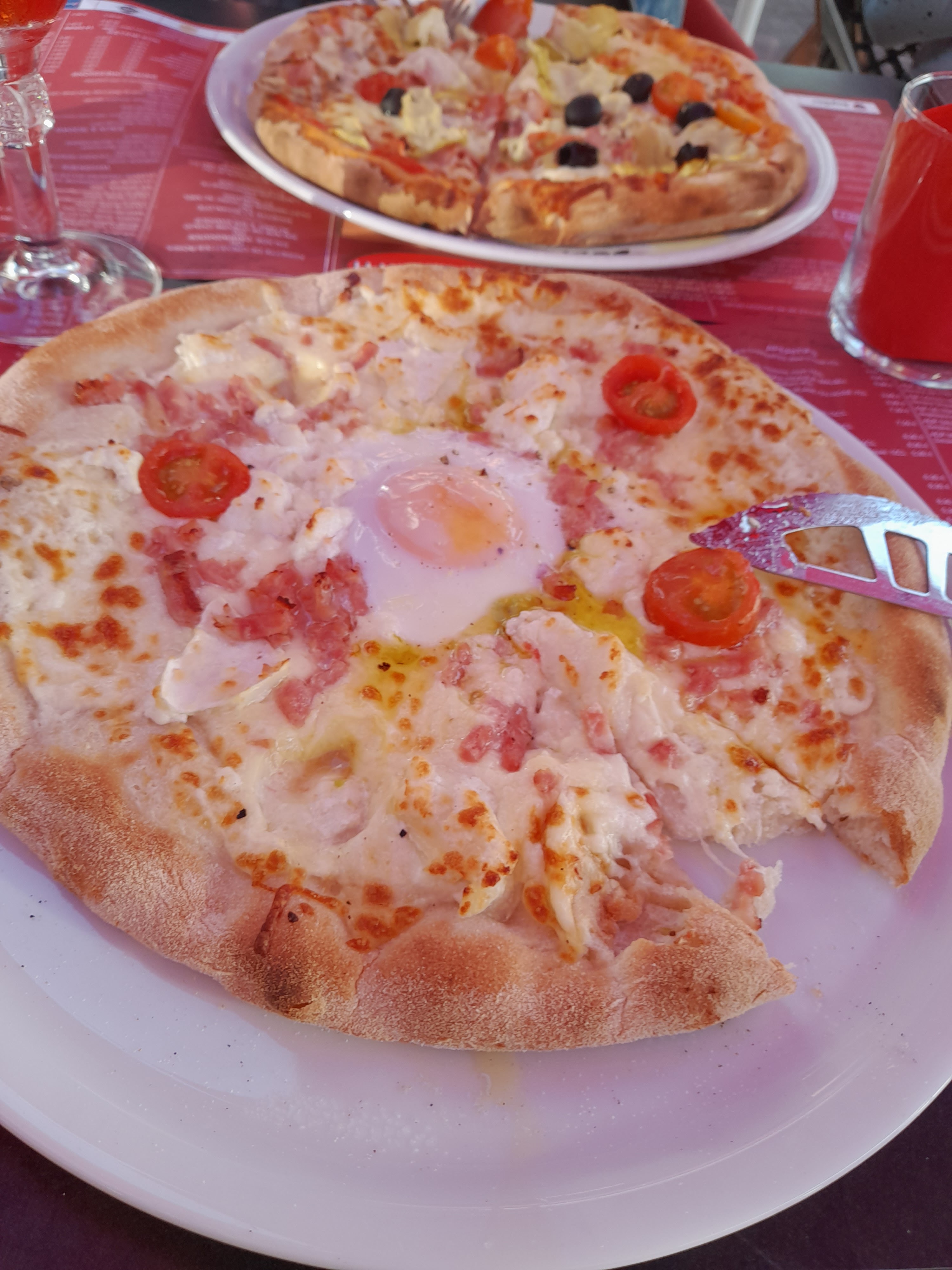 La localisation est excellente, vous profiterez d’une belle vue depuis la terrasse. Cependant, j’ai trouvé dommage pour un restaurant « italien » que les pizzas ne soient pas authentiques… Elles ont un aspect et un goût vachement industriels… On remarque facilement qu’il ne s’agit pas de vraie mozzarella ! Fromage noirci par la cuisson et à la couleur jaunâtre. On est très loin de la pizza napolitaine et c’est fort dommage ! Je pense qu’il serait vraiment nécessaire de revoir sa copie pour les pizzas. Point positif, le personnel était serviable et professionnel.