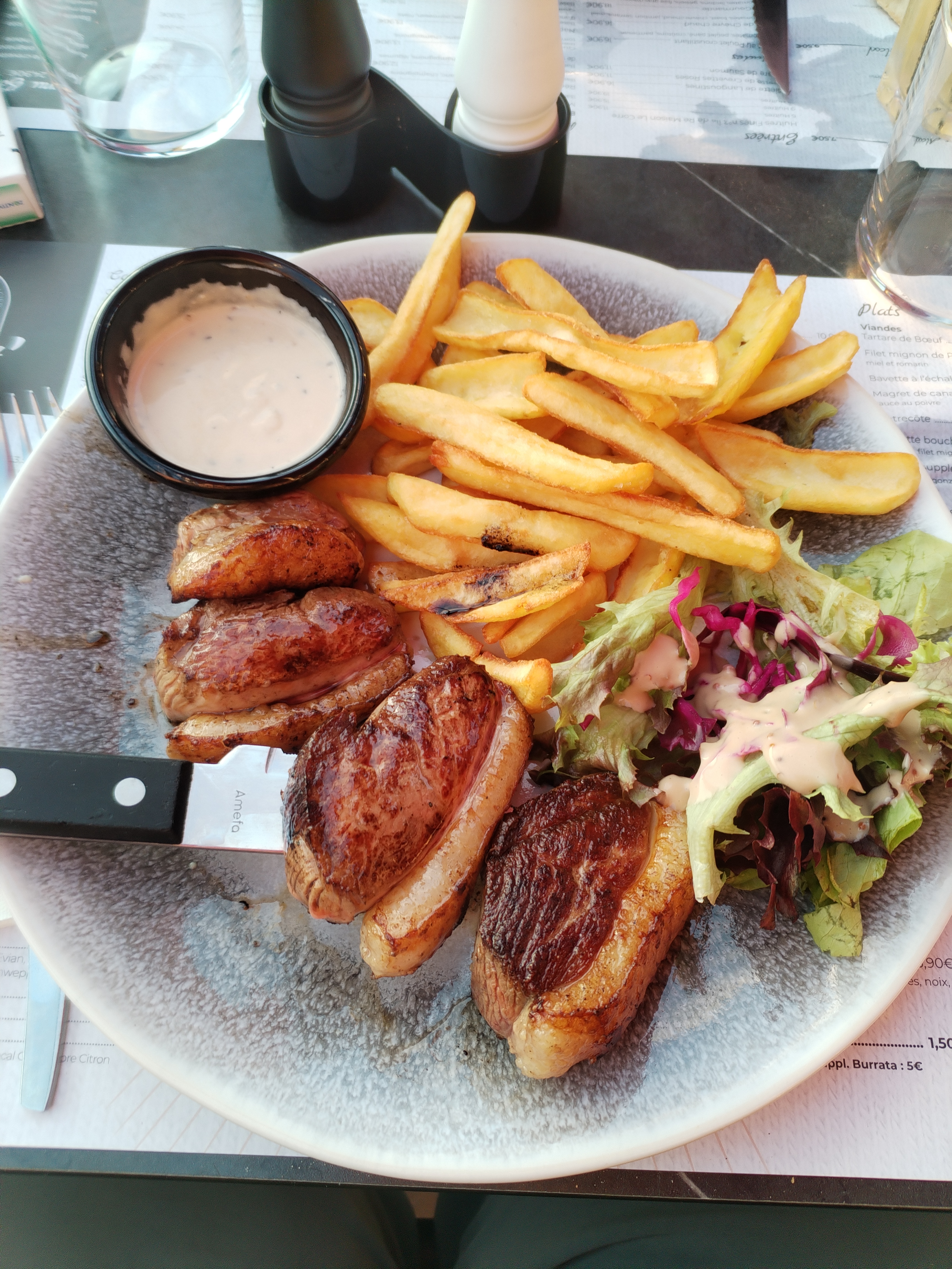 Sincèrement je suis vraiment déçu, depuis qu’il y a les nouveaux patron la cuisine c’est vraiment dégradée. Les assiettes sont radins et sa se voit que c’est du surgelé, services long et devoir payer une trentaine d’euros pour sa, un fast food serait meilleur.