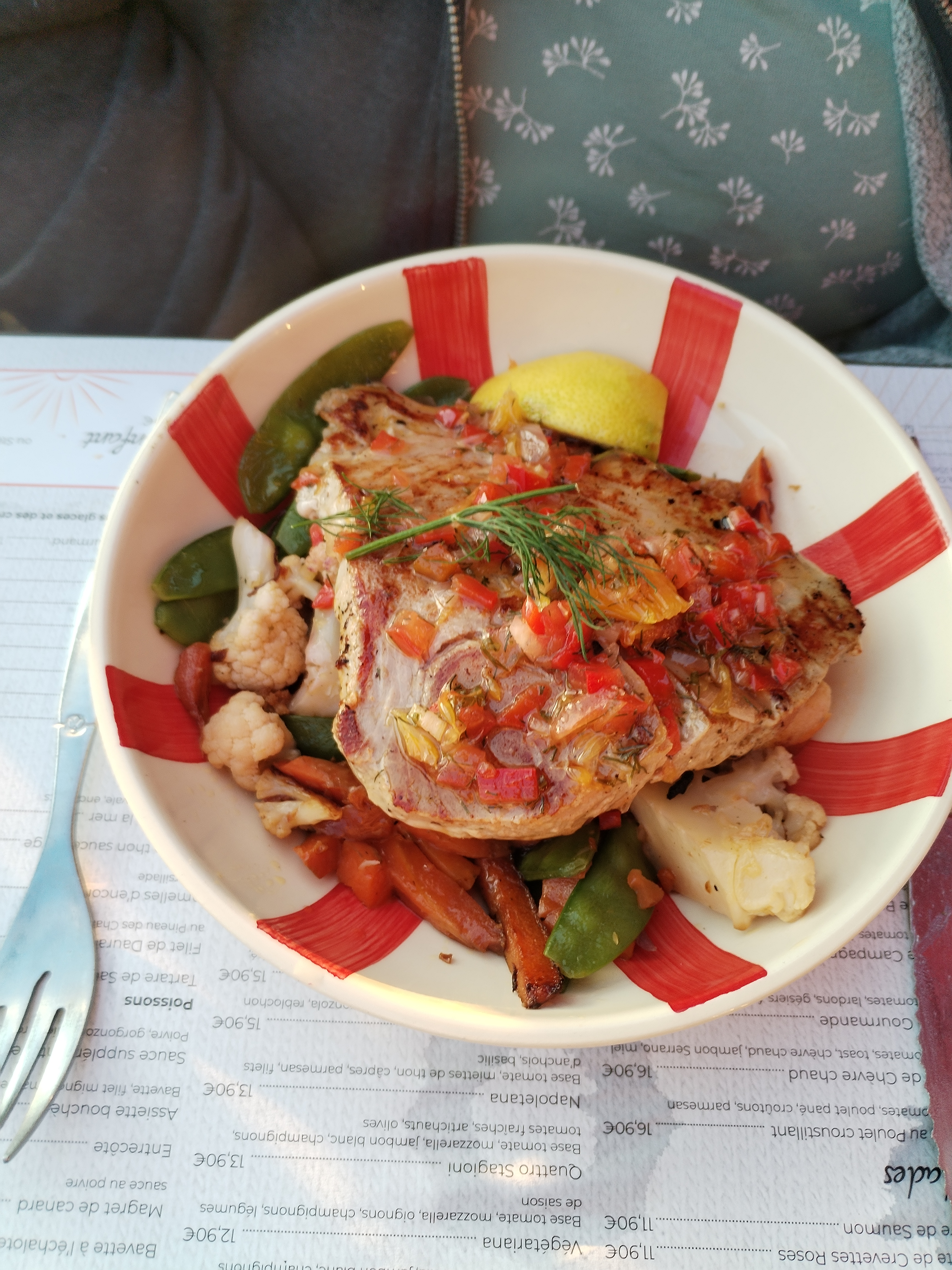 Très bon repas dans ce restaurant face à la mer. On s'est régalé. On a aussi pu profiter d'un chouette coucher de soleil