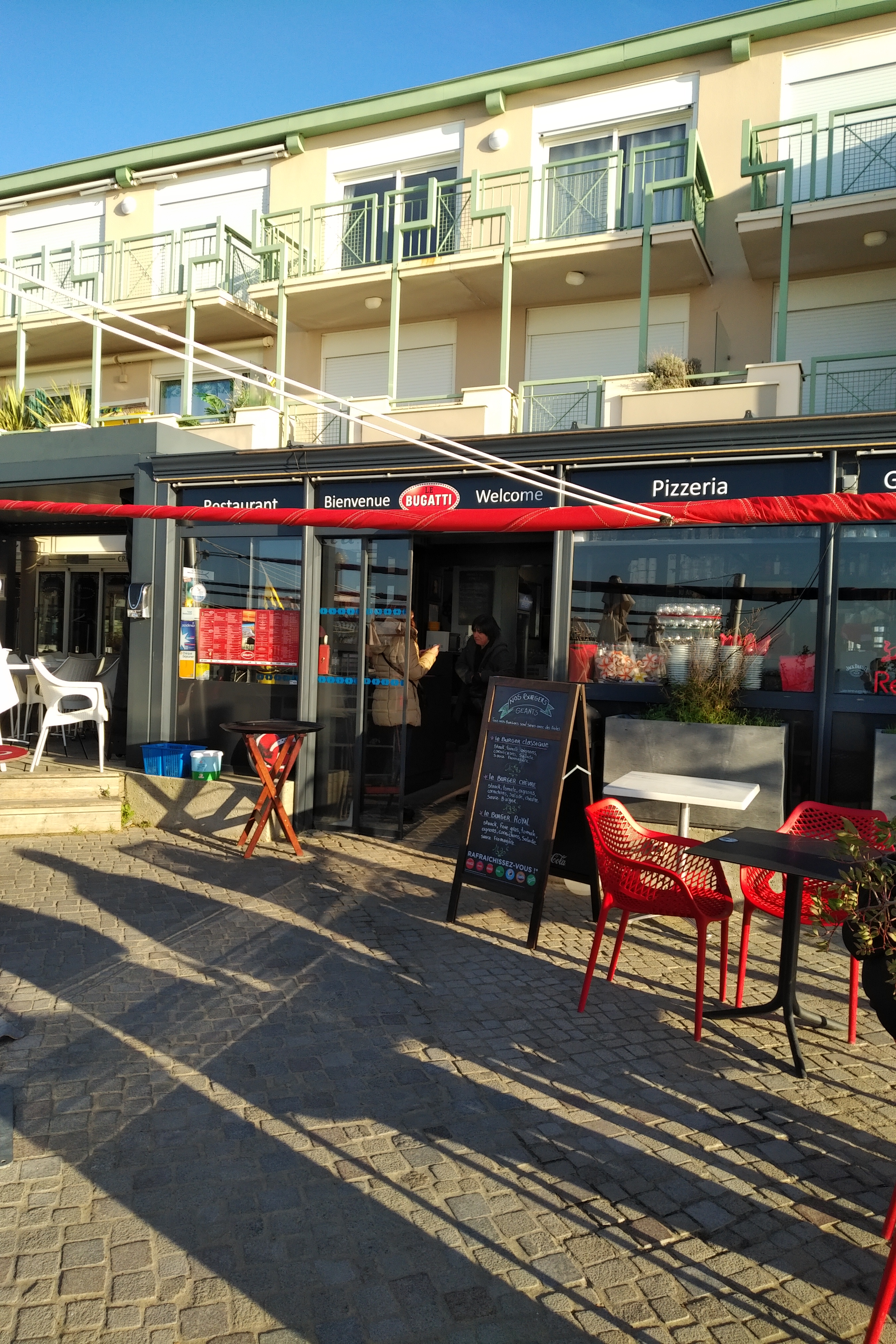 Tres bon resto, le service est rapide et sympa, très bon rapport qualité prix. J ai pris une pizza je me suis régalée. Pour un restaurant en front de mer, les prix sont vraiment raisonnable. Nous avons aussi goûté les moules frites, la dorade royale et la salade du Bugatti. Tout était très bien.
