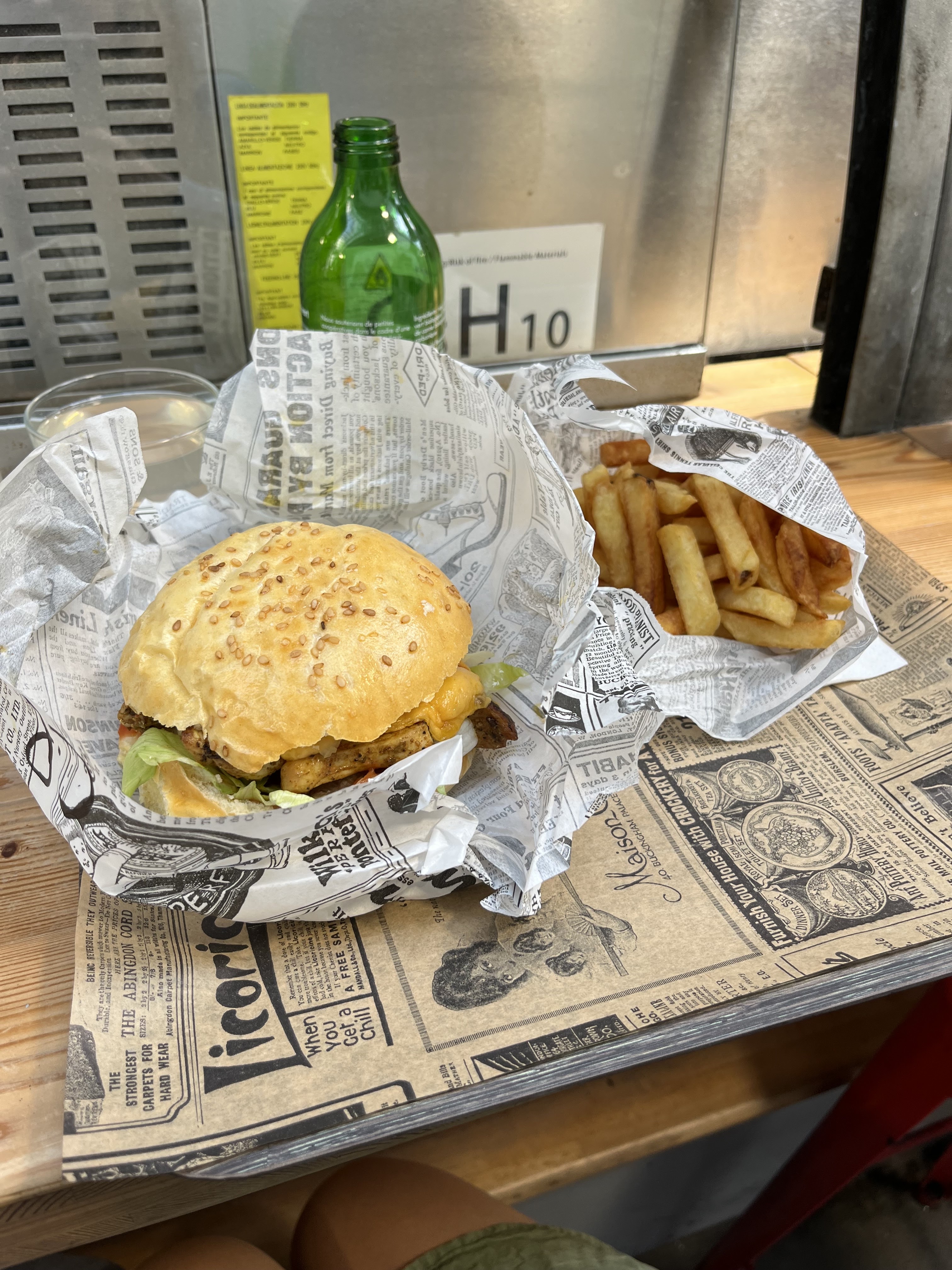 On a goûté le veggi burger à la betterave avec frites : délicieux ! 🍔🍟 Et le personnel est très sympa 👍