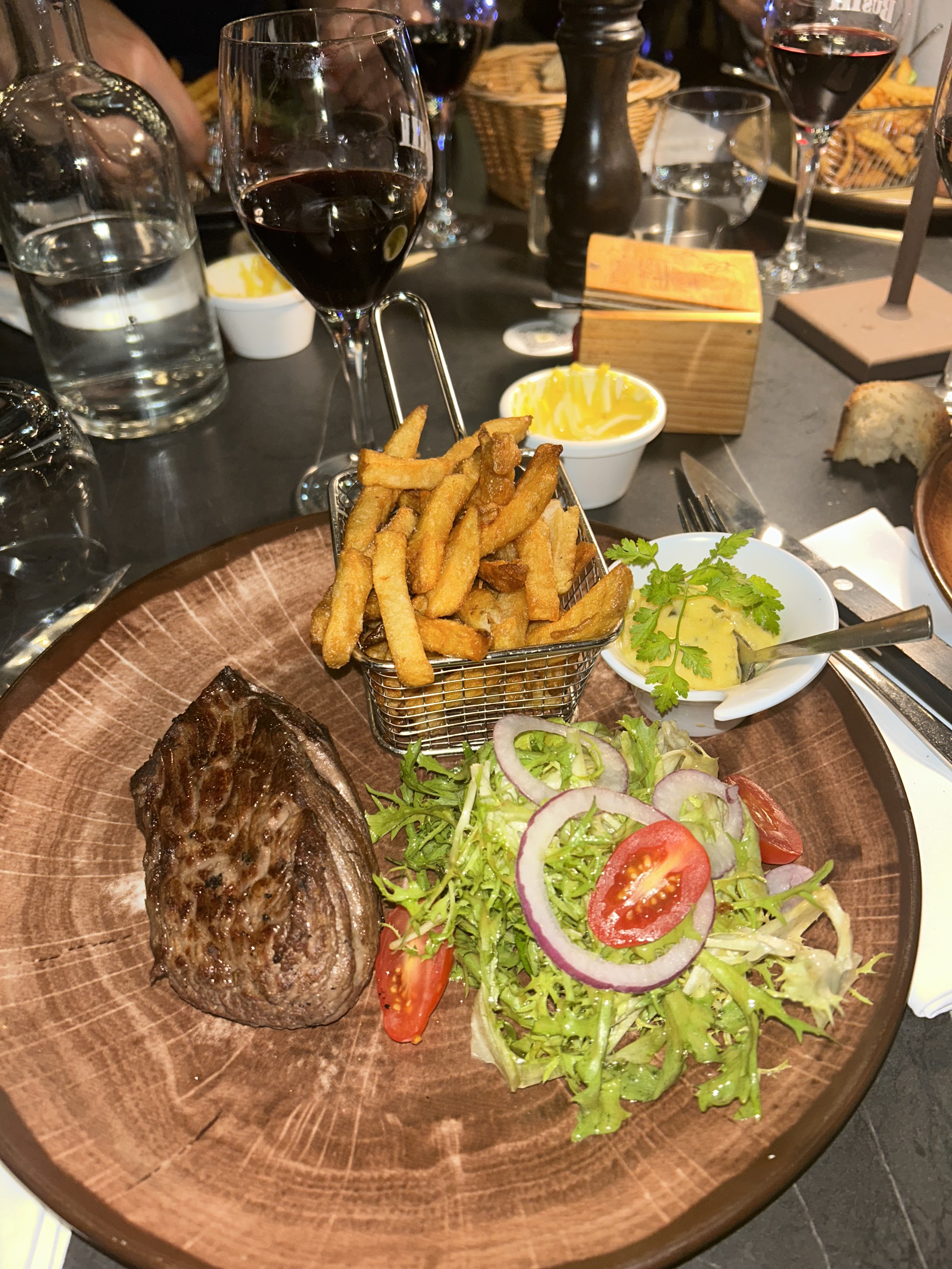 Je suis désolé, je n’ai plus les moyens de venir manger chez VOUS ! Ça fait quelques fois que je viens manger chez vous, souvent à midi et c’est la 3ème fois que je viens le soir. Hier au soir, je voulais faire plaisir à mes deux ados, mais je m’en souviendrais…. 163€ pour 3 !!!! 29€ un morceau de bœuf de 200gr avec une puree….je resterai chez moi car pour la même somme, j’ai 1kg de black Angus et je vous fais 1kg de purée maison! Votre restaurant est plein et c’est tant mieux,je suis heureux pour vous.en revanche, je suis désolé de vous dire que je n’ai plus les moyens de revenir manger chez vous même si c’est très bon.
