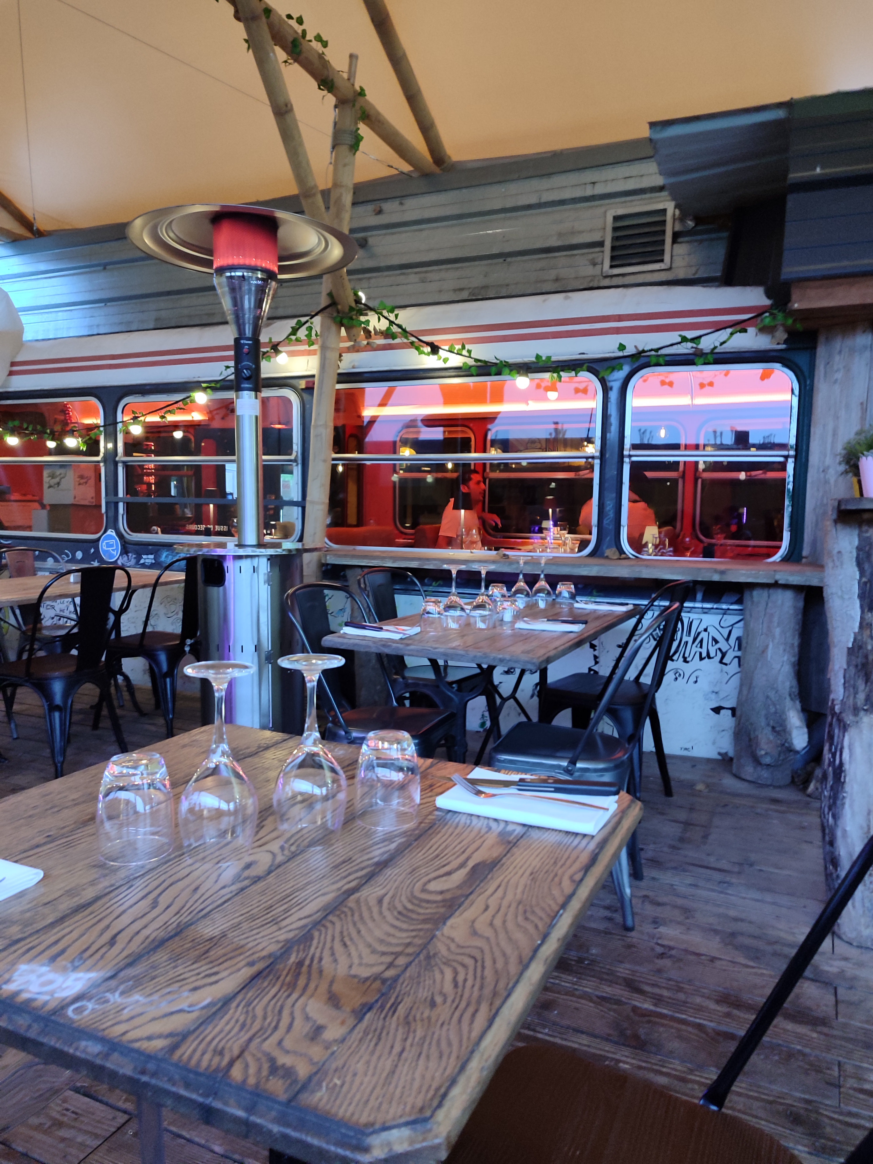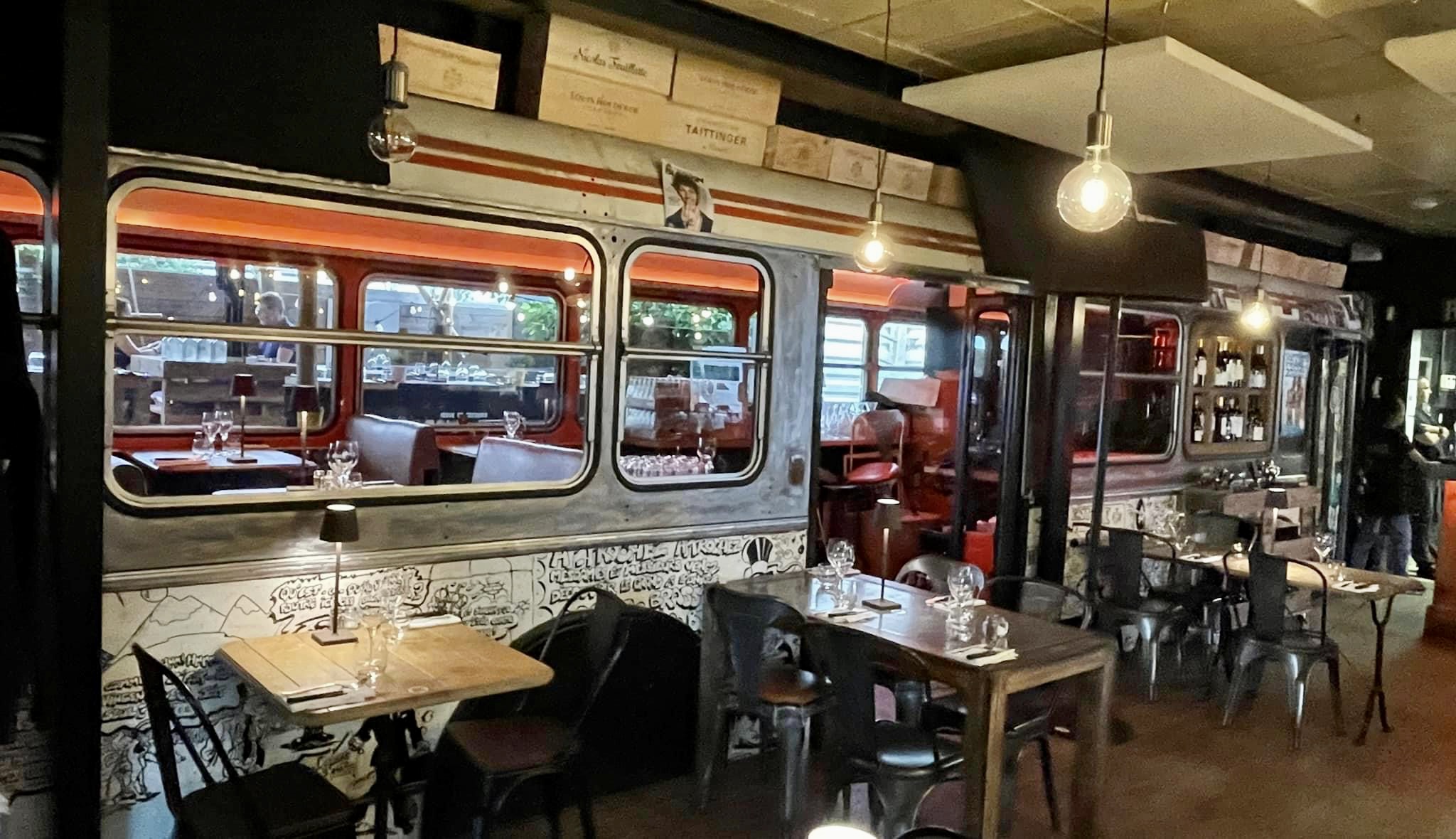 Re Cuisine 👍 et Re service parfait 👍 . Un lieu dépaysant et agréable. Encore un 5/5 pour cet établissement attentionné et très efficace. Joli bar et Bus réel d'époque dans son Jus, intégré aux décors dans lequel on peut se restaurer à 2; de quoi voyager l'instant d'un repas bien orchestré avec cette organisation remarquable ! Serveurs(ses) très Pro, très efficaces, très souriant(e)s. Un tout petit bémol sur certains desserts pas terribles, soupçonnés pas maison 😕... Sinon Adresse à vivement fréquenter et à surtout faire connaître ! Merci beaucoup pour tout... pourvu que ça dure 😉