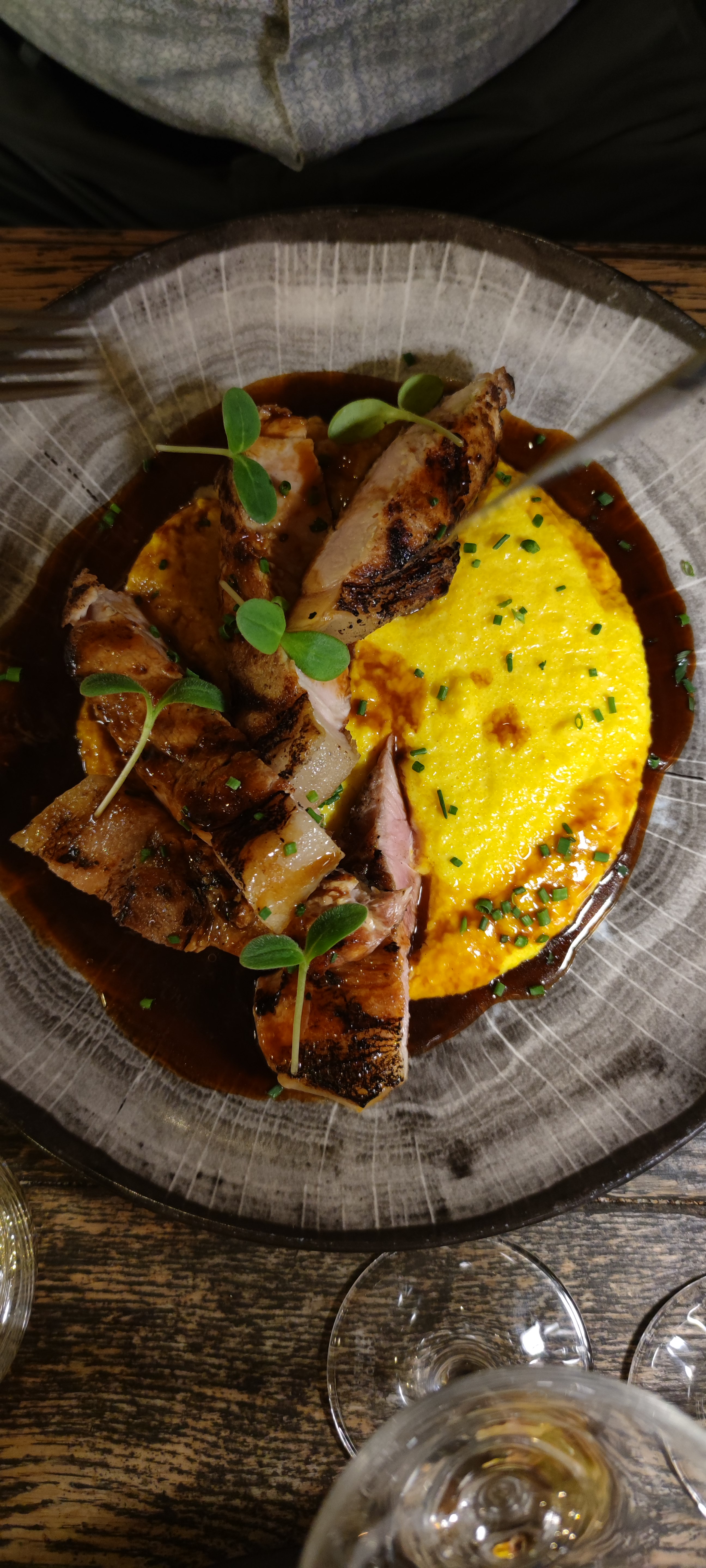 Pas mal comme restaurant, mais rien de plus que ça. Vraiment déçu par la cuisine car l'entrecôte de cochon n'était pas bien cuit, et comme on le sait bien la viande de cochon ne doit pas être saignante! Mais le pire c'était le confort des chaises, aucun confort super durs et ne donne pas envie de rester assis plus de 30 minutes ! Rapport qualité-prix.... A réfléchir ! On ne reviendra plus.