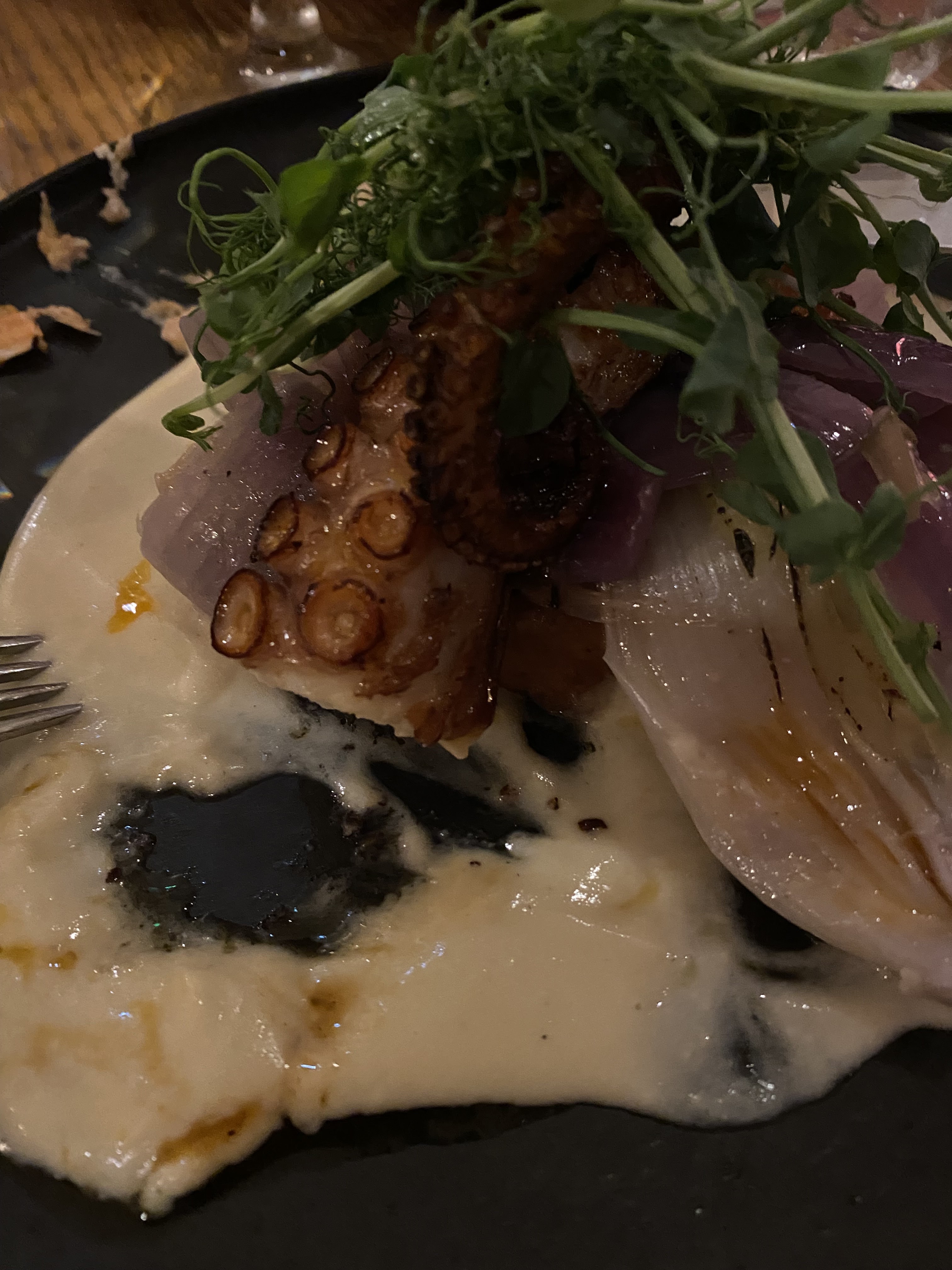 Un cadre sympa, serveur agréable, un repas qui fût bon dans son ensemble. J ai pris le duo de poulpe avec chorizo et quand j' ai découvert l assiette j' ai été déçu de voir si peu de poulpe, une autre tentacule aurait été la bienvenue au vu du prix du plat a 25€ qui au final me paraît bien élevé. Ma compagne avec son tartare frites s est régalée.