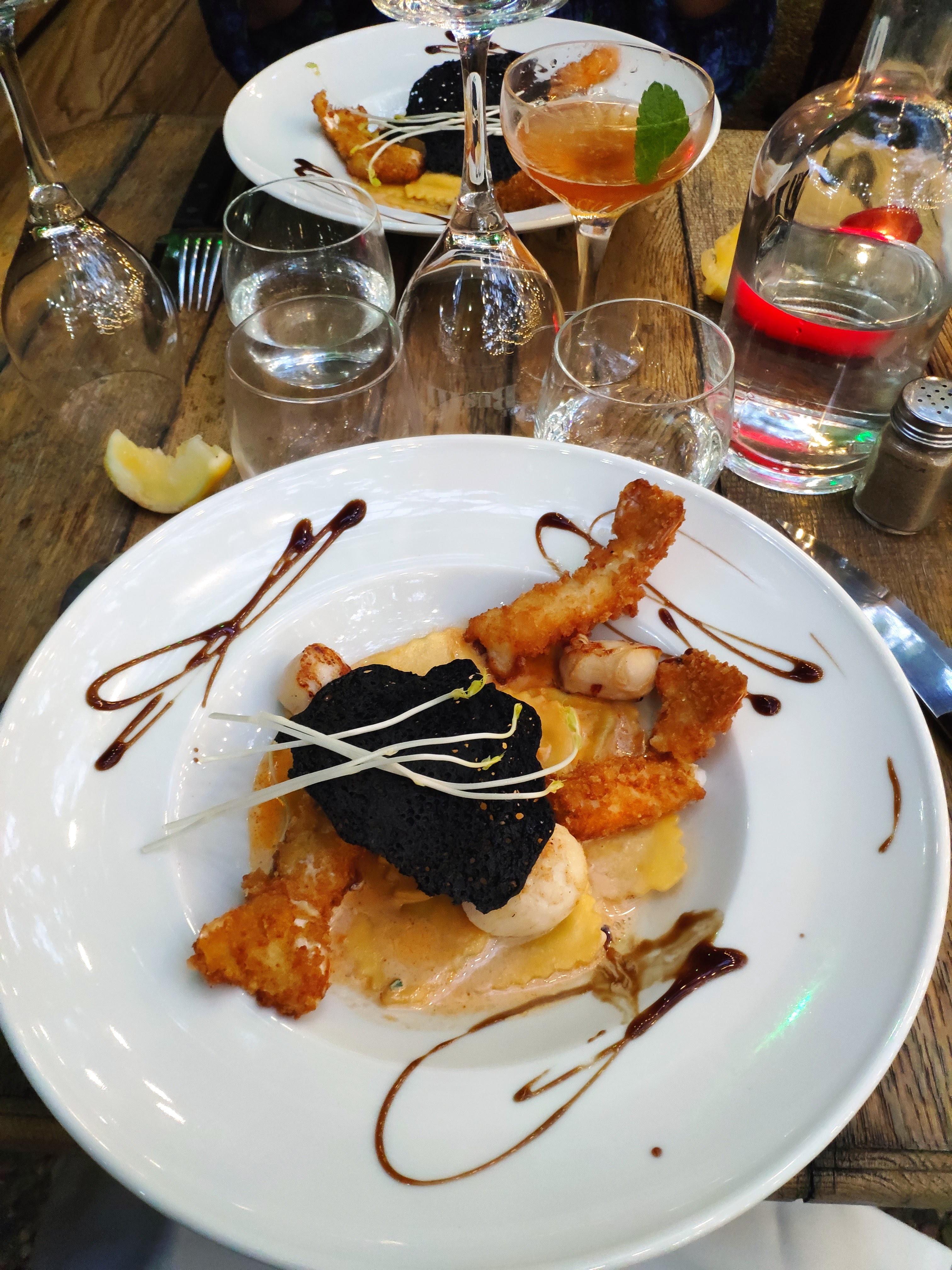 Très décue de ce lieu comme indiqué dans mon autre avis. Cadre sympa, cocktail très bon mais le reste n'est pas à la hauteur. Service approximatif, un verre de vin qui arrive en début de plat principal alors que commandé avant l'entrée, plat de volaille immangeable, dessert bof. Je ne recommande pas du tout...