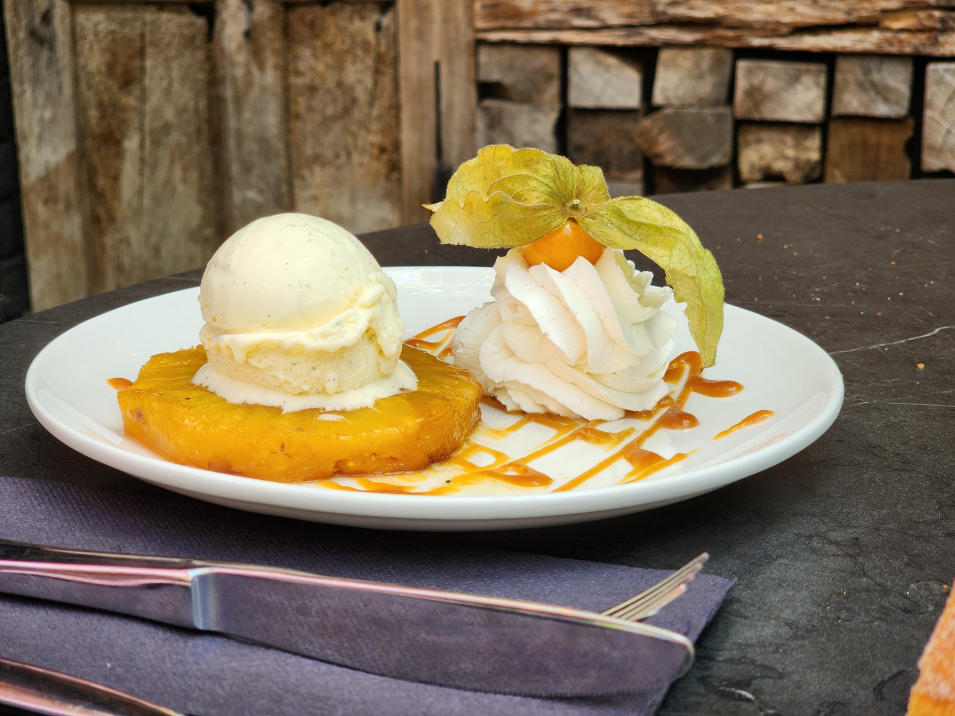 Cadre agréable même en hiver. Repas de qualité. Service assez rapide