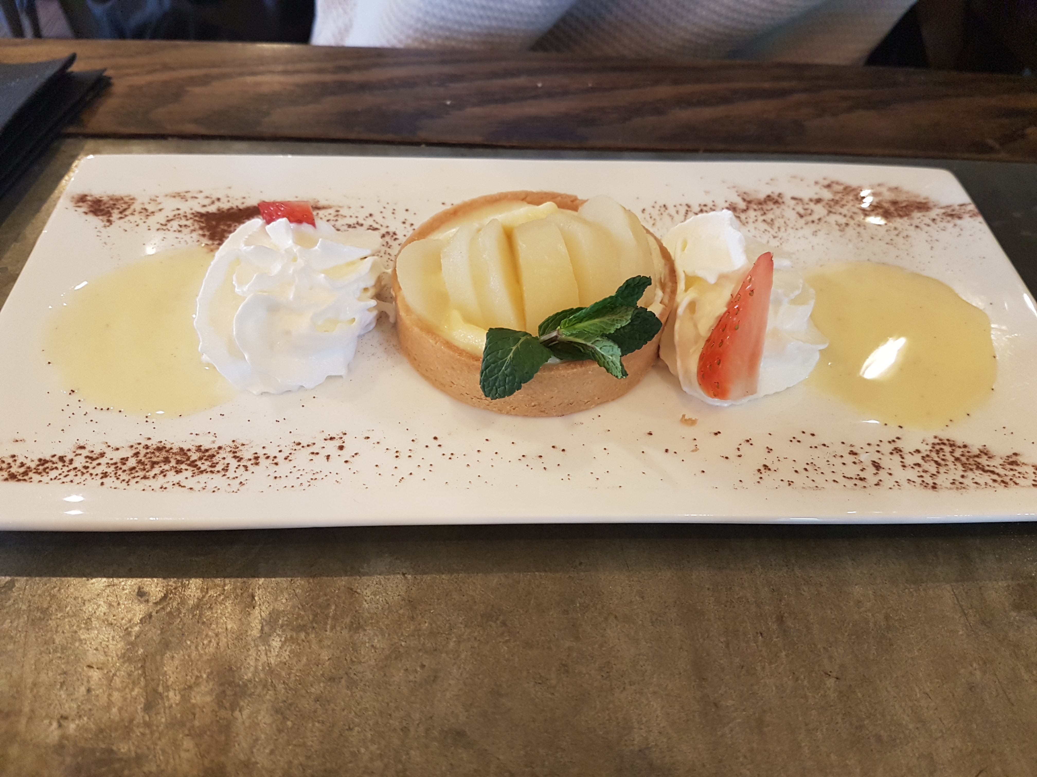 Les photos parlent d'elles mêmes... Un accueil agréable, un service au top, que 2 en salle mais on ne se laisse pas désirer, ils sont attentif à tout. Prix un peu élevé par rapport à la moyenne mais plats de qualité et dessert excellents. Terasse très agréable par les beaux jours. Merci beaucoup pour ce repas très apprécié.