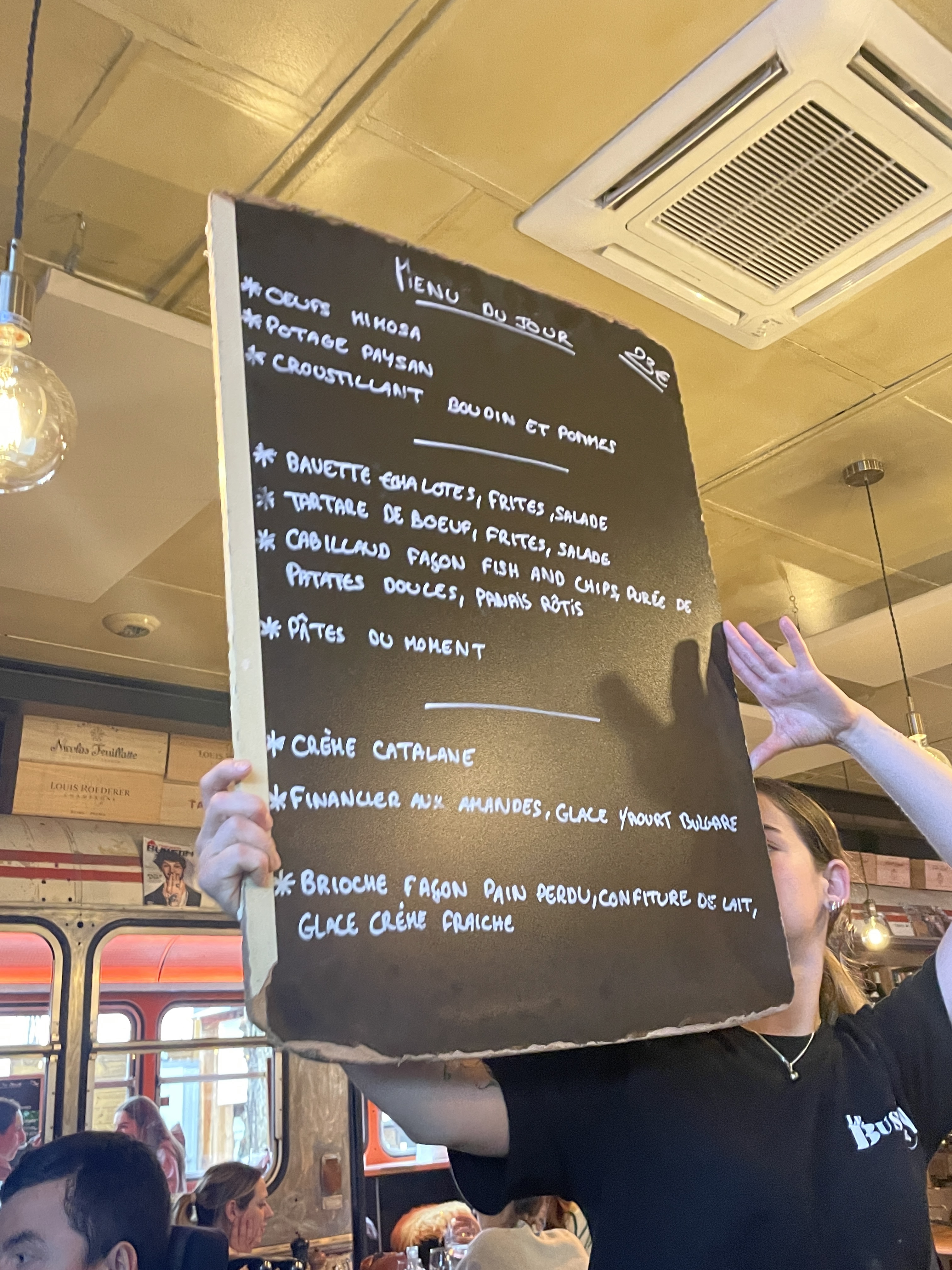 Cadre trop sympa mais bruyant, serveuse dynamique et souriante. Plats très bien assaisonnés. Viande très bonne. Mention spéciale au pain perdu excellent! Petit bémol au moment de l'addition, il faudrait peut être ajouter la possibilité de prendre un menu/formule.