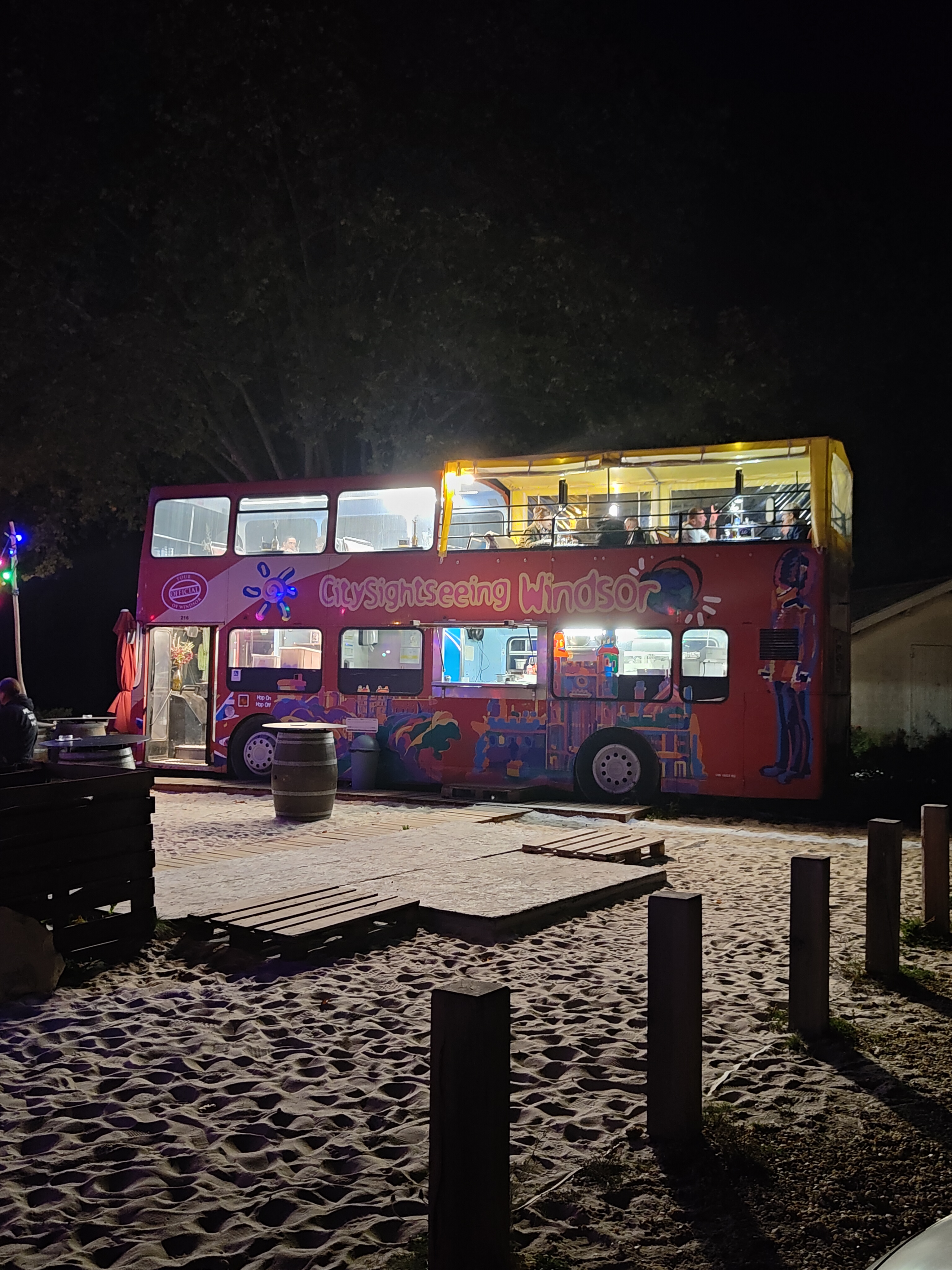 Le lieu pour boire un verre et manger quelques tapas est très sympa, pieds dans le sable, très sympa les tapas étaient bon. Ça vaut 5 🌟 Mais le repas dans le bus, malheureusement le fish & chips n'était pour moi pas à la hauteur! Le poisson sans goût et vraiment il y a avait trop trop peu de frites dans l'assiette. C'est pas ce qui coûte le plus chère les pommes de terres. Une bonne poignée supplémentaire n'aurait pas été de trop. Ça vaut 2 ou 3 🌟