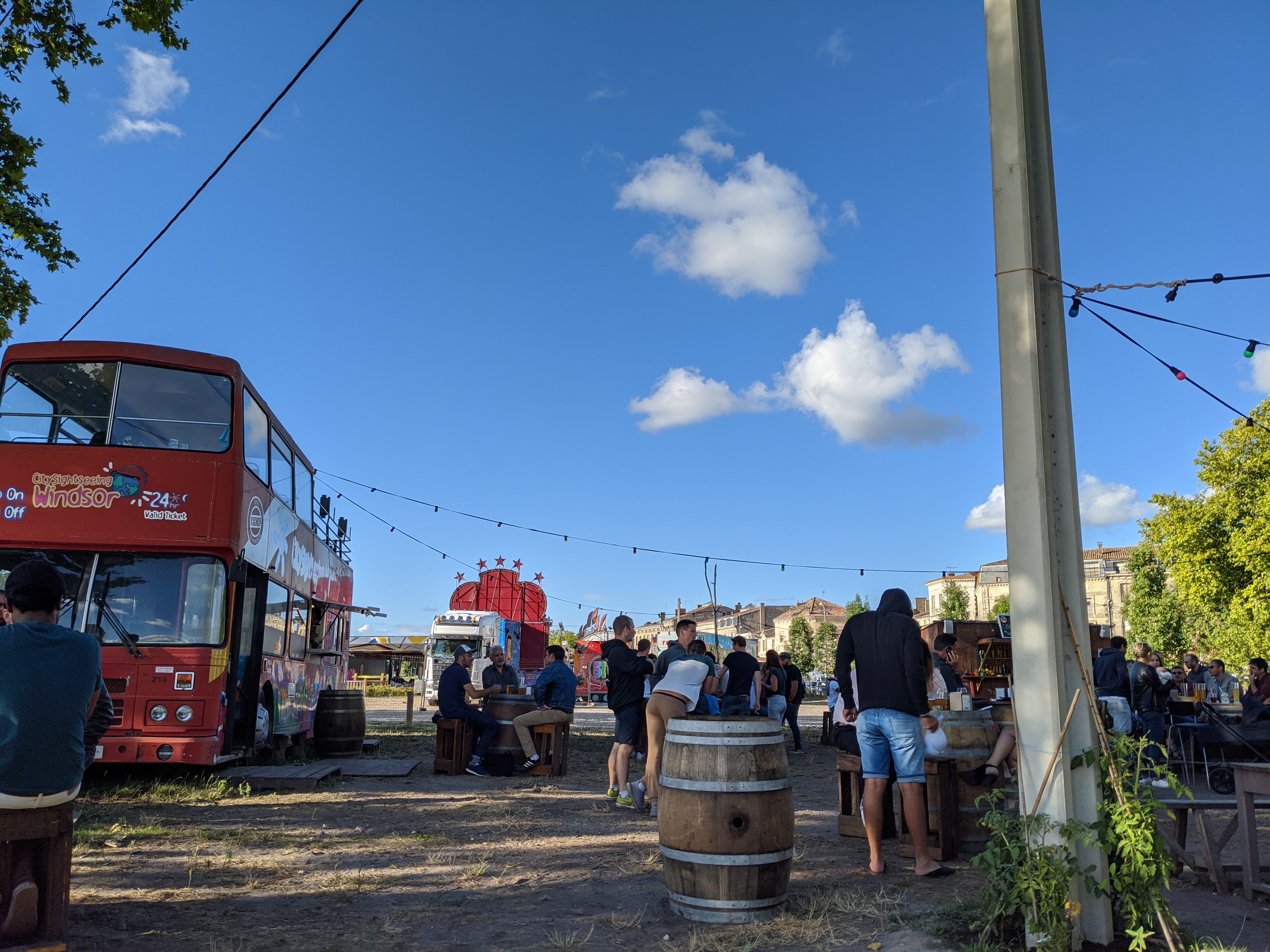 Le cadre est vraiment très sympa, dans l'air du temps, ce bus aménagé y apporte un charme fou...le coucher de soleil en sirotant un bon verre de vin ou une bière est superbe...le staff est au petit soin et efficace, bref un vrai joli moment. On peut y aller en amoureux, entre potes ou en famille, peu importe ce lieu convivial se prête a tous les formats.J'y retournerai avec un grand plaisir...ça donne envie de venir à Blaye plus souvent.