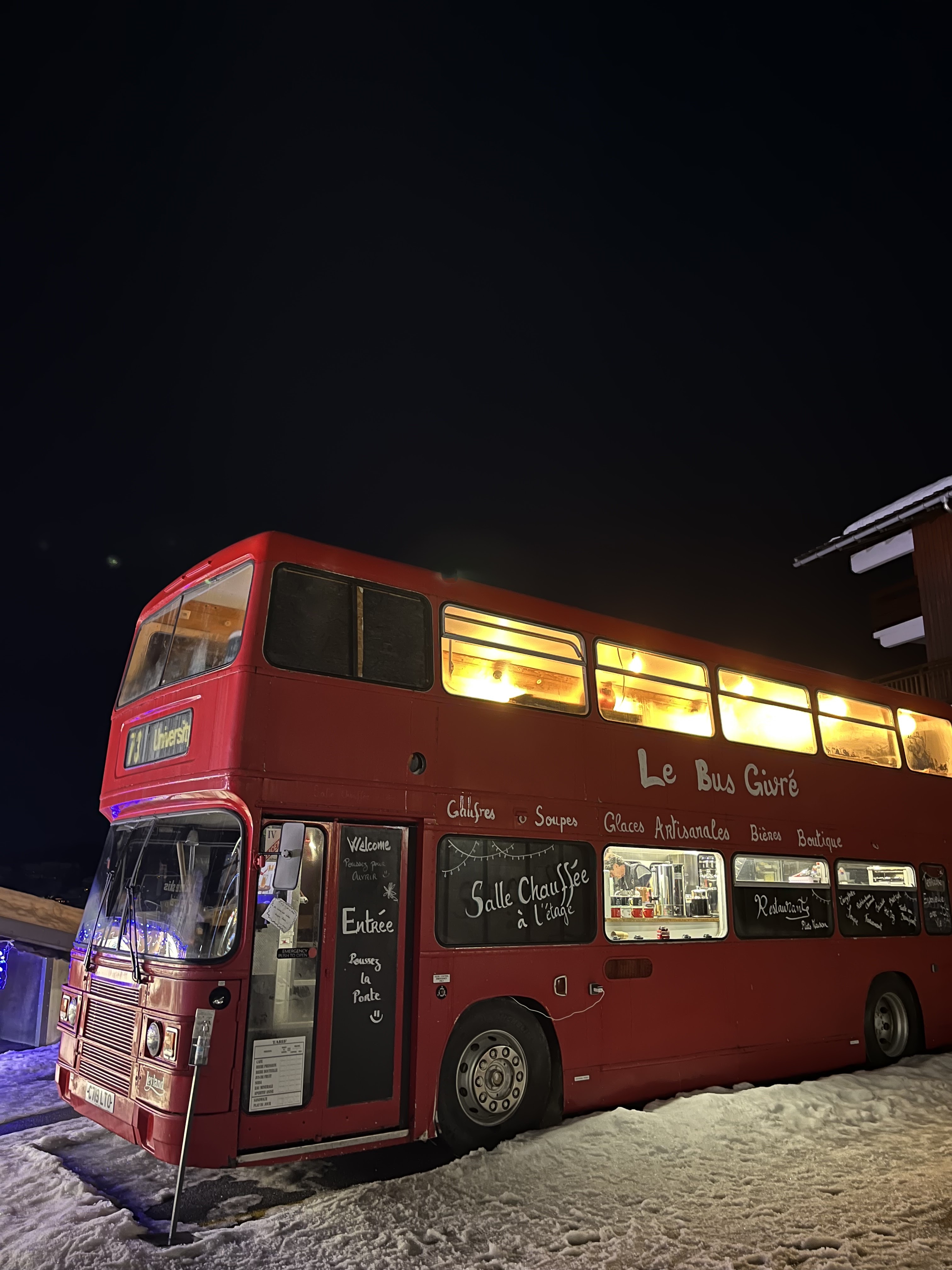 Avec un peu d'imagination on croirait presque que des montagnes ont poussé en plein Piccadilly circus, on est ce juste un bus à impérial perdu au coeur du Beaufortain... ?! De très bonnes glaces artisanales, des petites bières originales... Un accueil super agréable. Une belle terrasse avec vue. Il y a même des ateliers pour les enfants qui sont organisés. N'hésites pas à passer, vous ne serez pas déçu.