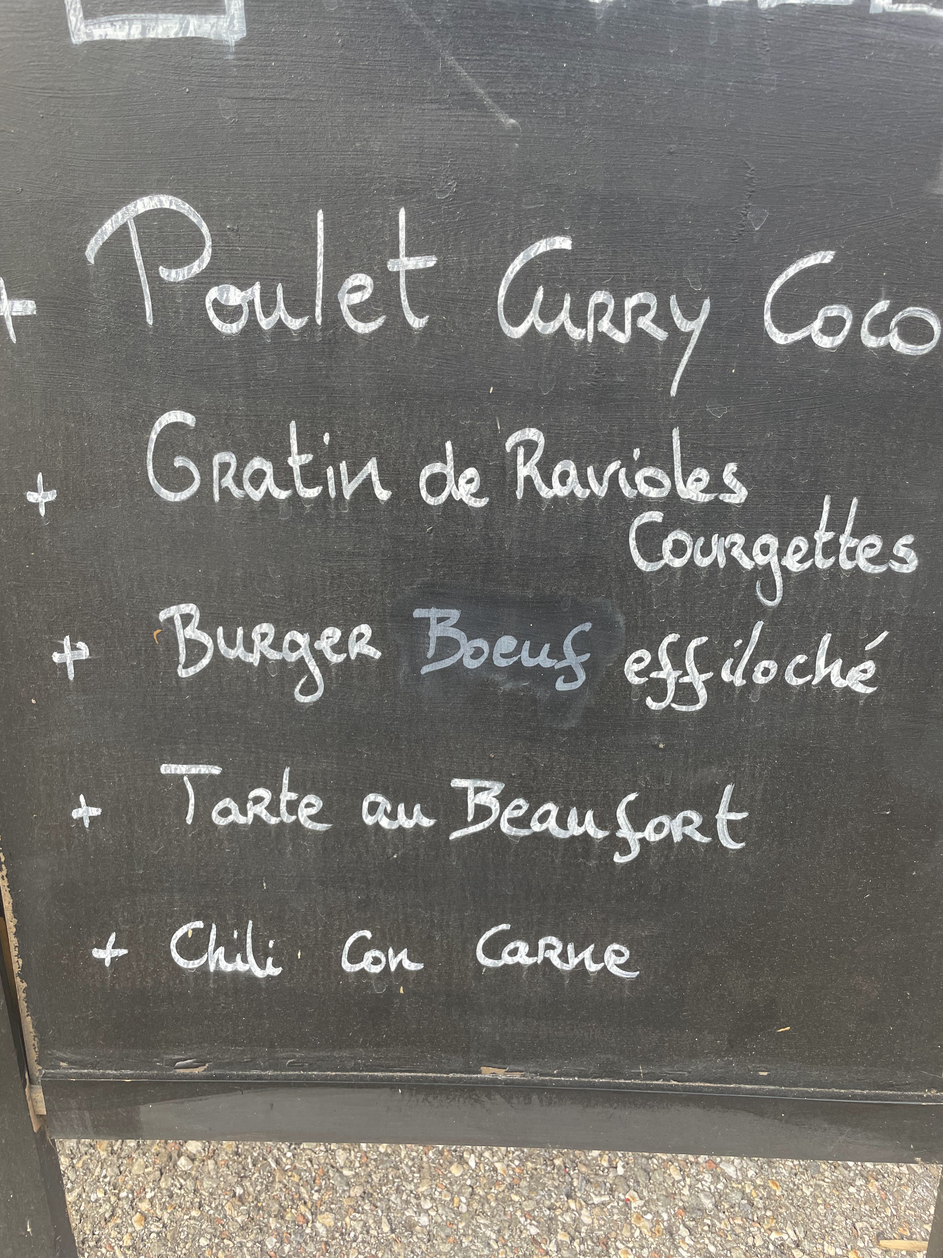 De passage à Beaufort, nous nous sommes arrêtés pour déjeuner rapidement. Nous avons pris deux burgers et trois boissons. Soi-disant à l’effiloché de bœuf le Burger était au poulet, pas plus de 20 g de viande en tout., une feuille de salade et un peu de fromage et sauce. Le tout servi avec une galette de pommes de terre et trois feuilles de salade. Prix du Burger à 17,90€. Pour un snack, j’ai vraiment eu le sentiment de me faire voler 48€40 pour 2 Burgers, 2 verres de limonades,1 verre d’eau gazeuse et 2 cafés.