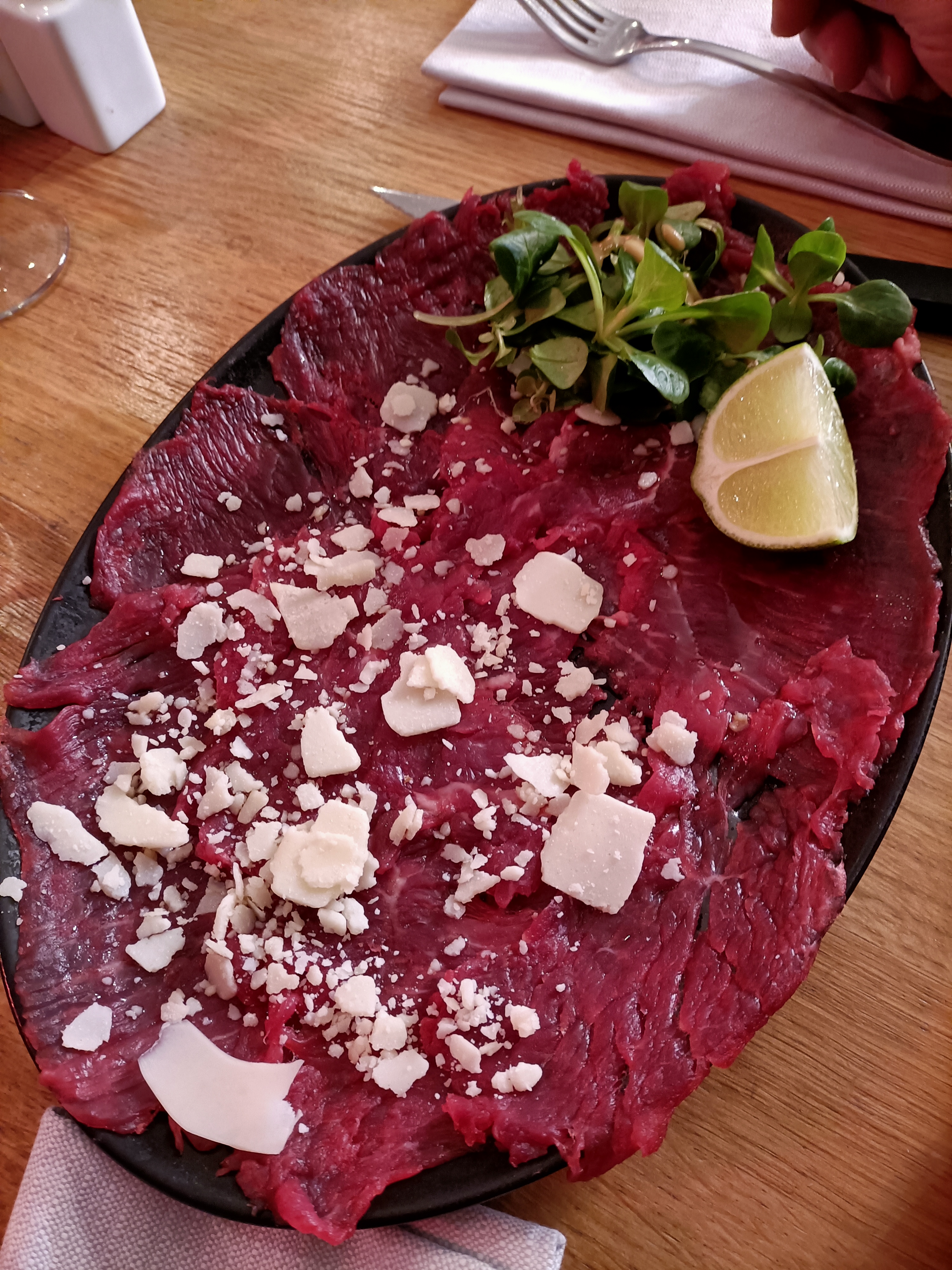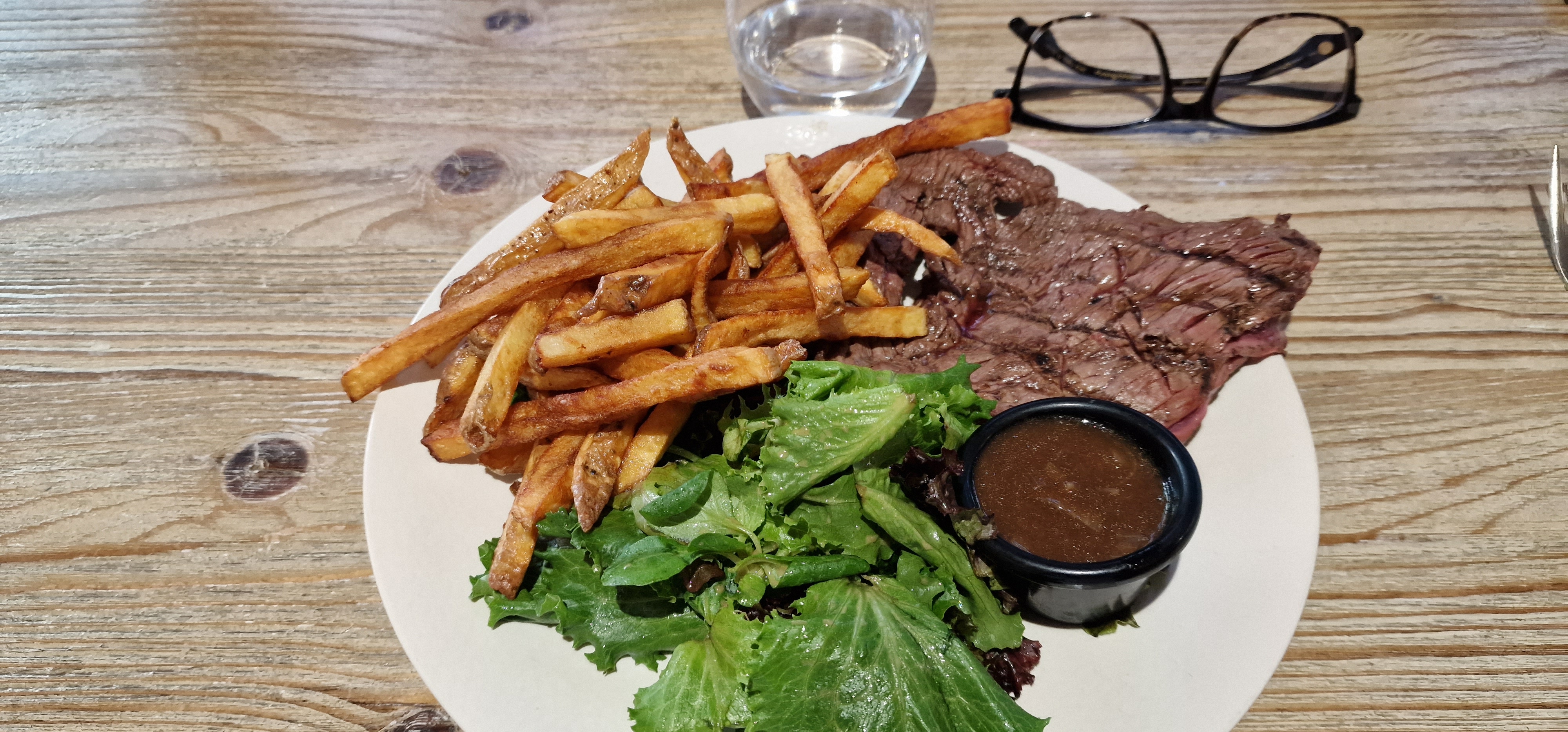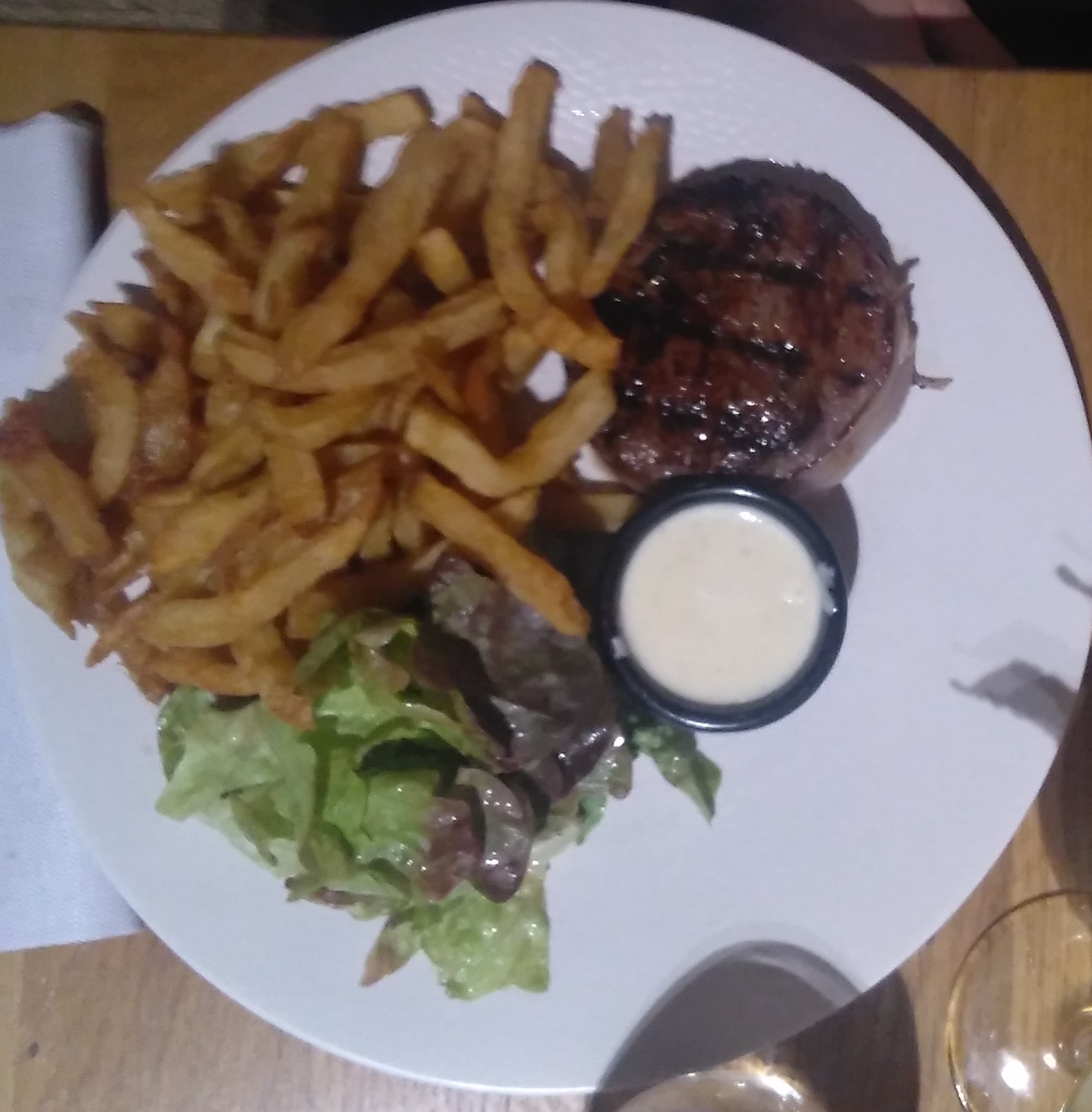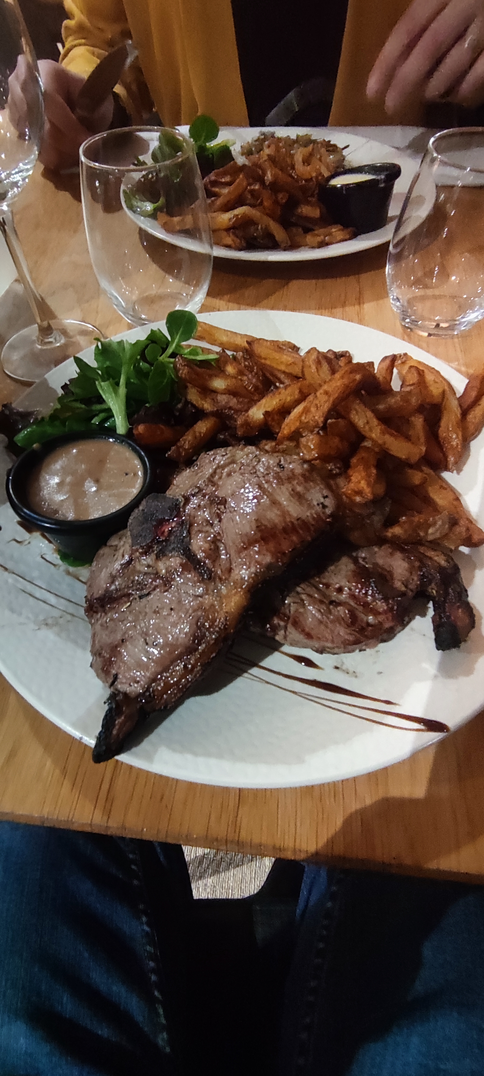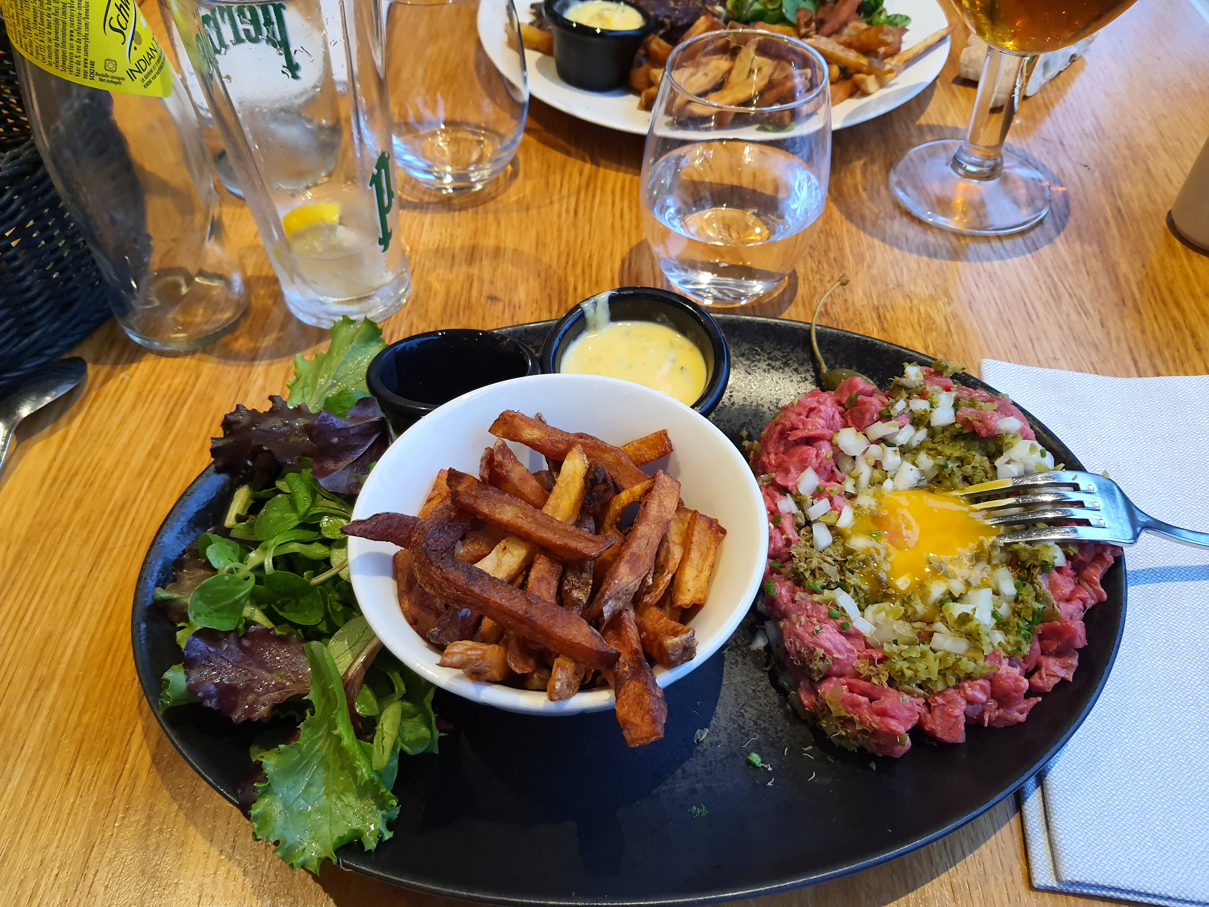 Très bonne viande et frites maisons ! Carpaccio un peu trop épais et les desserts hors de prix en revanche. Je recommande.