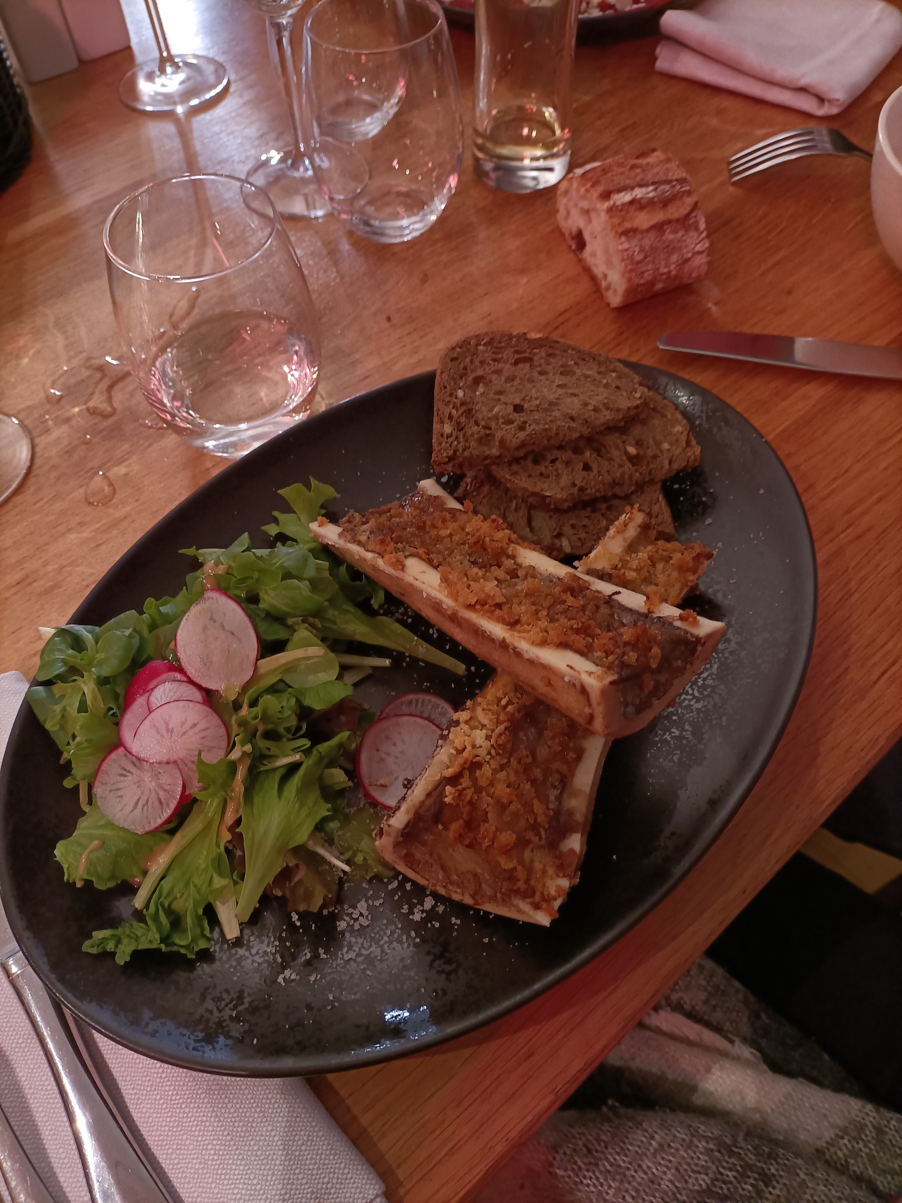 Un soir entre amis ! Nous avons eu l’occasion de prendre une planche ça reste très très léger, si non il faut rajouter à chaque fois par personne un peu plus de 7€. Mis à part ça la qualité des produits est très bien, le service et personnel agréable. Moyennant une quarantaine d’euros / personne (apéritif + planche + plat + dessert)