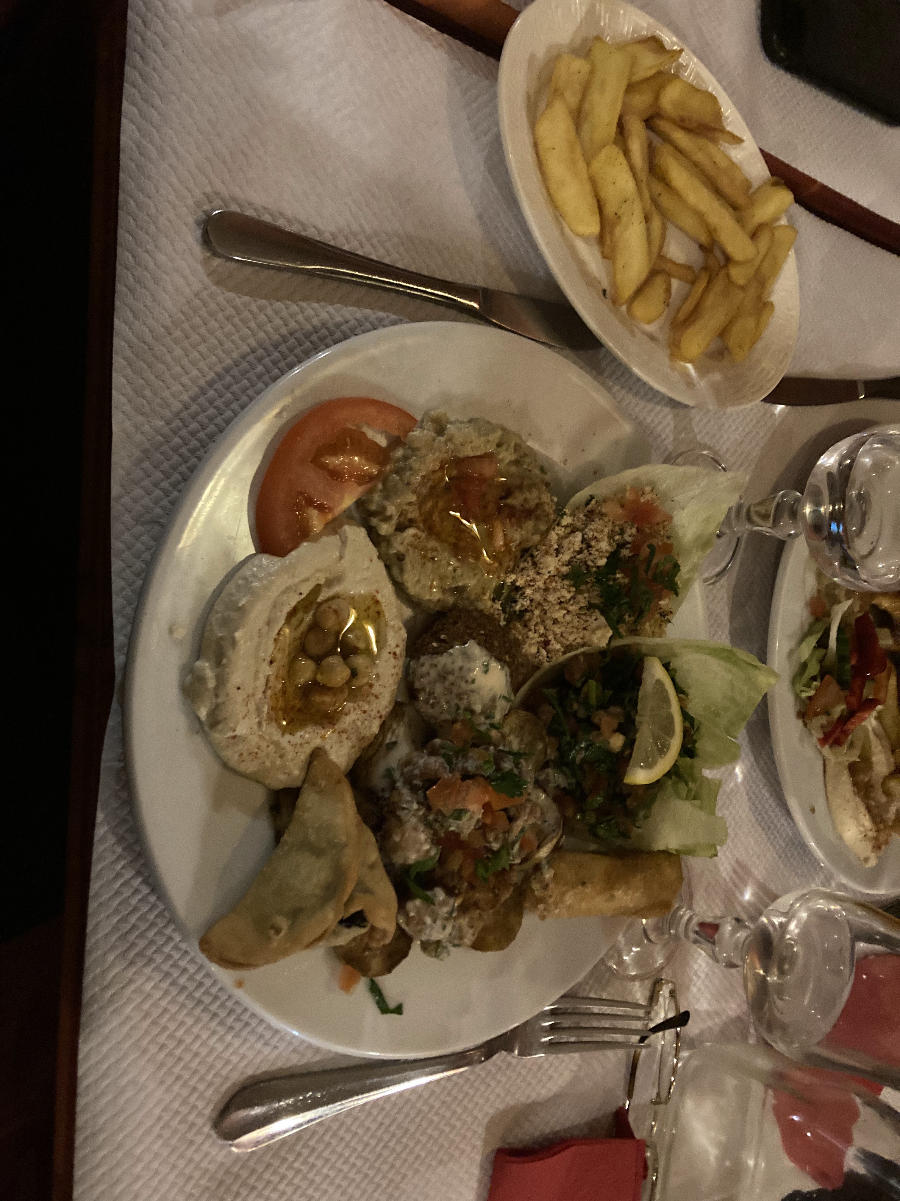 Nous avons pris un mezze pour deux personnes. C’était excellent, copieux et très abordable.