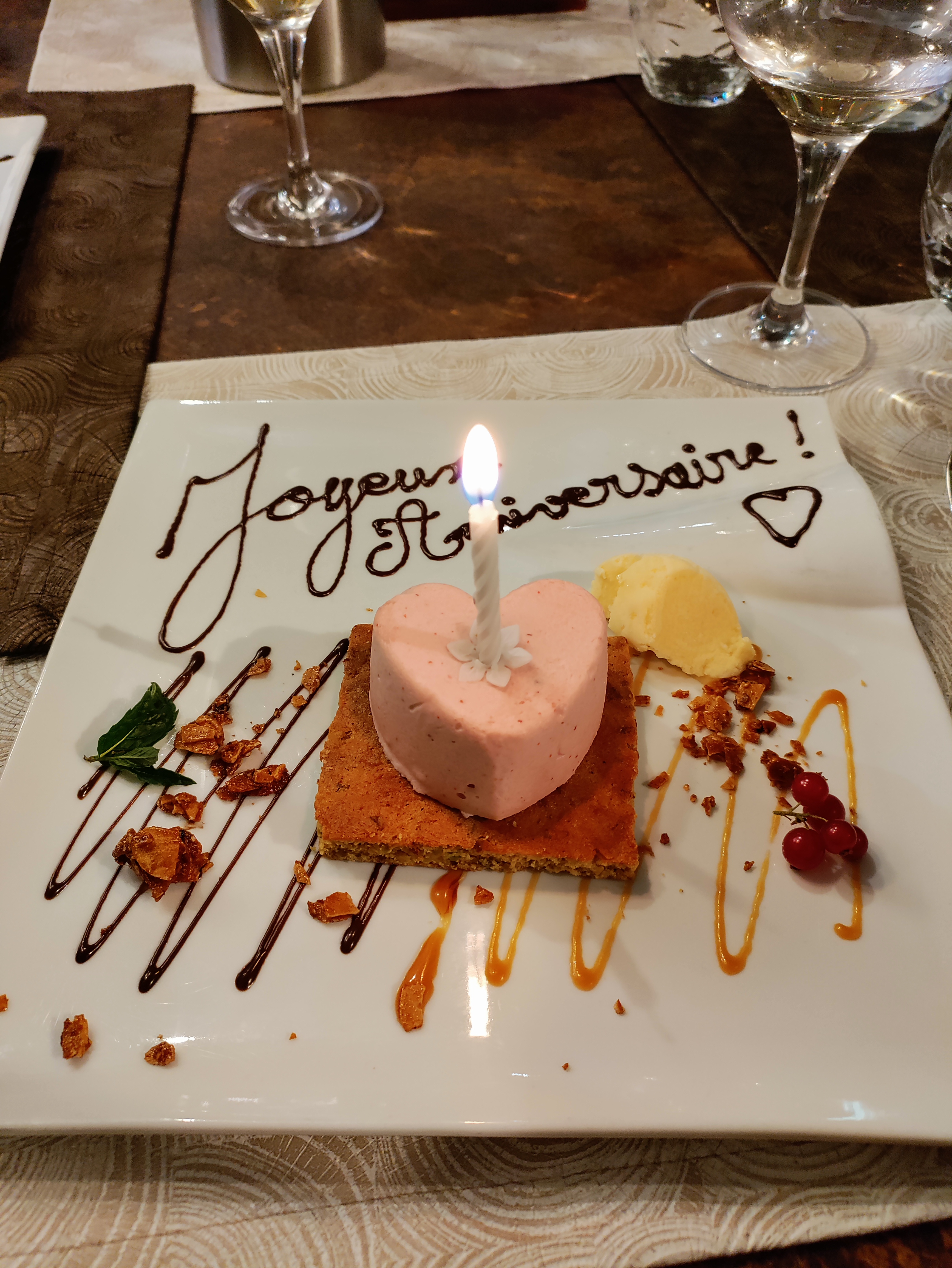 Merci pour cette superbe soirée ! Nous nous sommes régalés, les plats sont très bons juste comme il faut en quantité, les desserts une tuerie ( nous recommandons le dôme aux pommes : beau et bon !),le cadre très cosy et les hôtes aux petits soins ! Ils ont même pensé à la bougie pour l'anniversaire de notre loulou ! Bravo !