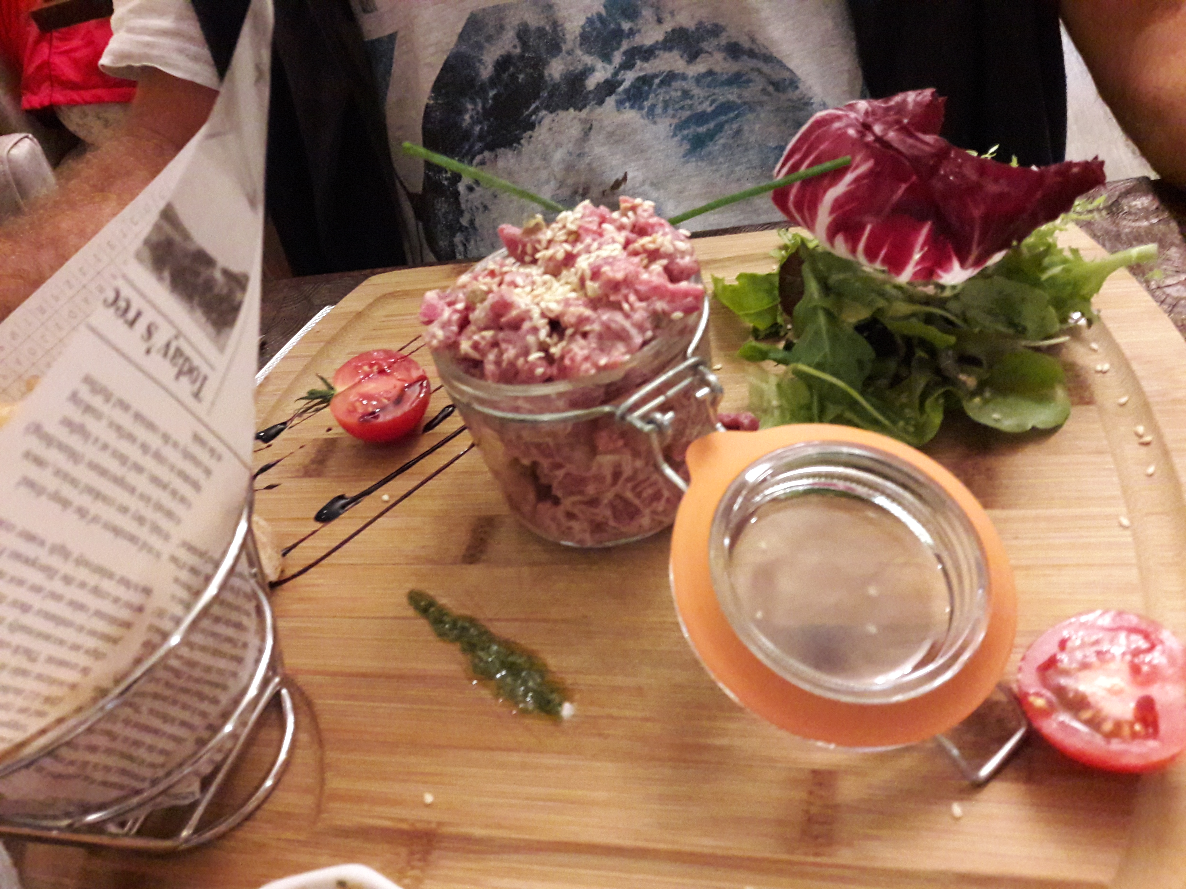 Réservé ici en raison des bonnes critiques. Les portions étaient assez petites, on suppose donc déjà que vous avez commandé au moins 2 plats. La viande était de qualité raisonnable, un peu moelleuse. Lorsque cela a été signalé, l'employé a réagi quelque peu négativement. Le tartare était trop assaisonné et le goût pur de la viande disparaissait. La joue de porc et le vin rouge ont été appréciés. Dans l'ensemble, c'est très cher pour ce que c'est.
