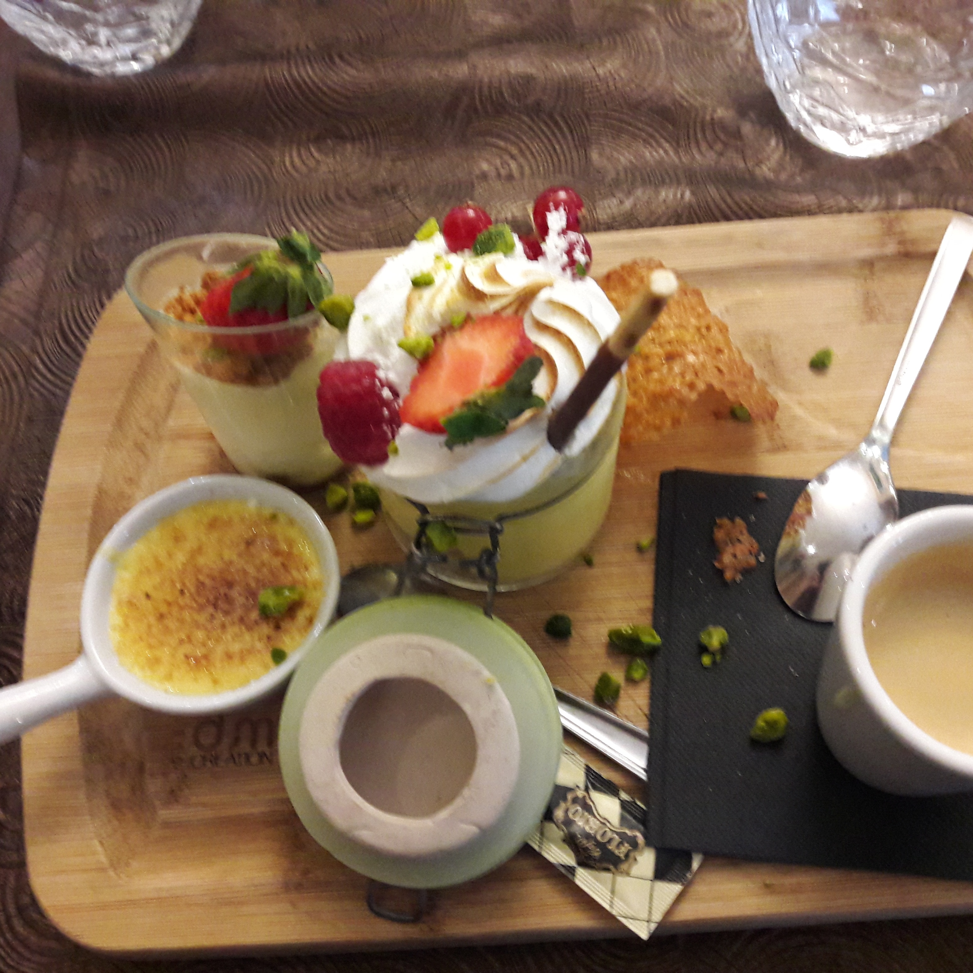 On a passer un superbe voyage culinaire, un tendron de veau au miel incroyable accompagné de divin navet et d'un gratin de courgette fabuleux. Les desserts qui ne démérite pas, on aurait voulu goûter toutes la cartes mais il fallait raison garder.... Au final même le café éthiopien finalise le repas avec un petit biscuit craquant délicieux.. . On sent tous l'amour de la préparation culinaire qui est mis dans son travail par ce maître restaurateur. On vous le conseil vivement !