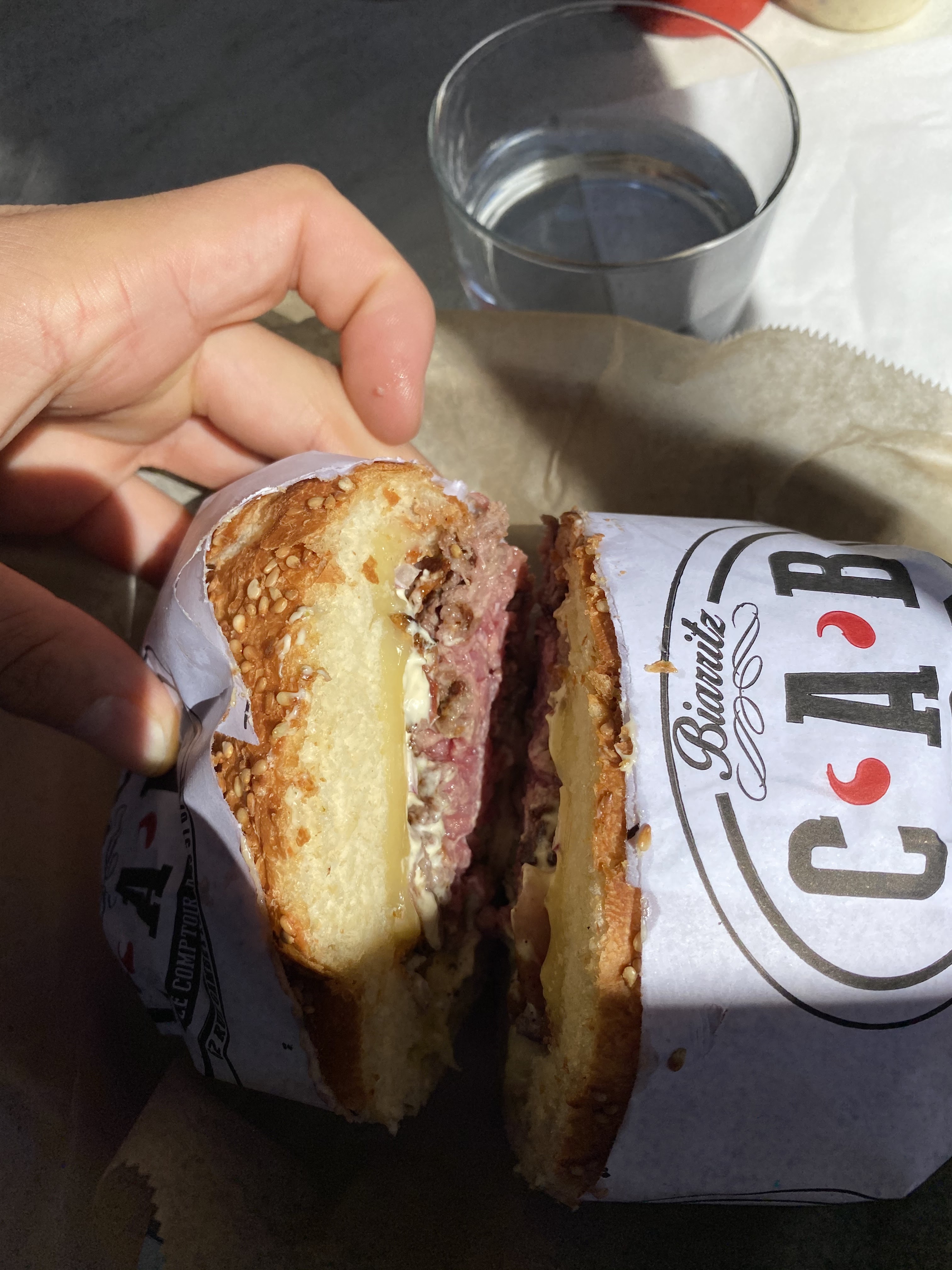 Vraiment très déçue, je voulais faire plaisir à mes fils en allant déguster un burger autre que ceux des habituels fastfood que je ne nommerais pas. En fait le cab n'est pas un restaurant de spécialités burger mais juste un fastfood de qualité supérieure : en effet, nulle plaisir à s'y attabler mais plutôt à avaler son burger et partir au plus vite. A 4 sur des tabourets de bar tout métallique bas de gamme et une console de mangedebout en guise de table. Bref, quand la serveuse amène les burgers dans leur panier et les boissons on ne vous met pas de verre car sur la table y a plus un millimètre de place, tout est dit, c'est un restaurant aussi spacieux qu'une cabine téléphonique 😱, quand au burger on est juste mieux que les chaînes classiques mais pas plus.