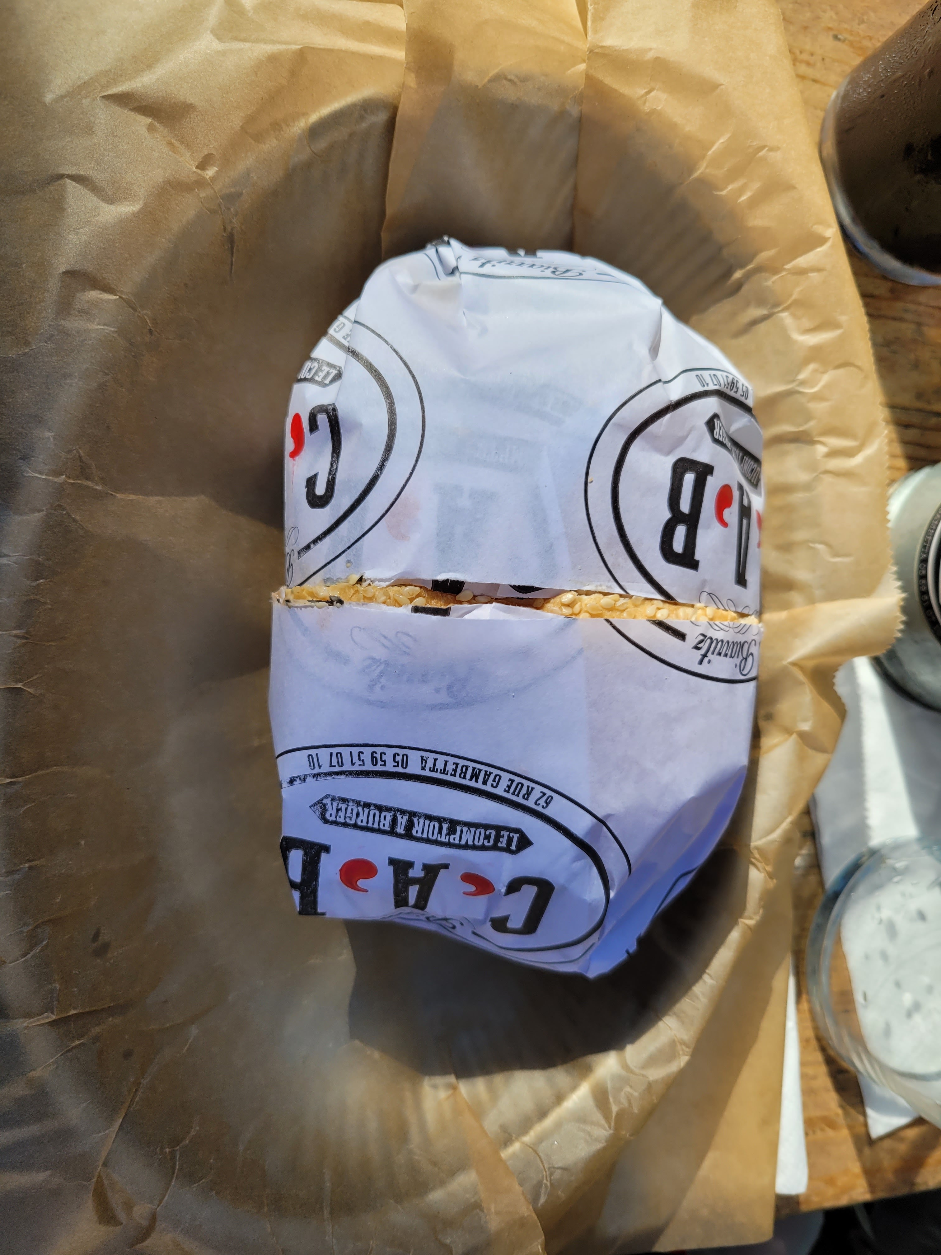 Tres bon endroit pour manger un bon burger avec des produits frais et régionaux! Un petit plus pour l’accompagnement des chips maison qui remplace les frites ordinaires vendu dans un gros sachet qui contient une portion pour deux tellement il est remplie. Le dessert était tout aussi bon. Un tiramisu fait maison et très léger pour finir ce repas ! Pour ma part c’était le Bayonne comme burger.