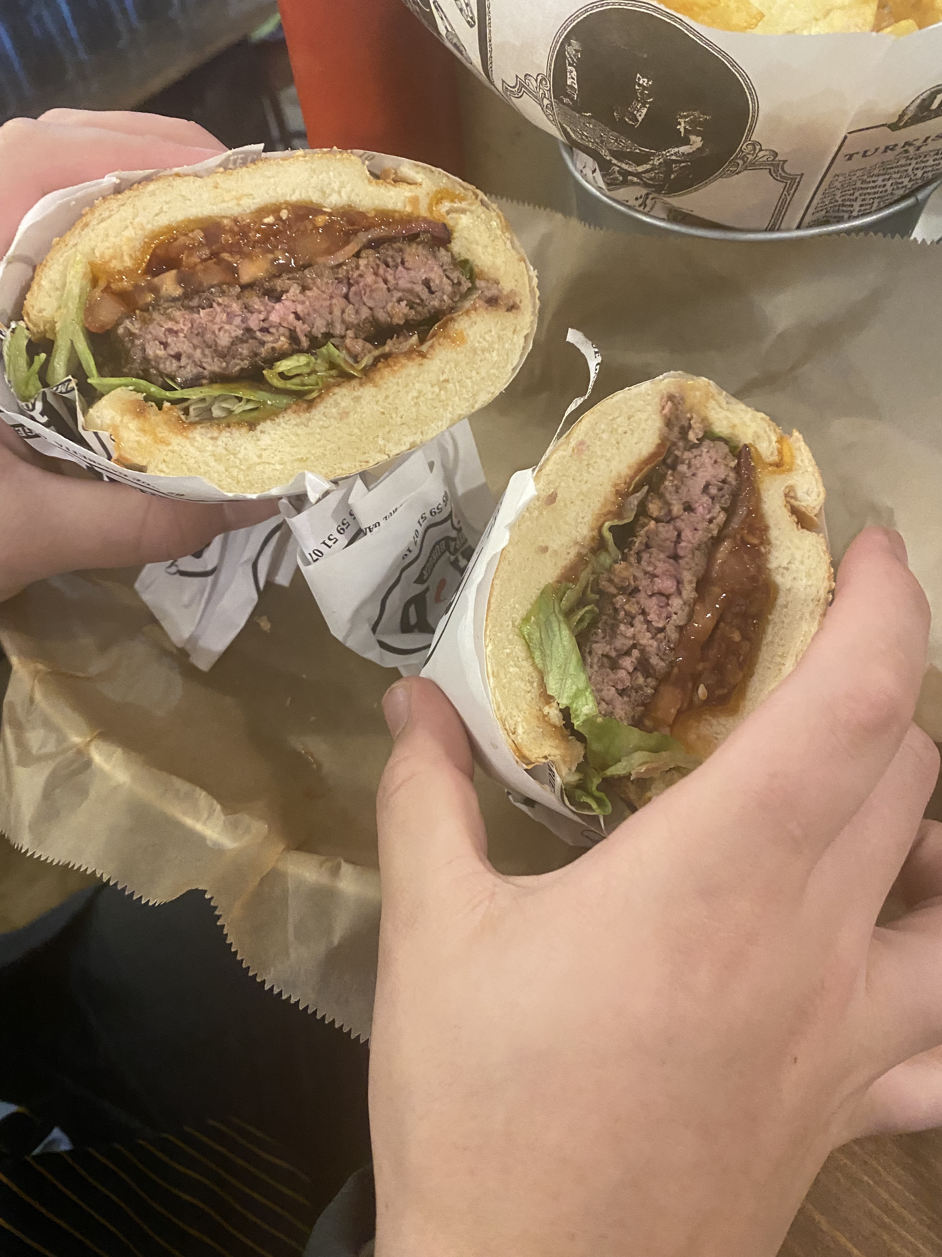 Des hamburgers spectaculaires. Quatre ans après mon arrivée ici, je repense avec tendresse au souvenir de cette nourriture exceptionnelle. Un point négatif est que les sièges et les tables sont inconfortables.