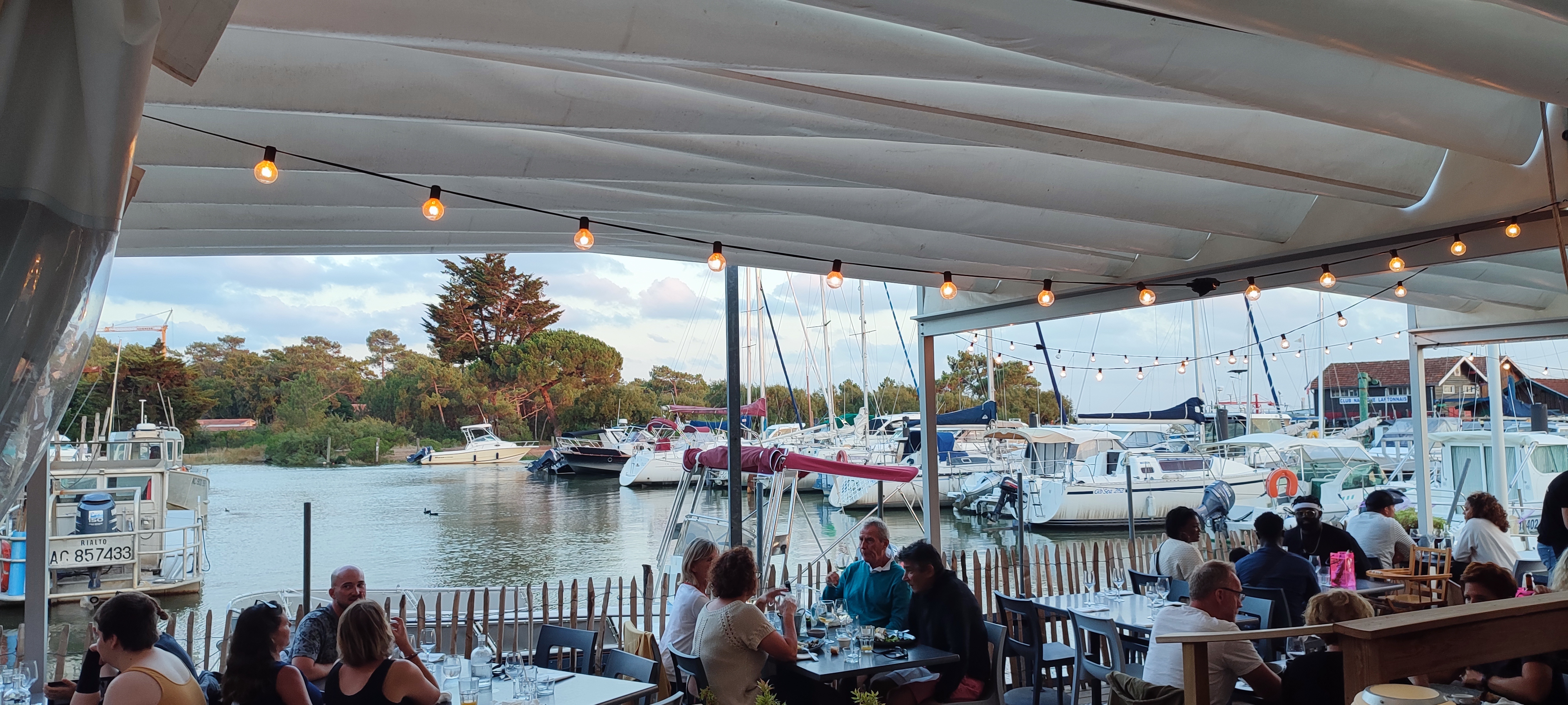 Restau très sympa en bord du port de lanton avec petit bar sympa en extérieur et de l'autre côté terrasse du restaurant Le long du port. Carte avec assiettes de fruits de mer, plusieurs aux choix très abordable et fruits de mer très frais et très bon! Autrement des poissons ou des viandes très bonnes aussi! Un menu enfant est prévu. Accueil par une équipe très souriante. Vraiment super restau je recommande ☺.