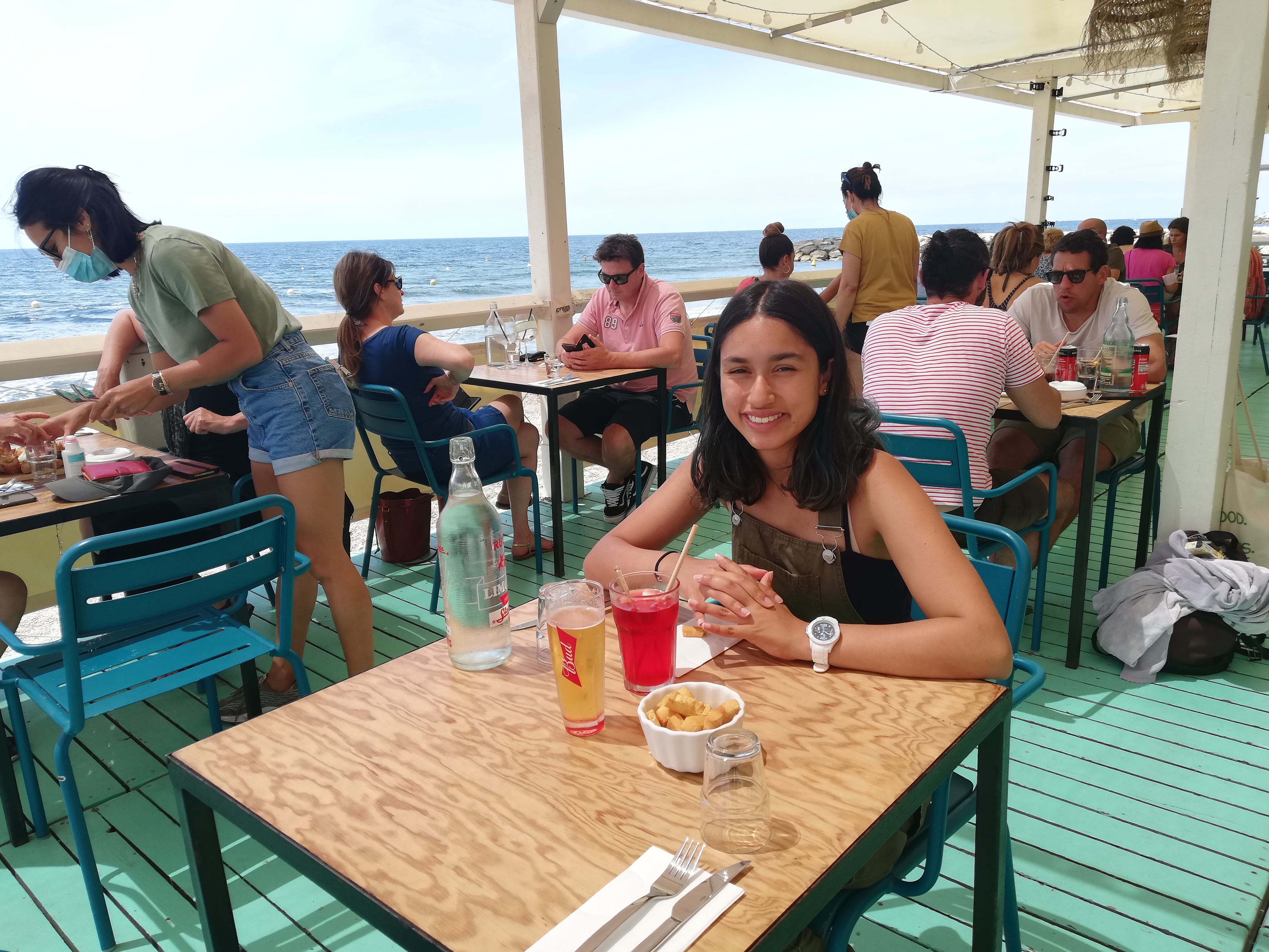 Superbe endroit : - Plats DÉLICIEUX (des tapas, aux plats aux desserts) ; - Emplacement magique avec vue sur la mer et atmosphère/decoration très cool ; - Service au top 🙂 Un endroit différent des resto classiques du bord de mer. Y foncer !