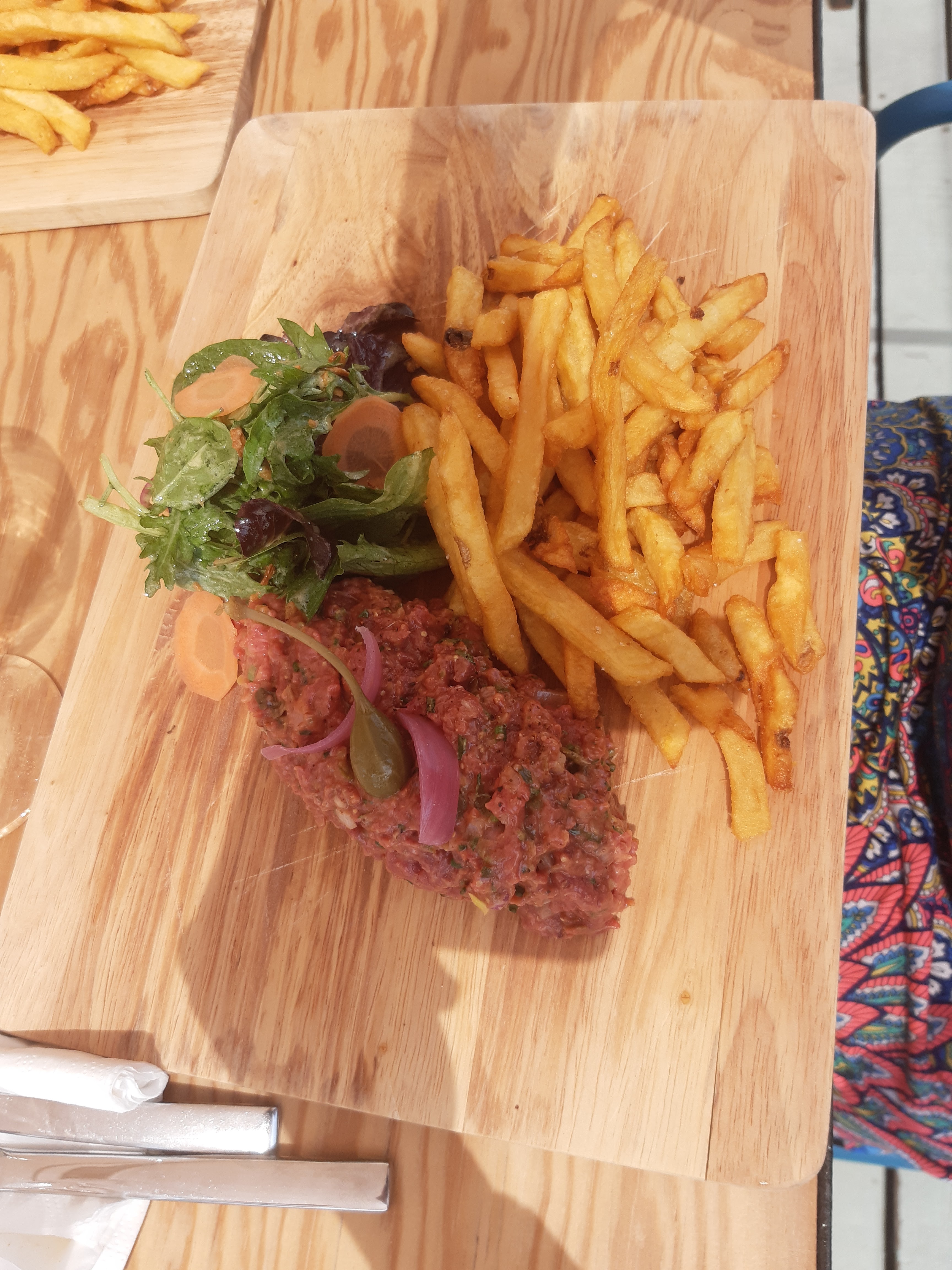 Bravo pour la cuisine : c'est le meilleur steak tartare que l'on ai mangé ! L'emplacement est très bien : au bord de l'eau. L'équipe est à la fois sympa et pro. Pensez à réserver une table, les places partent vite.