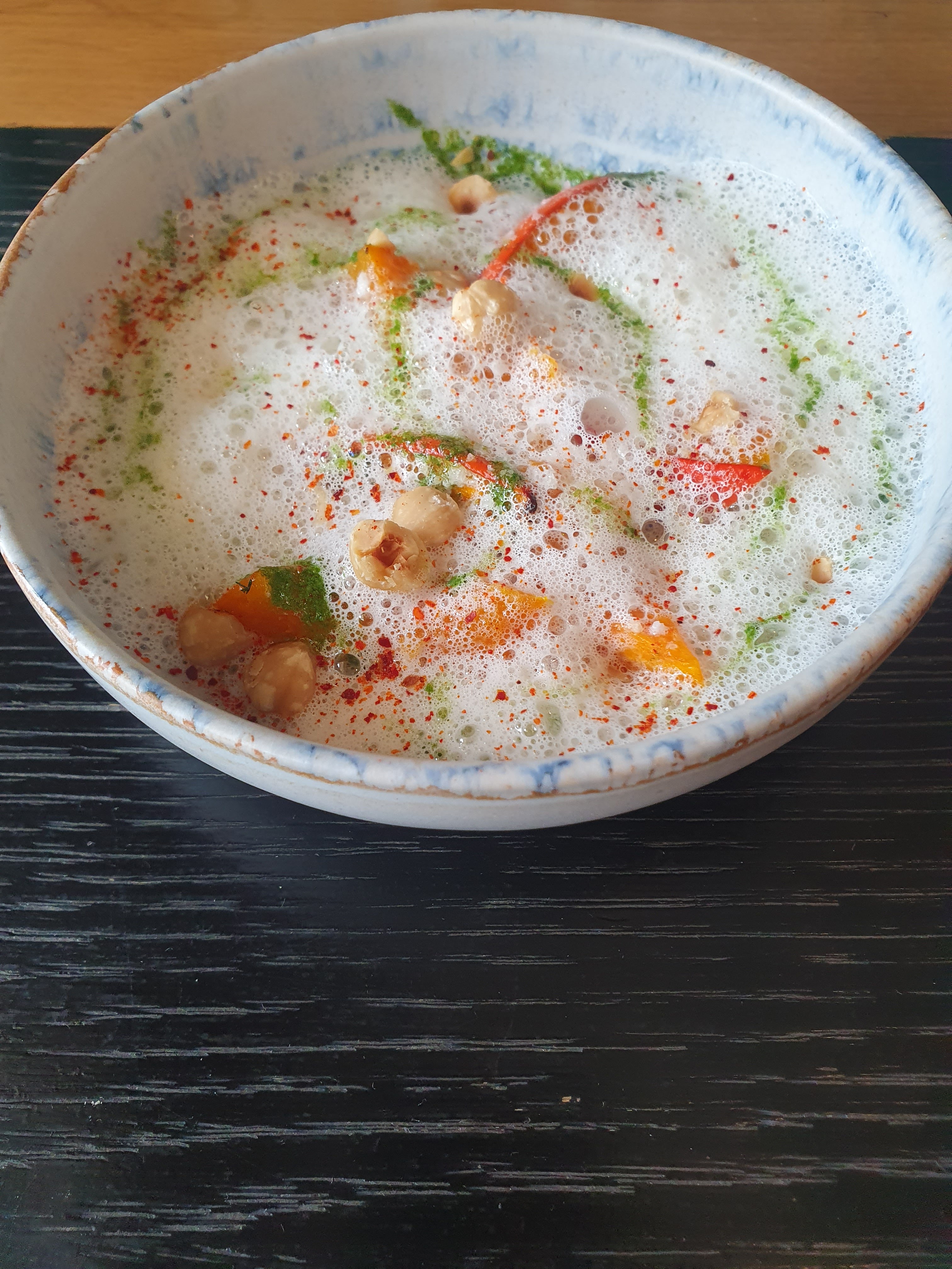 Très bonne cuisine ,beaucoup de goût, mélange de saveurs,petit bemol sur le burger en dessert trop sucré avec la brioche ,le chocolat ,le meilleur du dessert était les fruits du dessert notamment les frites d ananas ,pour le service juste un peu d attente entre les plats sinon c était parfait,à recommander