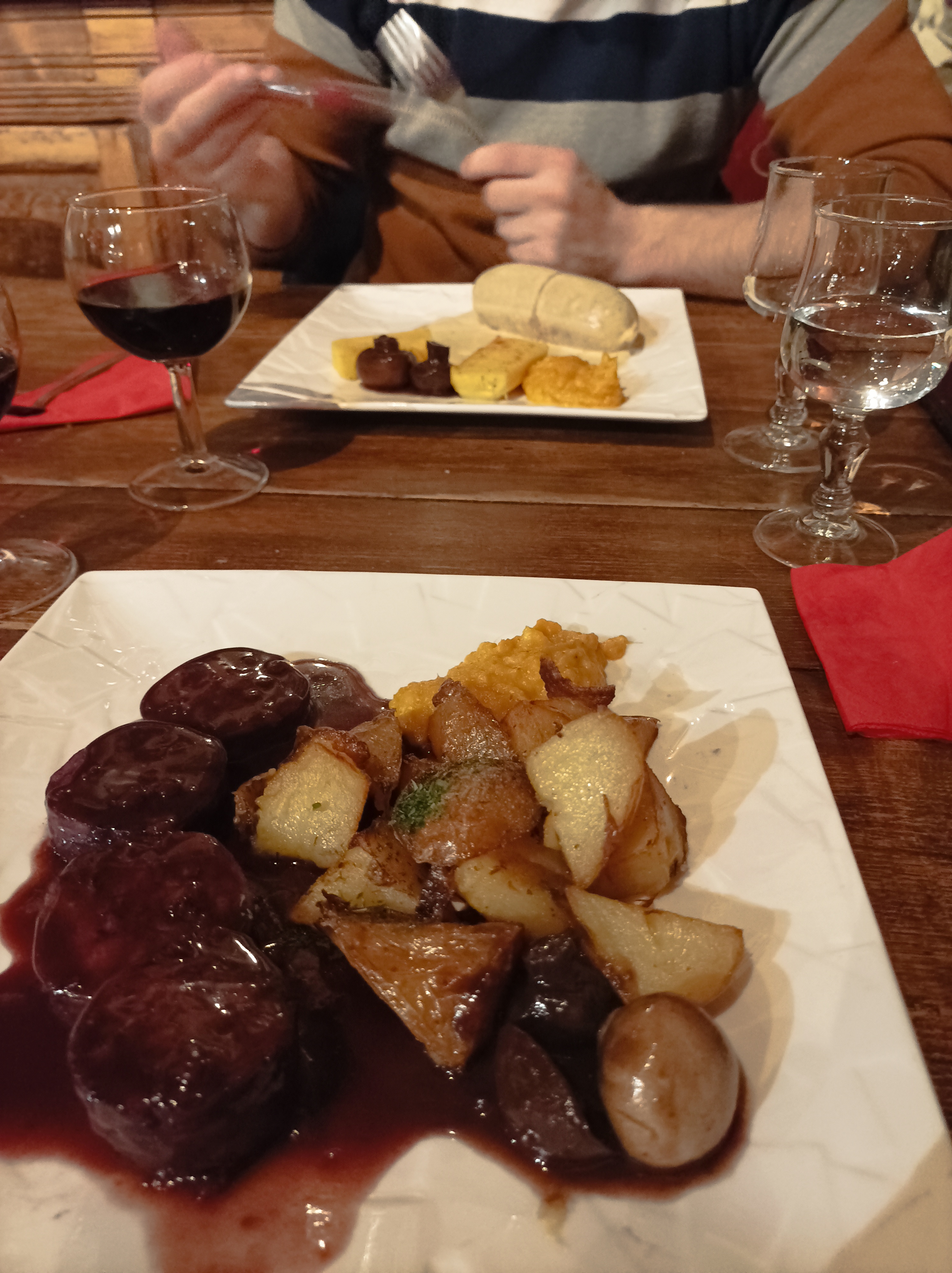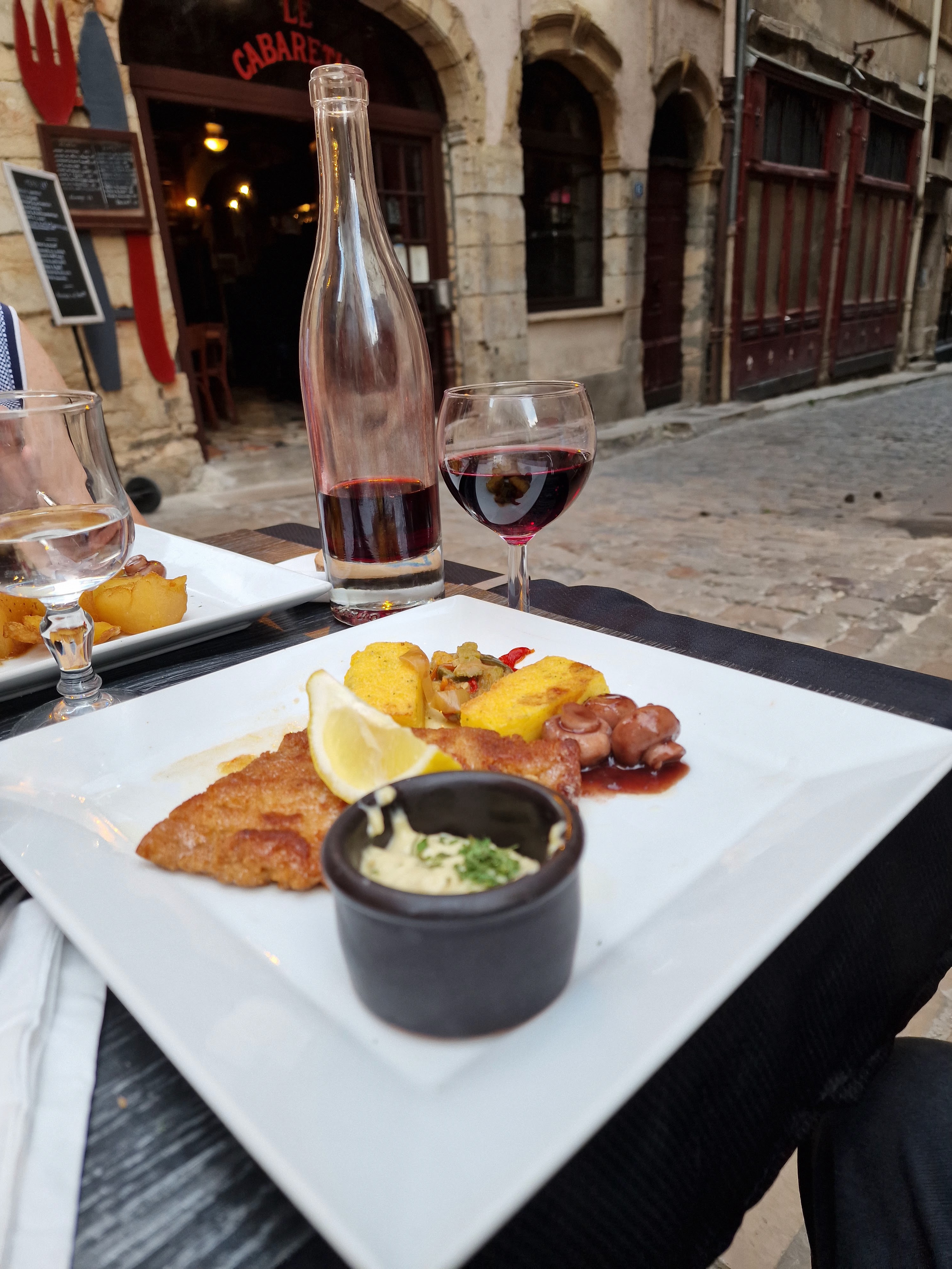 Comme c'était ma première visite à Lyon, j'avais envie d'aller dans un quartier un peu historique, où c'était calme mais aussi l'ambiance avec les bruits de verres à vin qui tintent et les bons restaurants. Je suis content d'être allé dans ce restaurant. Je recommanderais de commander le menu à 30 heures et pour le plat principal d'essayer Tribes. C'est particulier mais vraiment délicieux, super chaud alors attendez qu'il refroidisse un peu pendant que vous dégustez votre vin et votre entrée !