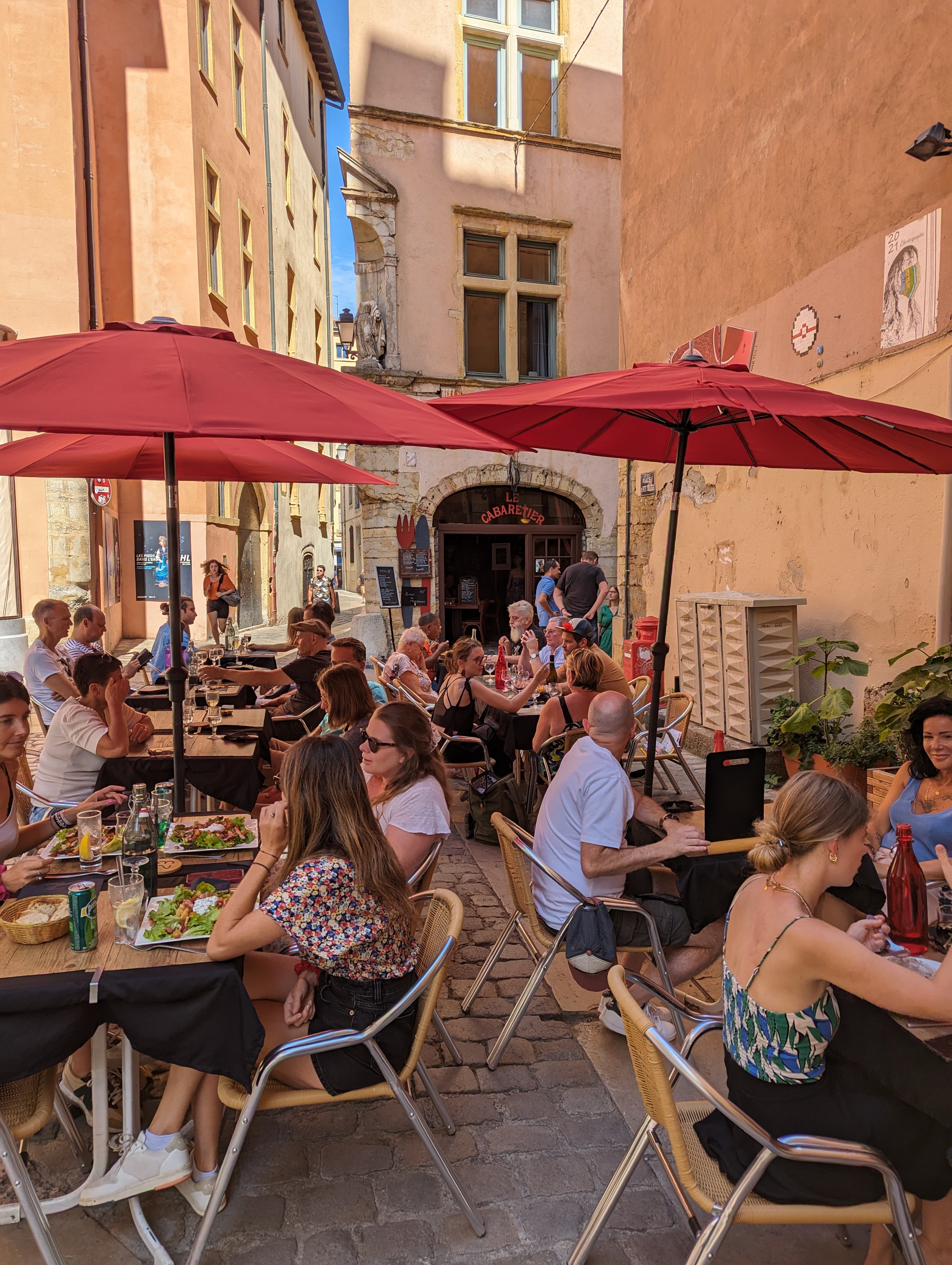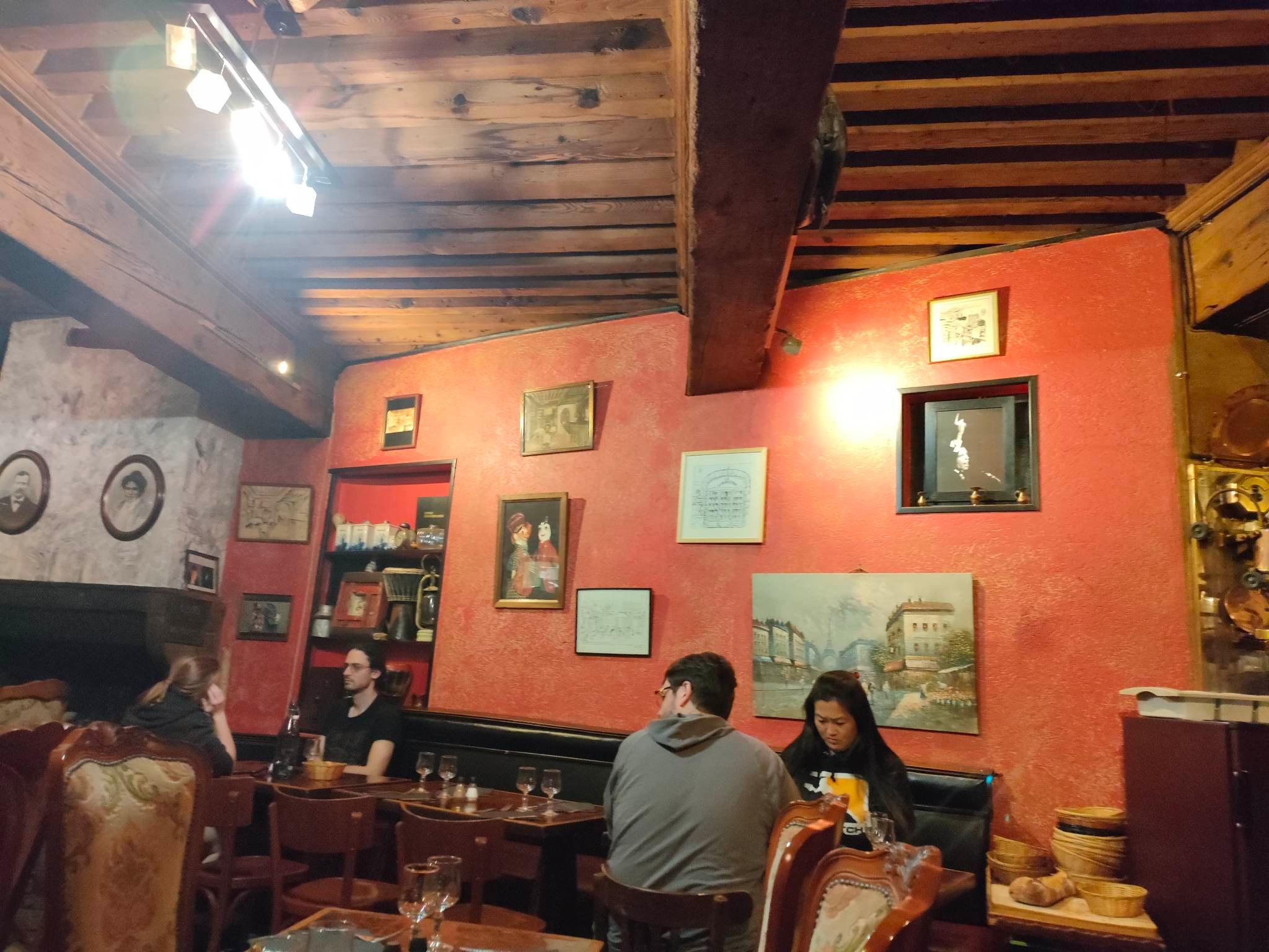 Ambiance conviviale au cœur de la ville qui donne l'impression de visiter un village avec des hôtes hospitaliers prêts à aider, expliquer et proposer des plats. La nourriture est traditionnelle et parfaitement préparée. La musique voyage dans l’esprit avec les classiques français du 20ème siècle.
