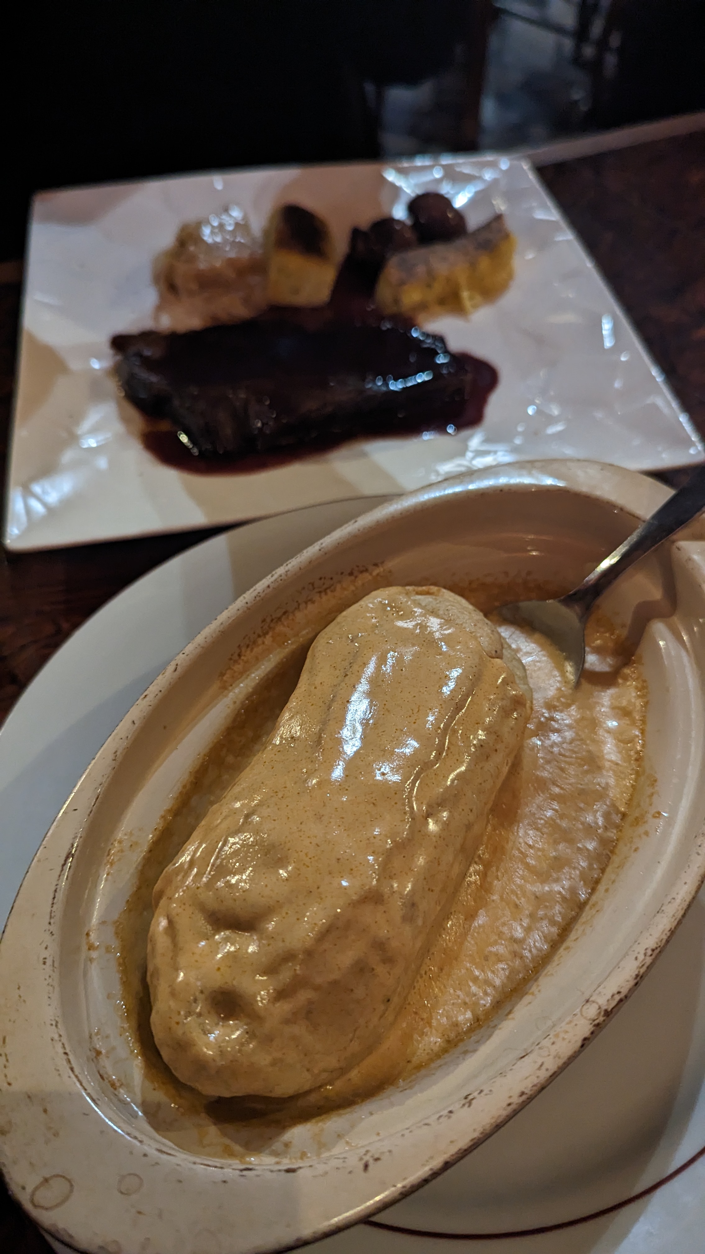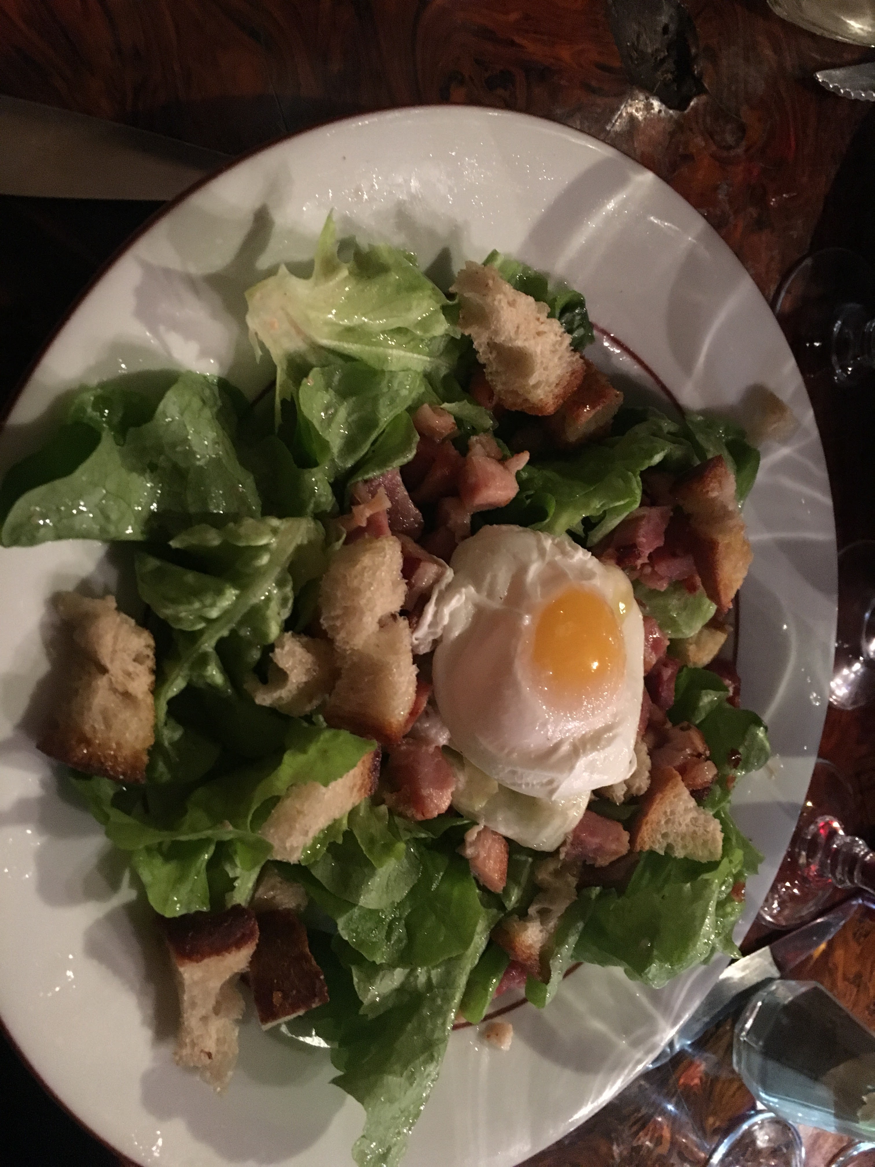 C'était pas trop mal dans l'ensemble mais l'heure d'attente était vraiment de trop. On est parti avec notre dessert sous le coude. L'oeuf en meurette était très bon. Pour l'émincé de volaille aux cèpes, j'ai cherché les cèpes. Il y en avait peut-être quelques fines lamelles...