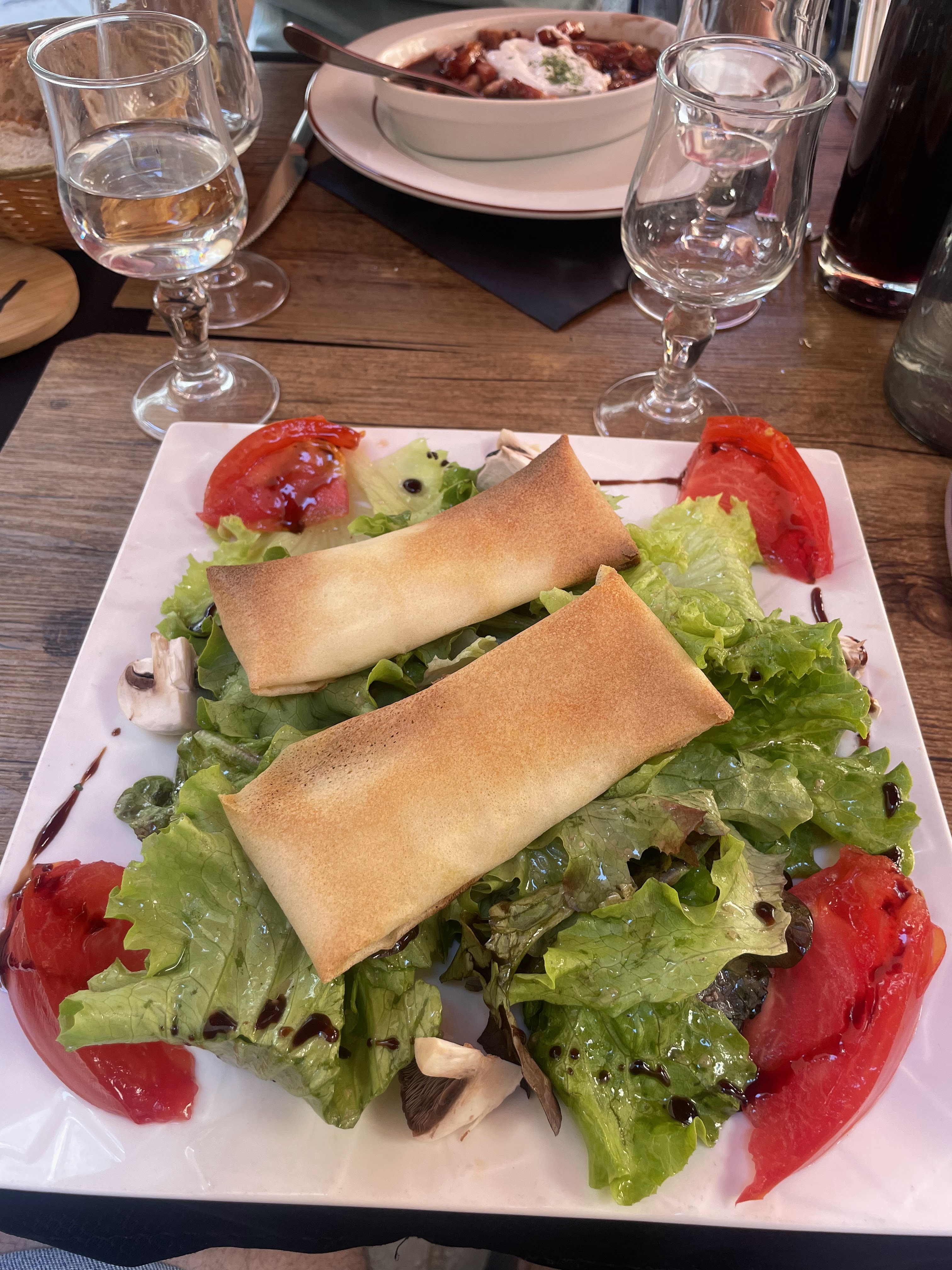 Très bien situé, à seulement une rue des pièges à touristes et de l'agitation de la vieille ville. Nous sommes dehors à l’ombre d’un parasol, une super ambiance pour une journée de printemps. Nous avons dégusté une belle salade de chèvre chaud et des raviolis accompagnés d'une bouteille de rosé. Le service était sans hâte et sympathique, nous avons vraiment adoré notre séjour ici.