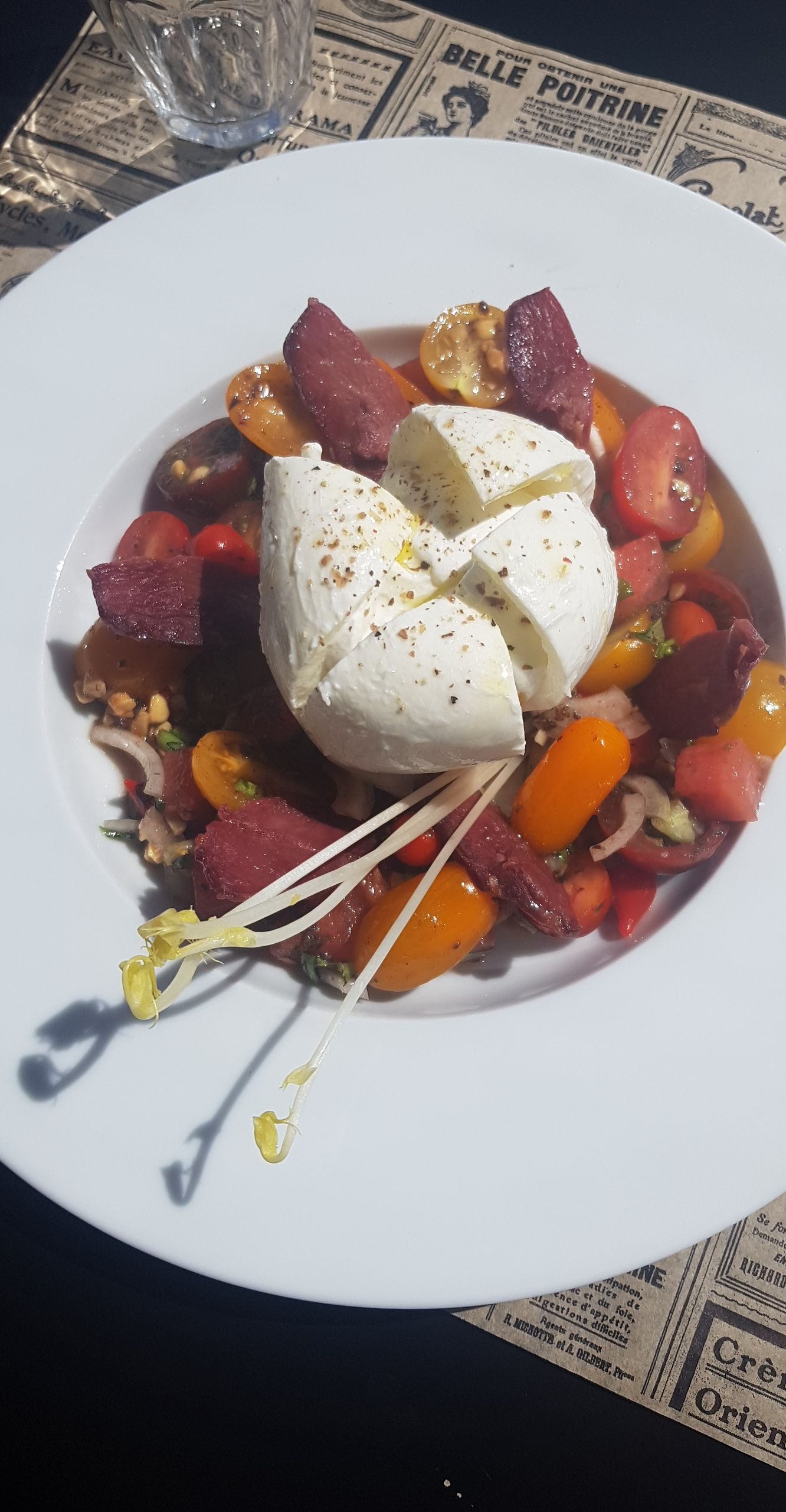 Nous avons visité pour la première fois l'autre soir, notre nourriture était exceptionnelle. La quantité d'ingrédients dans la salade à elle seule était incroyable, l'attention portée aux détails est superbe et la qualité et la providence de la nourriture elle-même sont excellentes. C'est un endroit minuscule et c'est aussi une épicerie fine, même si vous pouvez manger dehors s'il fait beau. Faites juste attention à la quantité que vous commandez, en plus d'être de haute qualité, les portions sont généreuses. Nous étions rassasiés après une entrée de salade et notre plat principal chacun, nous ne pouvions donc pas essayer un pudding ! C'est un véritable atout pour Guéret et ils ont une belle perspective sur le marché principal (supérieur).