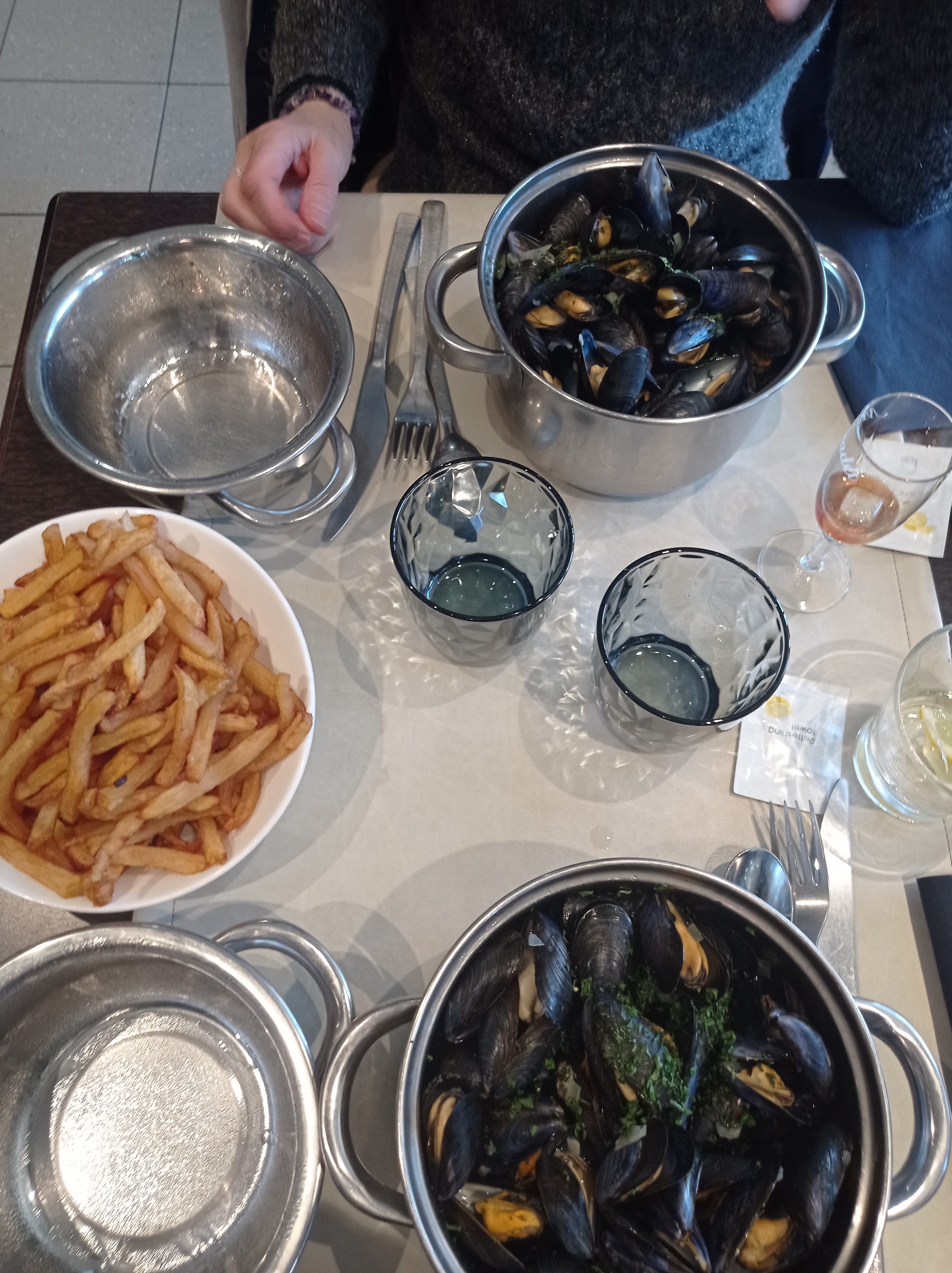 Peu de coordination, un personnel essoufflé et dans le jus car la gerante préfère discuter pendant 1 heure avec des clients, donc beaucoup d attente. Je plains les employés pourtant sympathiques. Au niveau plat de moules, rien à dire, très bon, ainsi que les frites