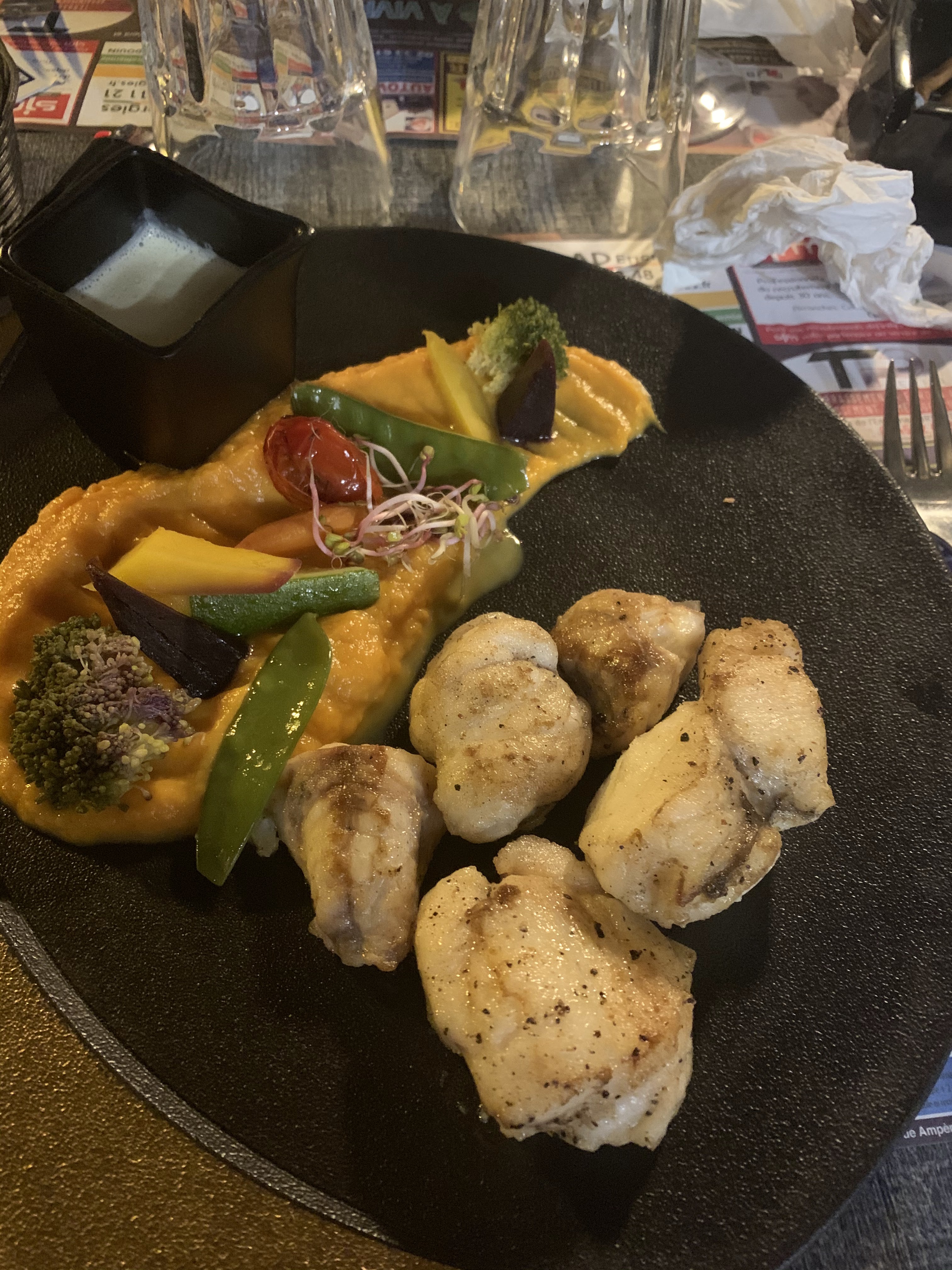 Équipe jeune et dynamique, nous avons été vite servis malgré que le restaurant était presque plein. La cabillaud chorizo avec ses légumes de saison, une tuerie. ❤❤❤