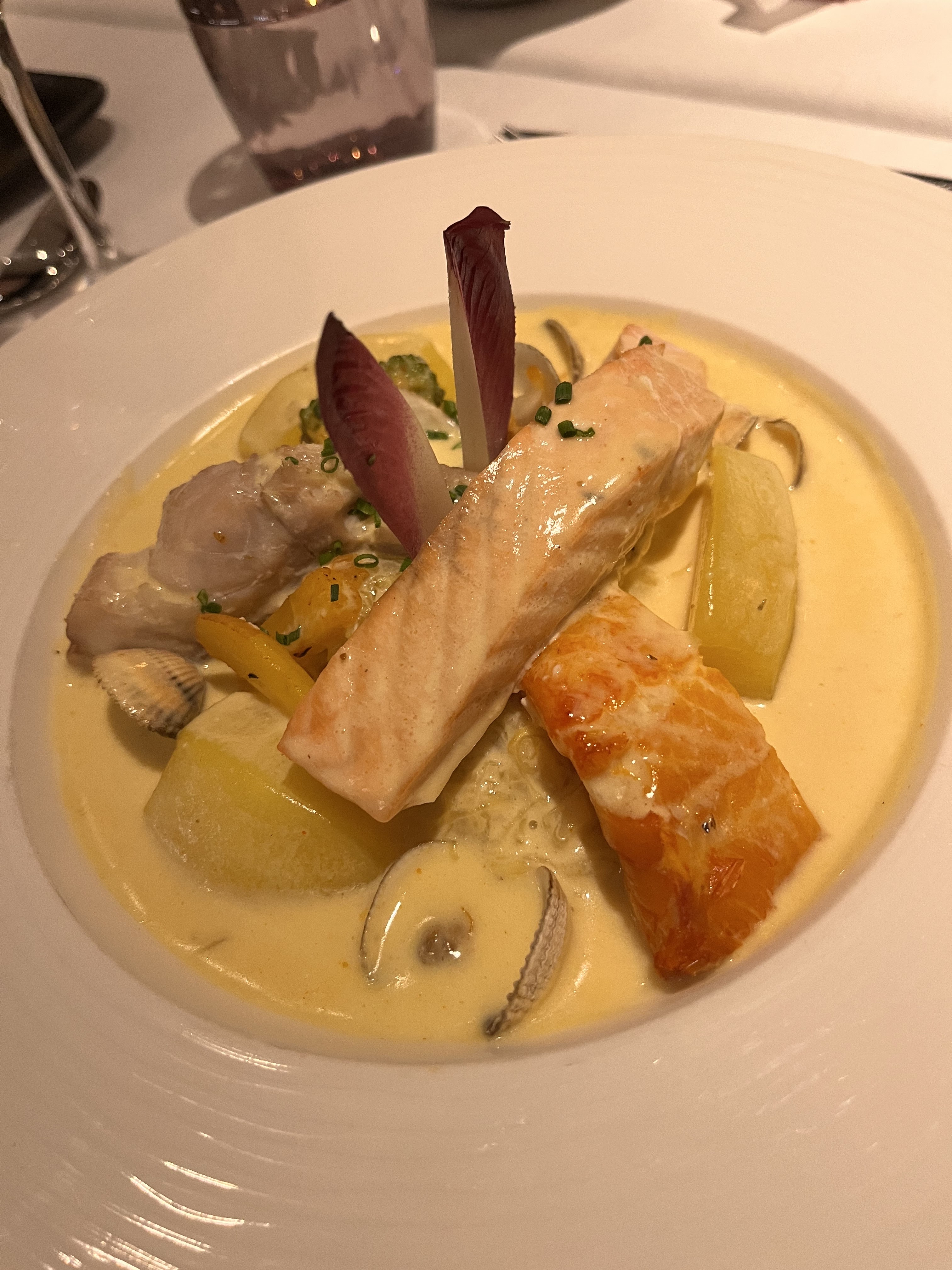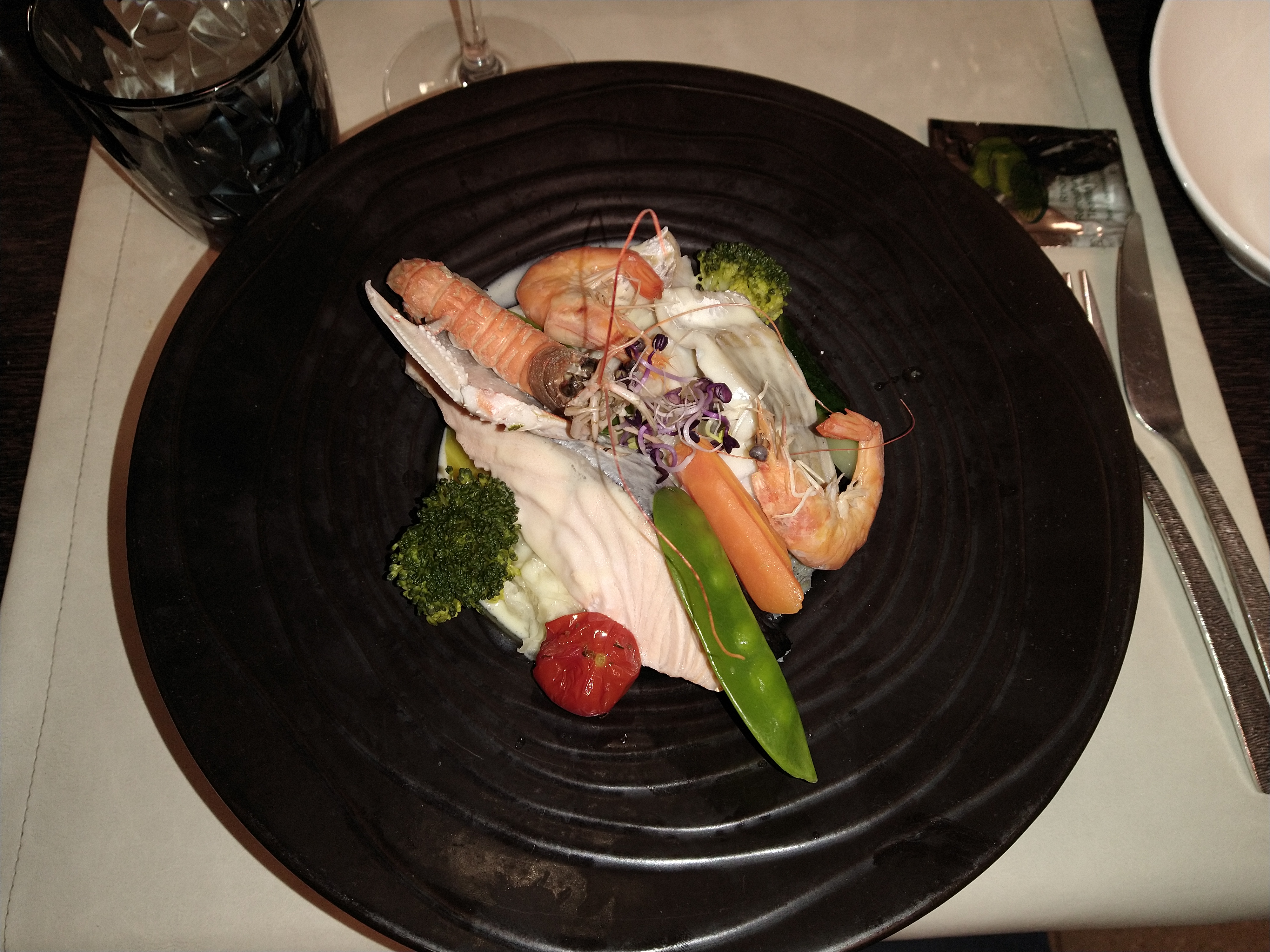 Une belle émotion culinaire avec les moules royales [avec gambas, pétoncles, crevettes et langoustines] Un personnel sympathique et un délice un délice, a découvrir absolument