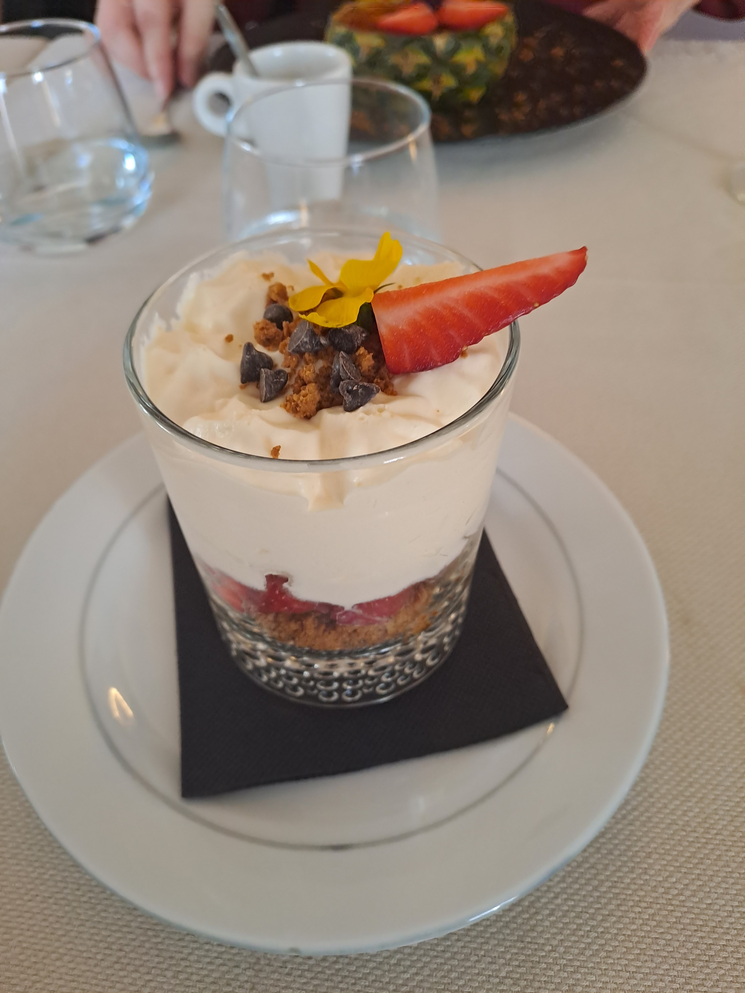 Dîner en famille : cuisine raffinée, plats délicieux de l entrée au dessert et l'ensemble est très copieux. Le cadre est cosy avec une belle vue
