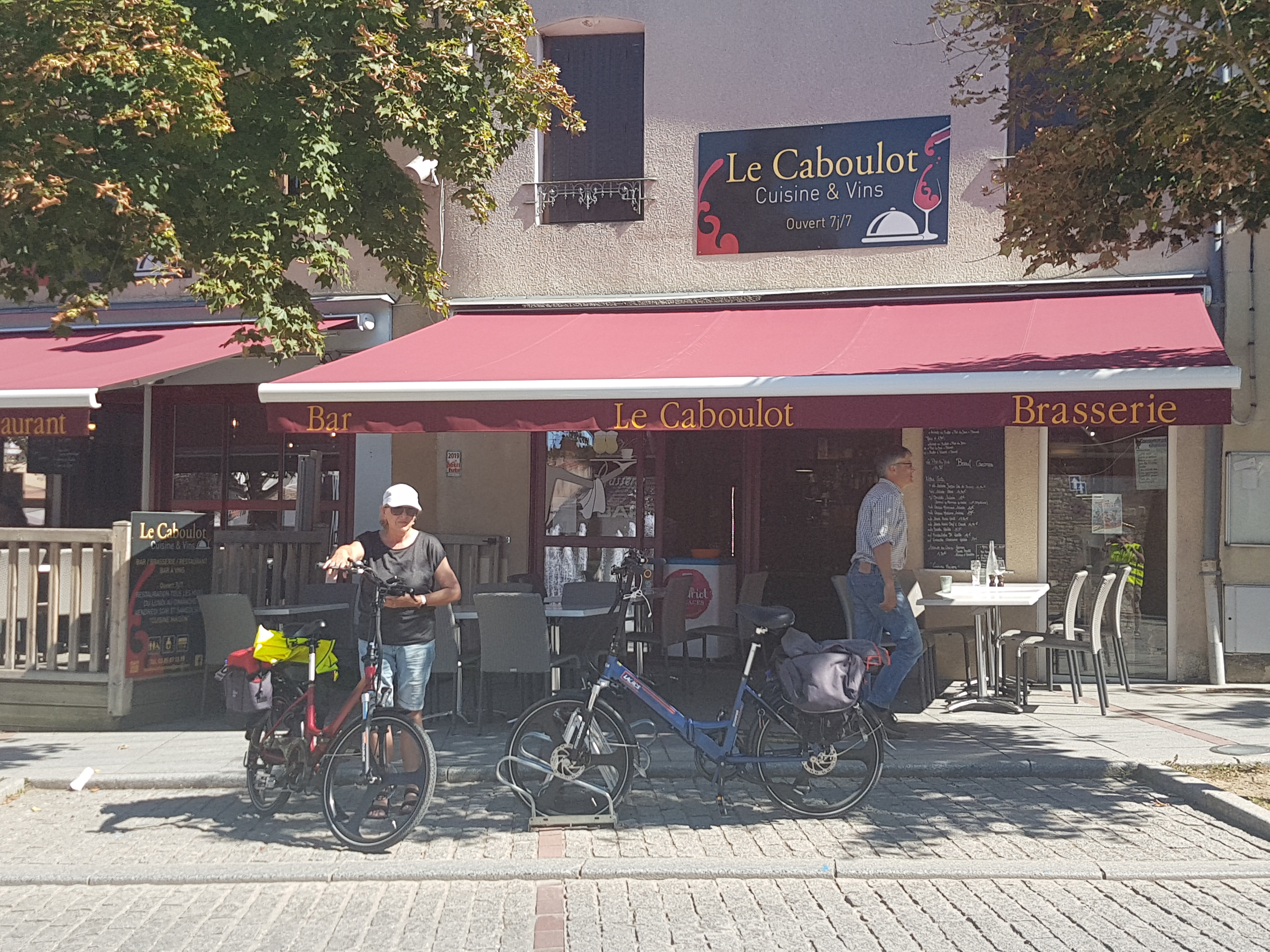 Pris un café en terrasse au soleil au cours d'une sortie vélo en groupe. Moment agréable à revivre!