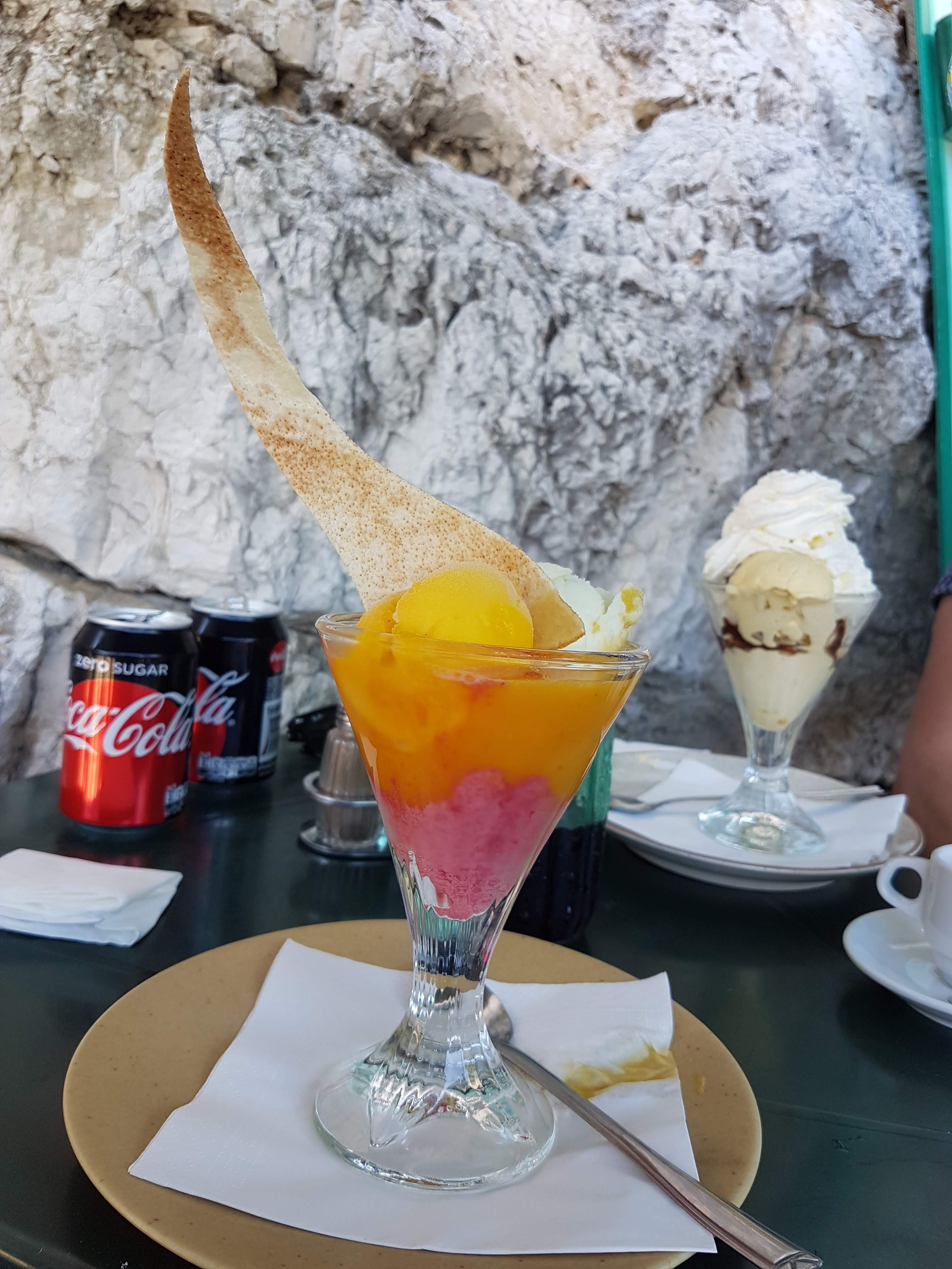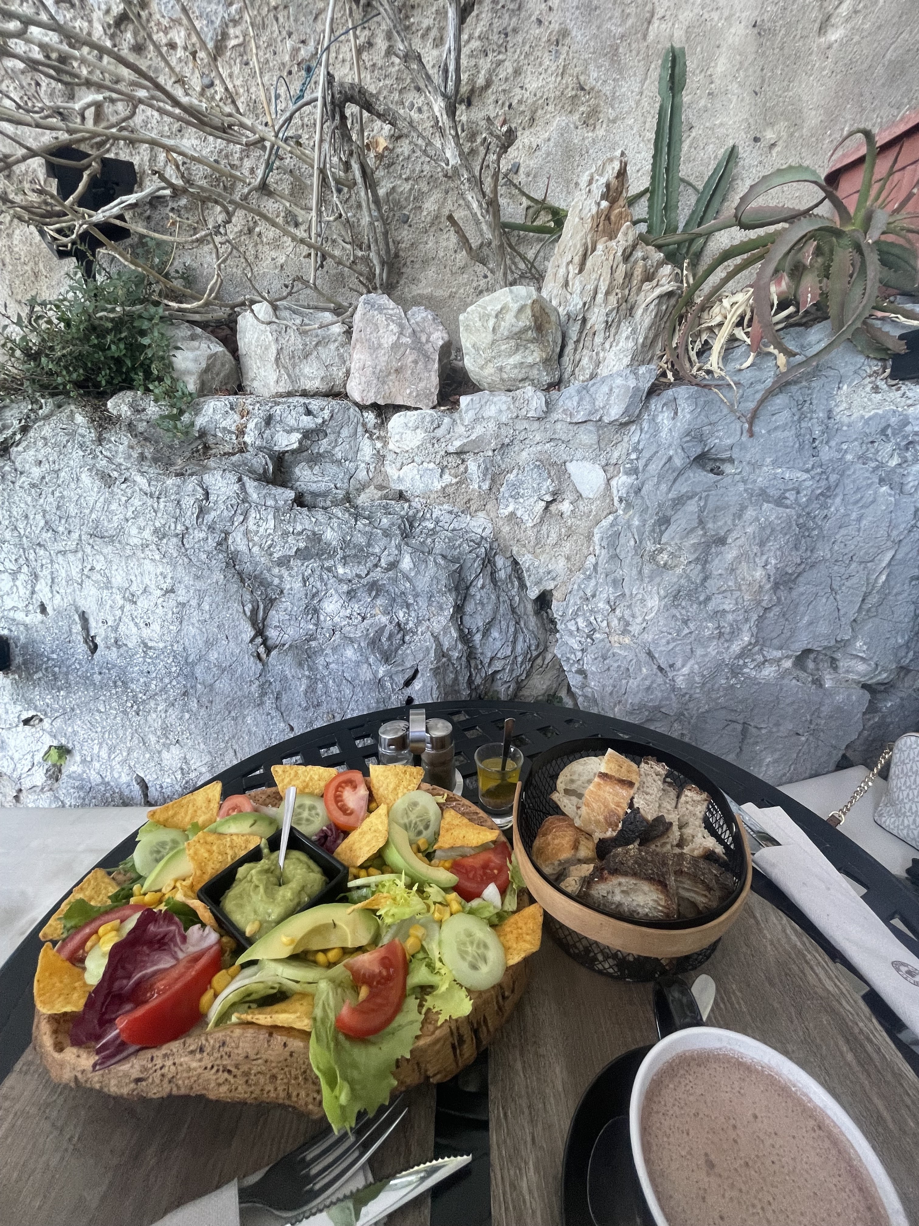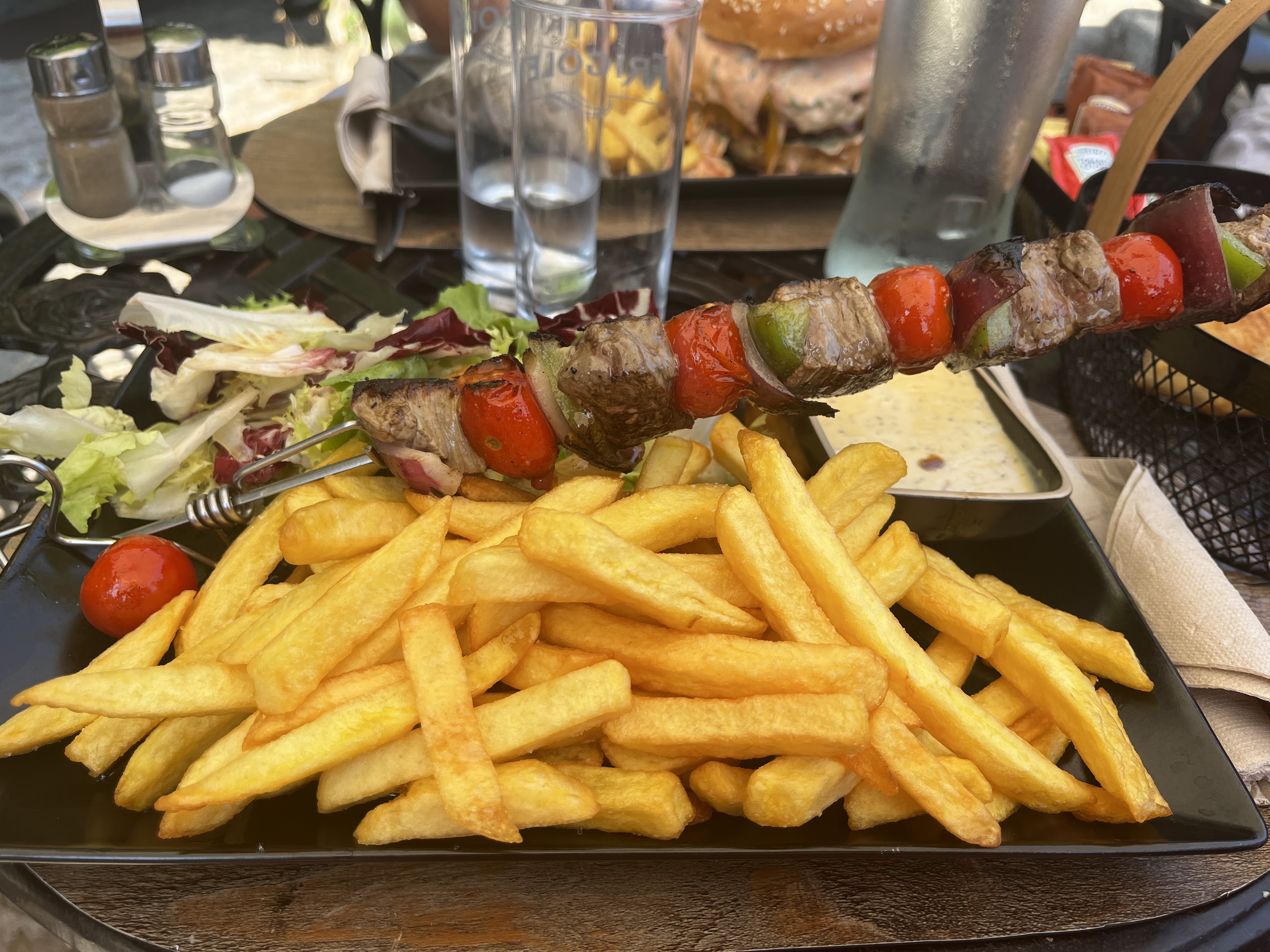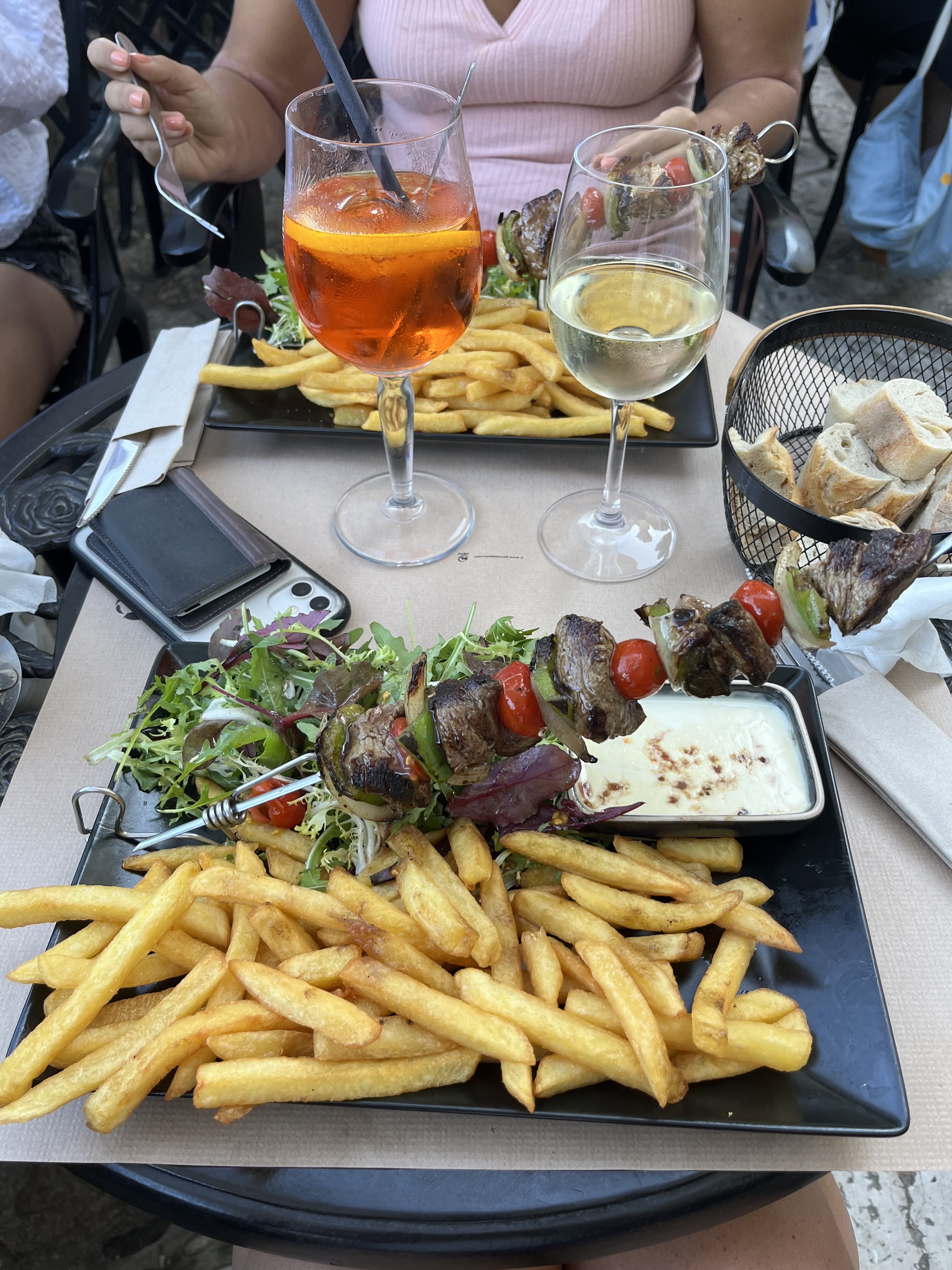 Attente interrrrrrrrrminable… on aurait le temps de refaire 4 fois le tour du village avant d’avoir une table. Une fois installé sur une table bancale (après avoir demandé plusieurs fois une cale pour la bloquer, sans succès on a abandonné l’idée). Les cocktails aux noms de princesses sont bons mais trop long venir alors qu’il fait 40 degrés dehors, et qu’on demande une bouteille d’eau pour patienter, on nous laisse dessécher comme des cactus.. les attentes trop longues et successives nous empêchent de passer un agréable repas.