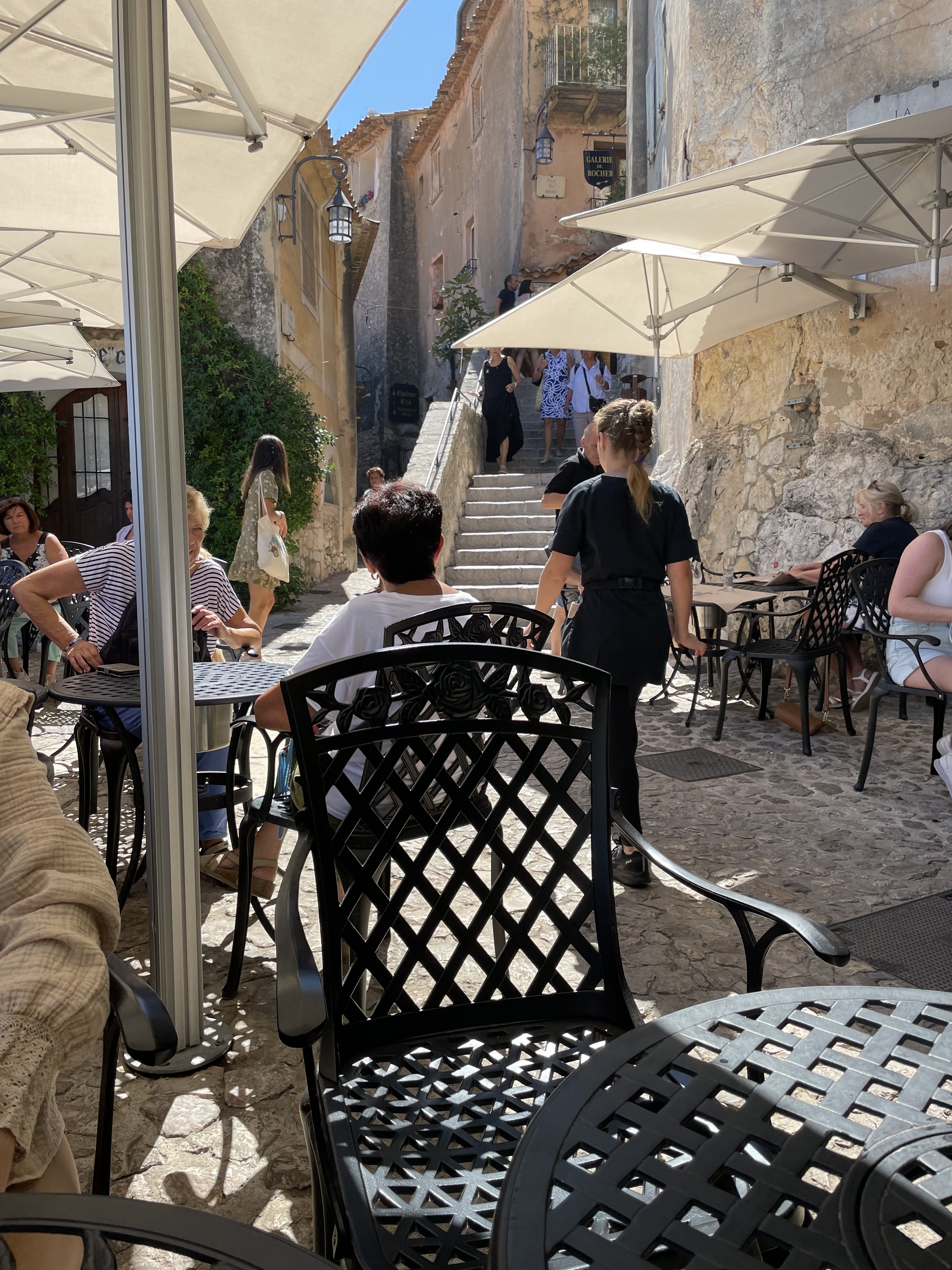 À Eze Village, cela peut être un « piège à touristes », mais ici, la qualité est élevée, le service amical et les prix très raisonnables. Une belle expérience, des vues et l'observation des gens qui passent.