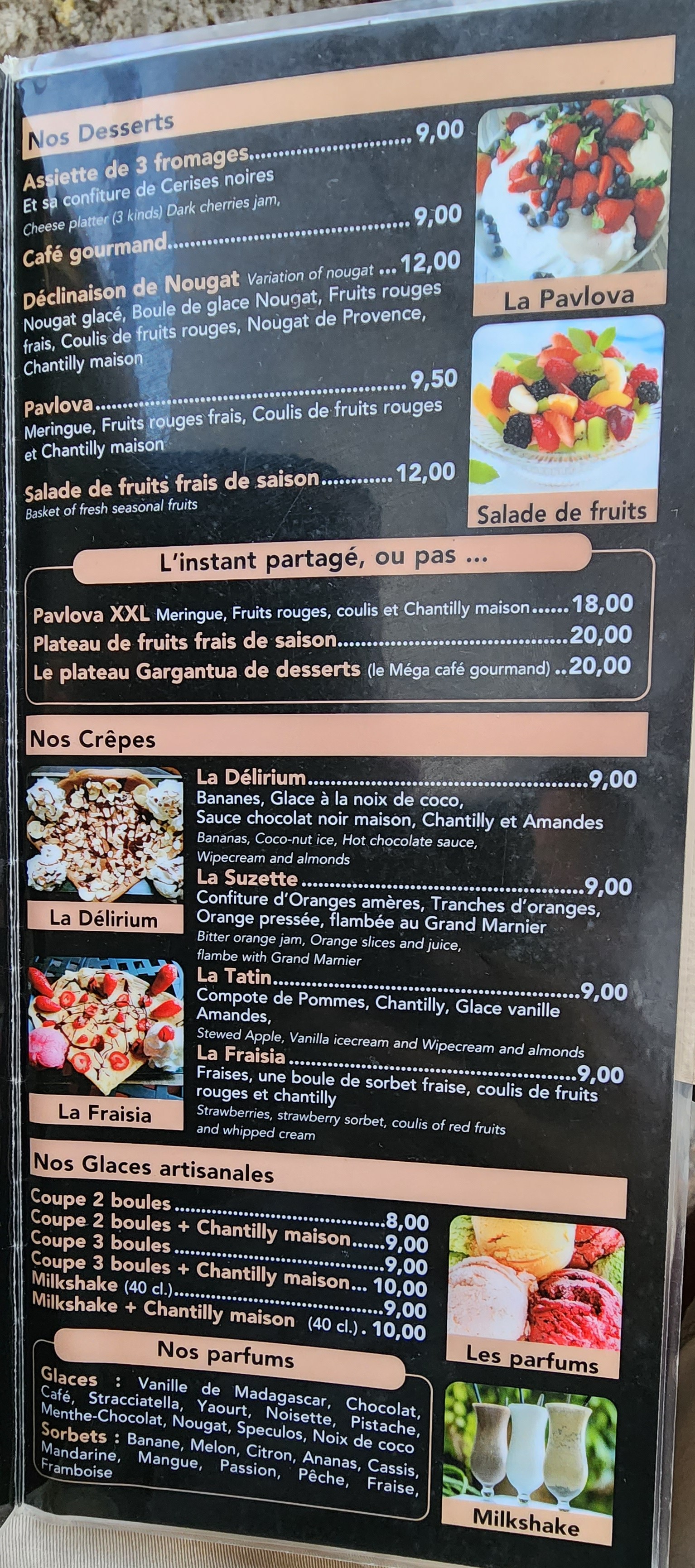 Ma famille tient trois crêperies en Lorraine depuis trois générations. En vacances une semaine dans le 06 avec ma famille, nous avons visité Eze Village, et bien sûr nous avons voulu tester cette crêperie située à l'entrée...Hmmm, nous nous sommes dits: encore une trappe à touristes...Mais, bien au contraire: Un accueil souriant et débordant de luminosité comme ce soleil azuréen, une équipe de jeunes pleins d'enthousiasme et de bonne humeur malgré la floppée d'une clientète venant de tous les continents! Une vraie tour de Babel où il faut parler le Français, l'Anglais, l'Italien, l'Espagnol, le Russe... OK pour le service, maintenant la mangeaille...Encore une très agréable surprise, les crêpes au sarrasin bien savoureuses, les salades composées bien costauds et généreuses, les glaces et les crêpes sucrées rien à redire sinon excellentes! Bref, l'addition...Un peu plus chère que chez nous en Lorraine, environ 15 %...Mais, c'est la Côte d'Azur...Et Monaco 'est à deux pas...