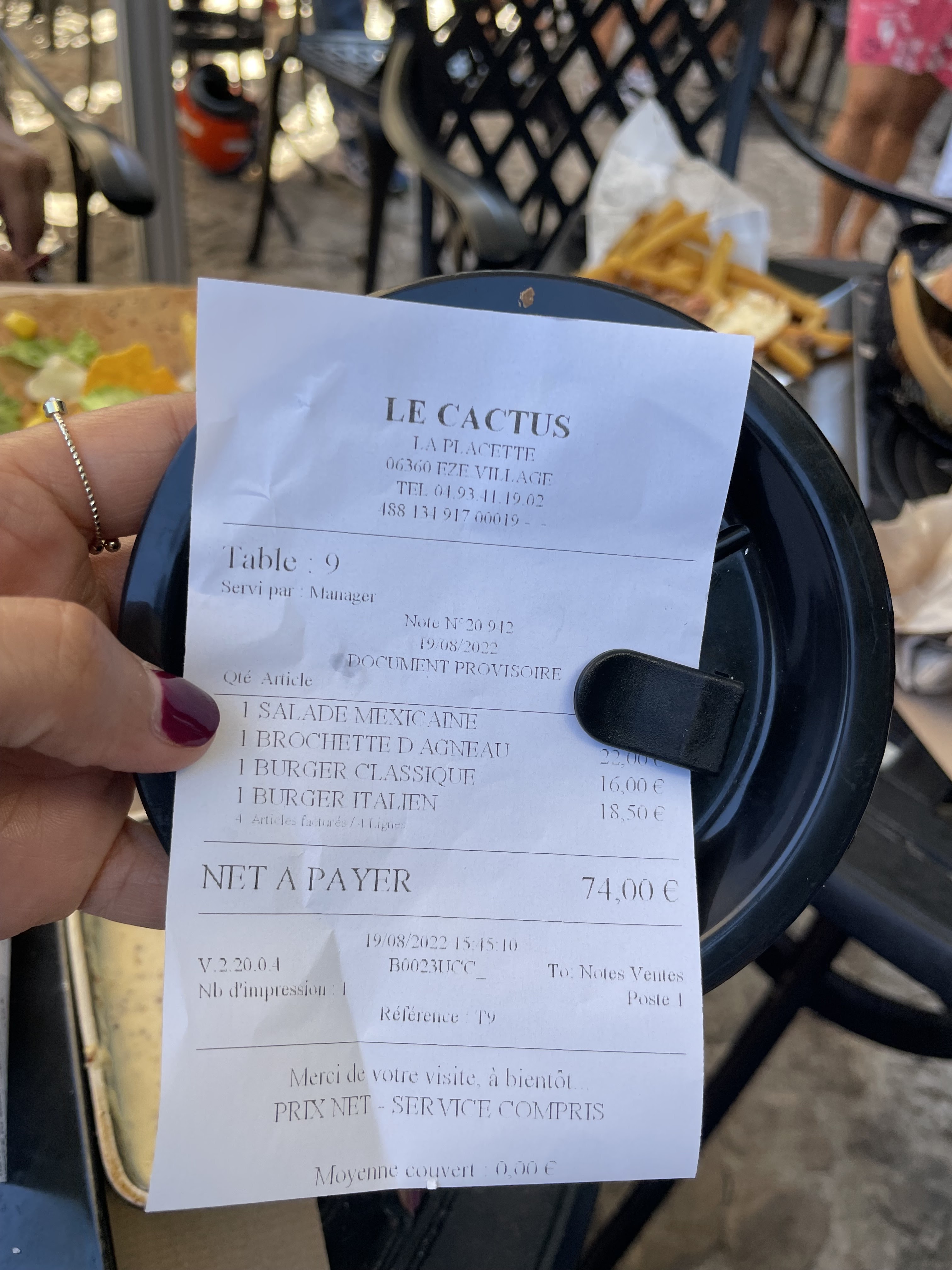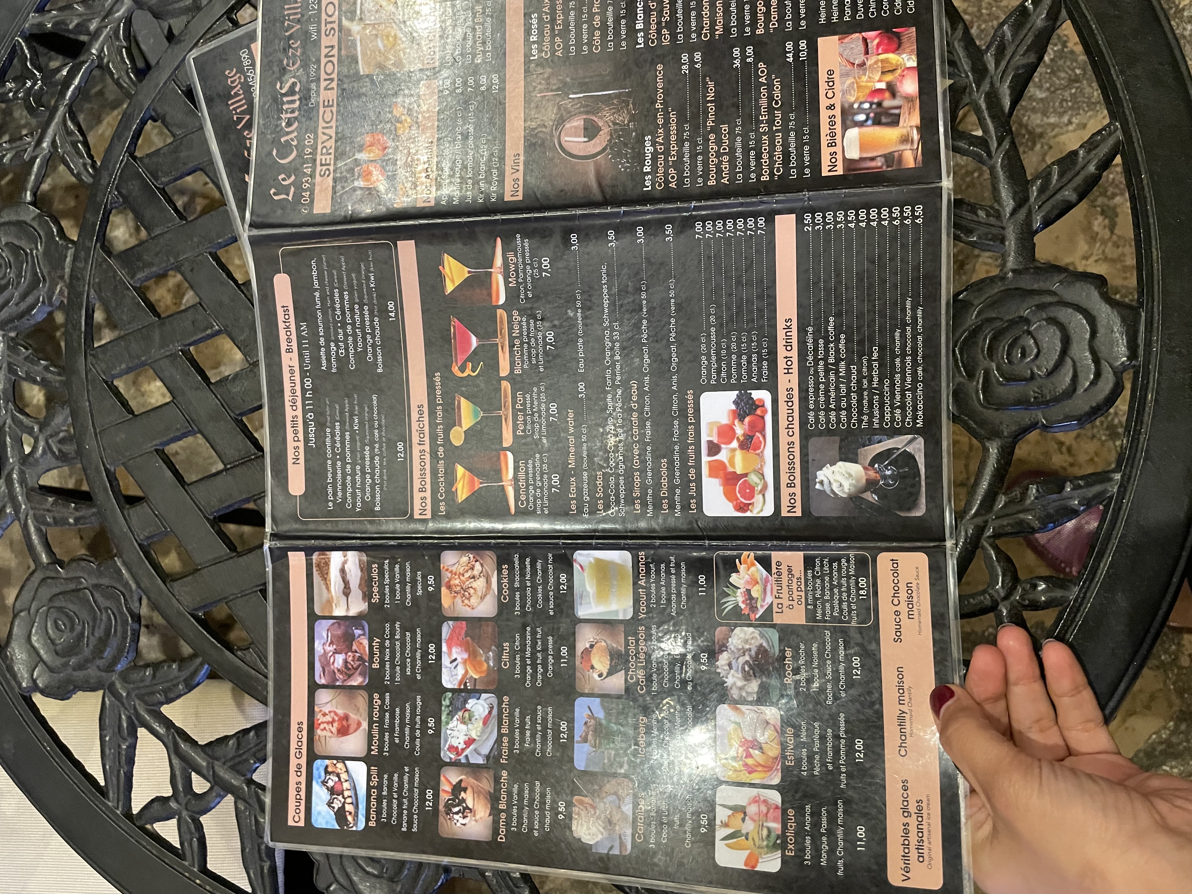 le cactus a EZE un dimanche matin en terrasse y prendre le petit dejeuner un pur bonheur excellent choix service tres sympa le tout pour neuf euros cinquante en plus avec le soleil et la vue imprenable que demander de plus a reiterer.