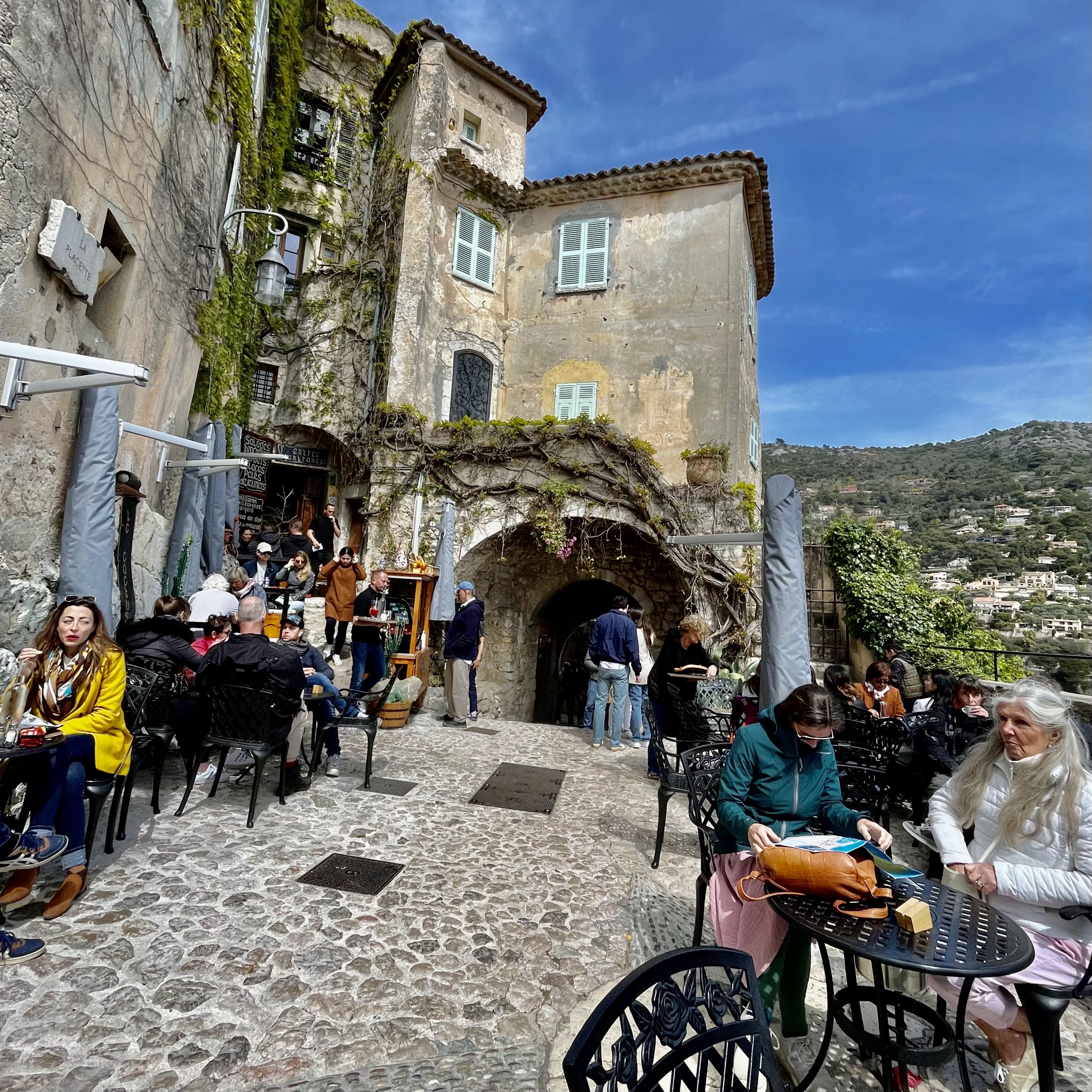 Site touristique immanquable, la vieille ville de Eze-village est pittoresque avec ses rues étroites et ses boutiques. Le restaurant est minuscule à l'intérieur et la terrasse est au bord du chemin touristique qui mène au jardin aux cactus. Cependant la vue est magnifique et les service est rapide et efficace. Chapeau pour les serveurs qui doivent slalomer entre les touristes pour effectuer leur service. Les clients doivent être patients pour avoir une place, mais ça vaut le coup ! Excellent déjeuner avec un bon rapport qualité/prix car nous nous attendions à un piège à touristes, mais nous avons très bien mangés.