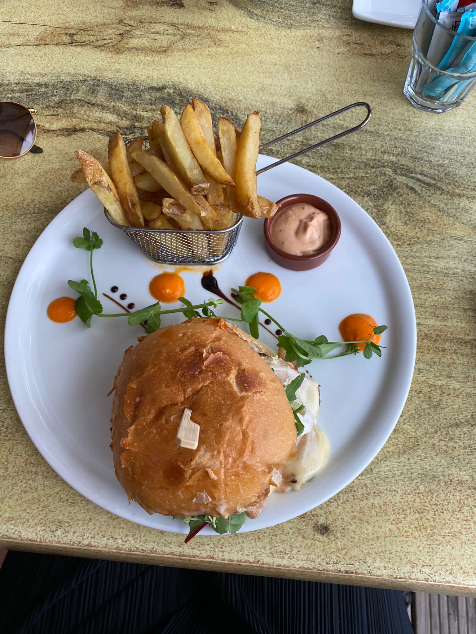 Un cadre exceptionnel, une équipe au top et des plats à couper le souffle. Nous nous sommes arrêté en rentrant de promenade. Le restaurant est vraiment très bon, nous avons pris le poisson du jour (une dorade royale) préparé devant nous par la serveuse. Madame a prit le Burger du cadet. Les plats sont extrêmement bon et les desserts aussi, nous avons pris une brioche perdu flambée et un moelleux au chocolat. Si vous passez par le port de hyere, essayé ce restaurant vous serez pas déçu en tout cas nous on reviendra.