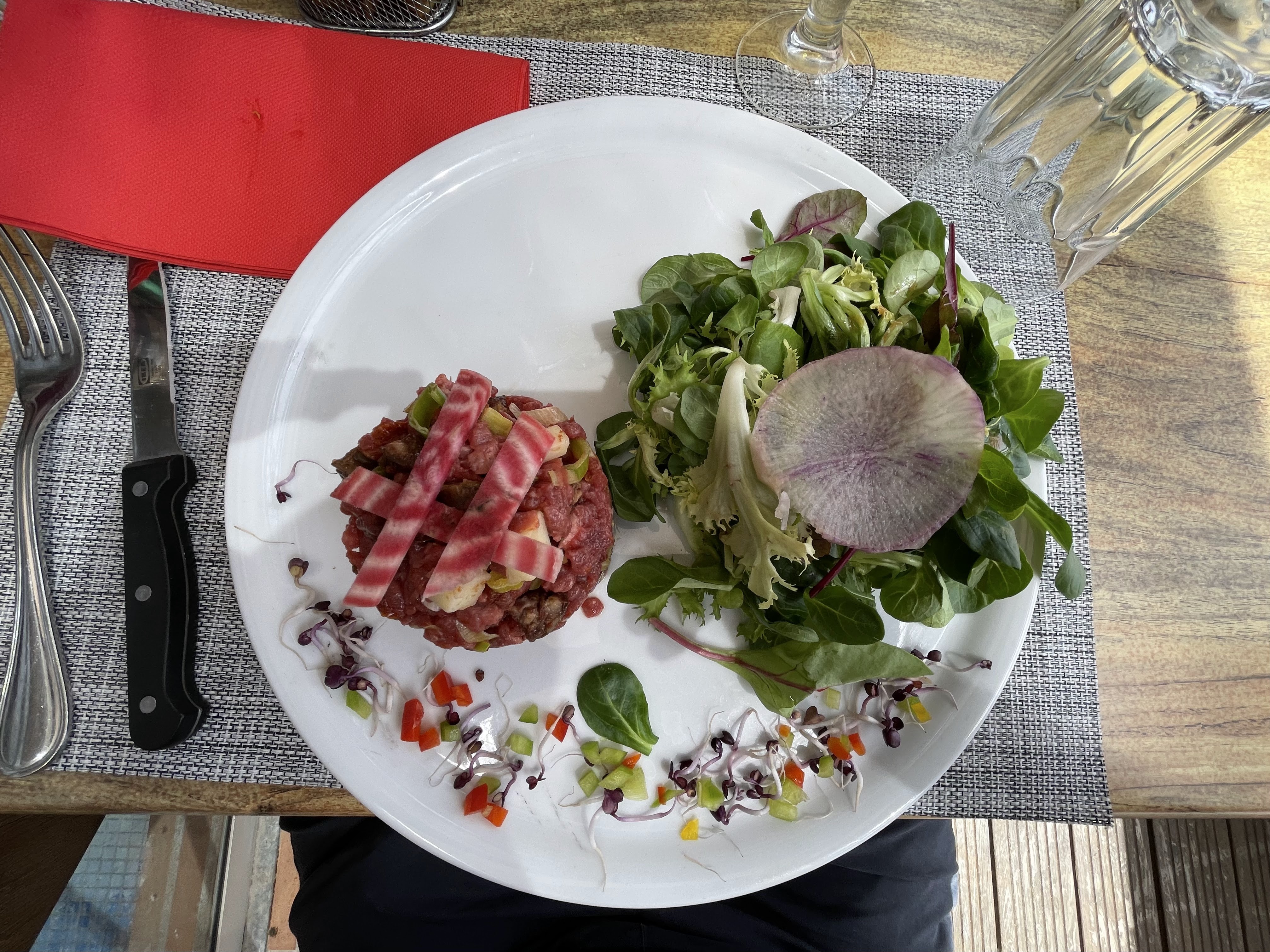 Cadre agréable, devant le port. Service impeccable, serveur aux petits soins. Le burger était bon, le tartare également mais un peu trop fort à notre goût. On a bien mangé. Cependant c’est un peu trop cher!