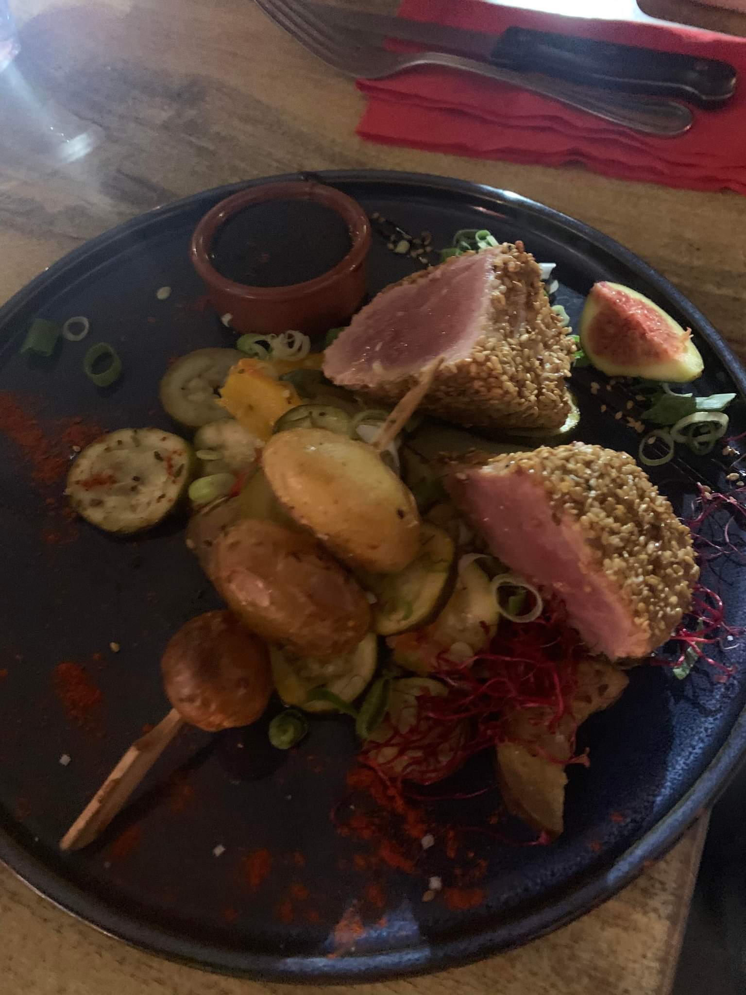 Nous sommes arrivés un peu en dernière minute mais ce n’était pas un problème pour l’équipe en place. Le sourire était présent du début à la fin du repas, et quant au repas, nous nous sommes régalés ! Malheureusement nous n’avons pas pu goûter toute la carte mais le thon mi cuit mi asiatique nous a conquis ! Un visuel travaillé, des produits frais et originaux, un goût subtil d’épices, bref une réussite ! Il nous tarde de revenir 😃