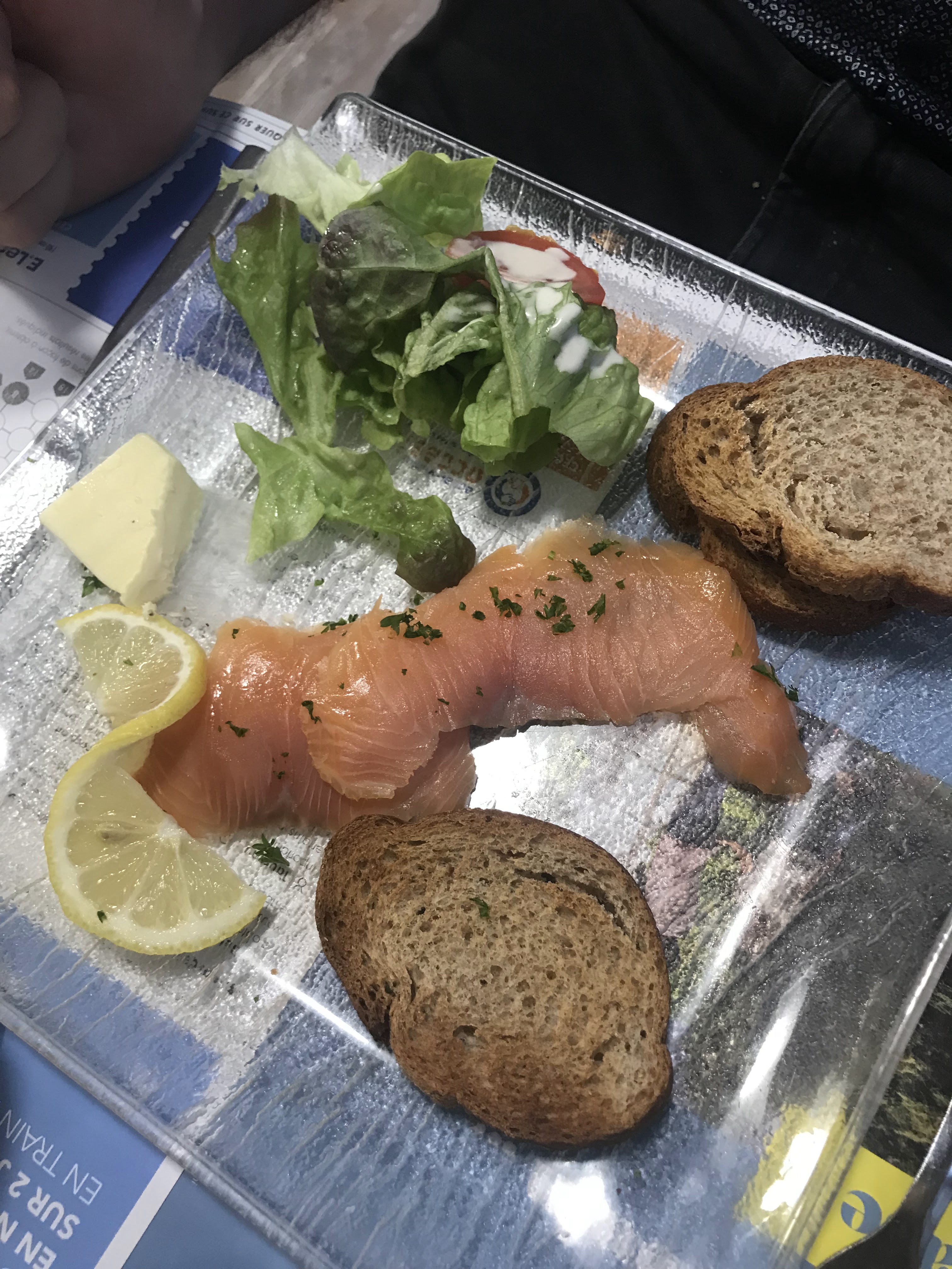 Serveurs sympathiques l’assiette de saumon fumé est un peu vide pour le prix payé cependant le plat était très bon et bien cuit la sauce au poivre et les frites étaient vraiment bonnes gros point négatif l’entrecôte a été servi à peine tiède malheureusement, dommage la cuisson et la viande était bonne