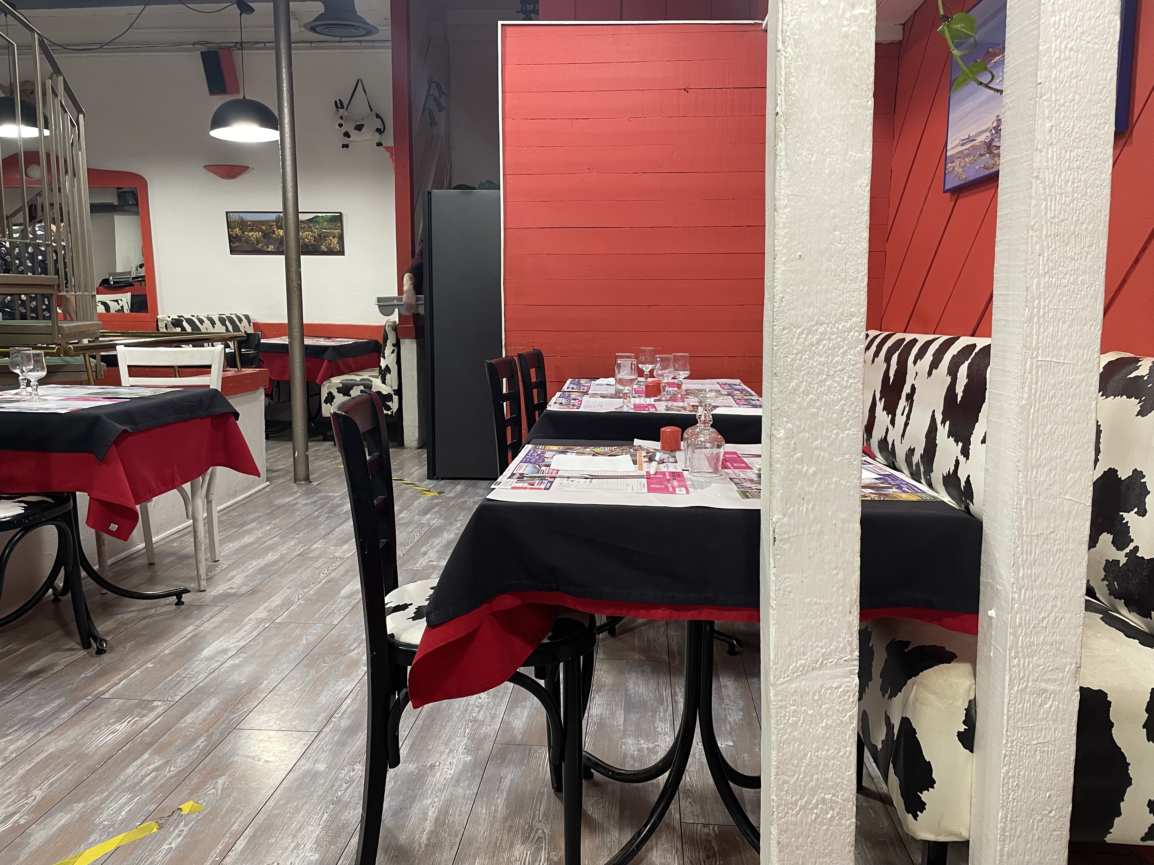 Entrée dans un décor désordonné: motifs vache sur les fauteuils, aquarium, dessous de table avec annonces publicitaires... Si si c'est possible... Nous passons commande auprès des jeunes serveurs très sympas mais qui ne connaissent pas la carte. Entrée soupe de poisson pour moi, bonne mais industrielle à coup sûr malgré le fait maison inscrit à l'entrée, pour mon compagnon tatin de camembert correct. Pour les plats l'andouillette pour moi: infâme, petite portion d'un aggloméré de viande probablement avariée vu l'odeur avec d'énormes bouts de gras, accompagnée de légumes immangeables car très acides(là je n'ai pas d'explication même des petits pois en boites sont meilleurs... A moins qu'ils aient laissé le liquide de la boite de conserve avec et encore...). Pour mon ami une escalope de veau avariée également (viande grise et nauséabonde) noyée sous un quart de litre de sauce aux champignons (pour masquer le goût ?) avec frites surgelées apparence fait maison. En dessert une crème brûlée insipide et sans croquant, et de la glace industielle avec le coulis de fruit rouge qu'on a dû leur offrir en cadeau de fidélité chez métro. Nous n'avons pas mangé nos assiettes, lorsque que j'ai dit à la serveuse que ce n'était pas bon après qu'elle nous ai demandé si ça avait été (quand les assiettes repartent pleines c'est rare...), elle s'est contentée d'un sourire géné et est partie. Le patron, lui, trop content de nous encaisser ne nous a même pas demandé comment c'était passé le repas... Je ne parlerai pas de l'escalier menant aux toilettes qui n'a pas du être aspiré depuis un bon bout de temps! Bref à fuir tant que les services d'hygiène ou Philippe Etchebest ne seront pas passés !